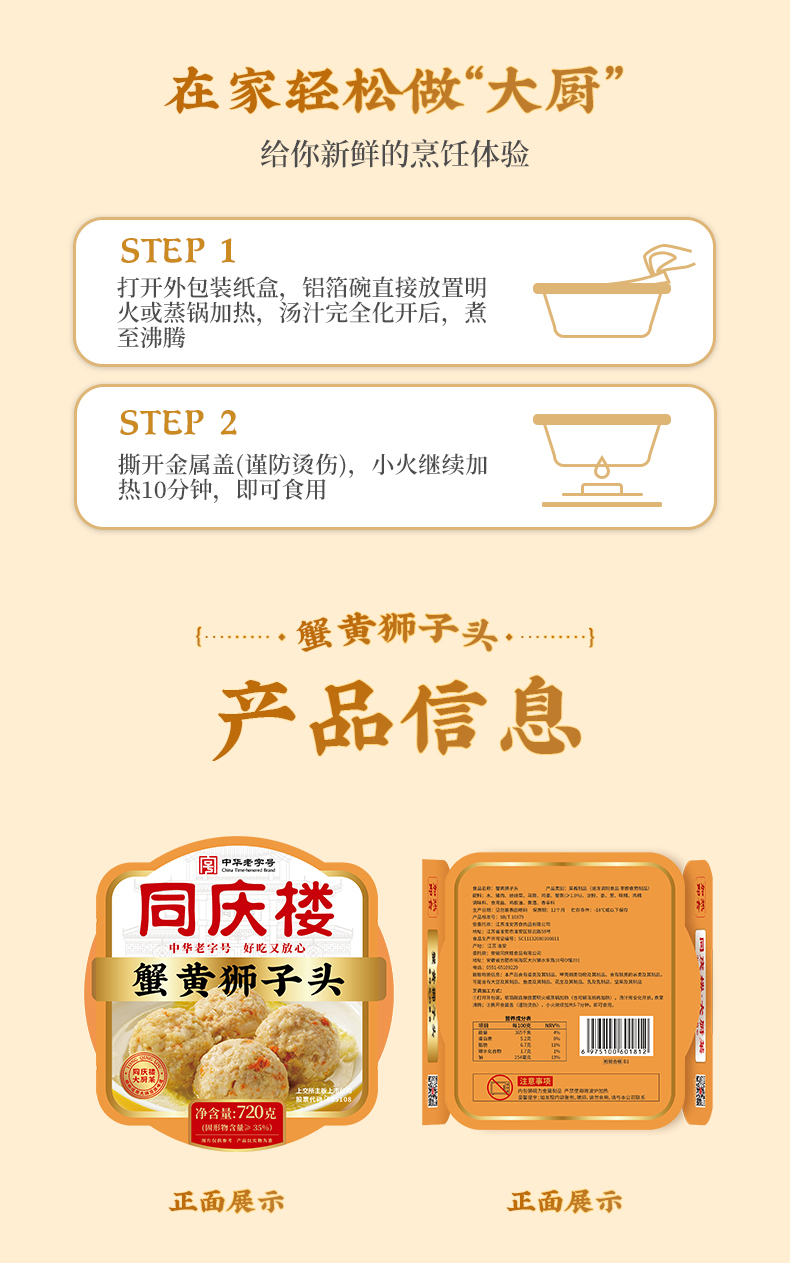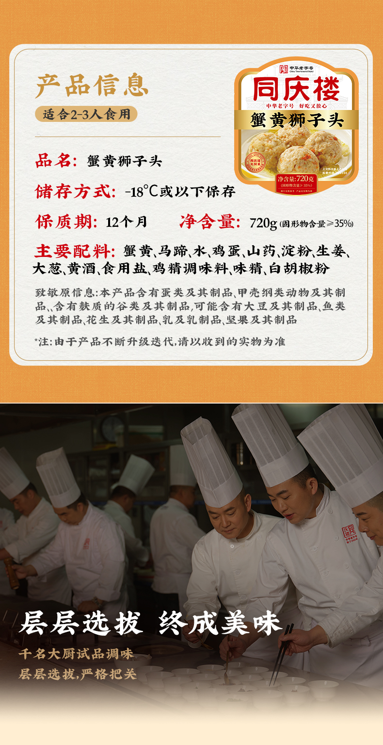 同庆楼 蟹黄狮子头720g 新鲜马蹄清爽不腻 48小时发货