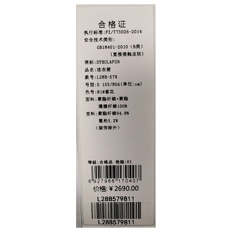 戴布拉芬连衣裙L28B579