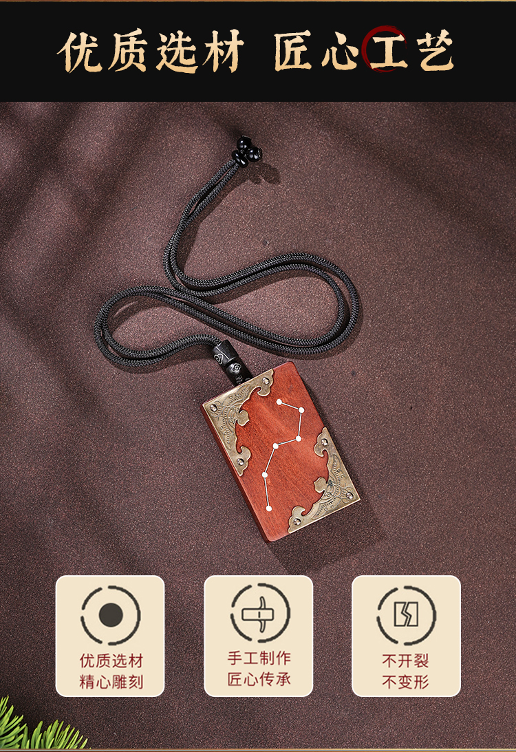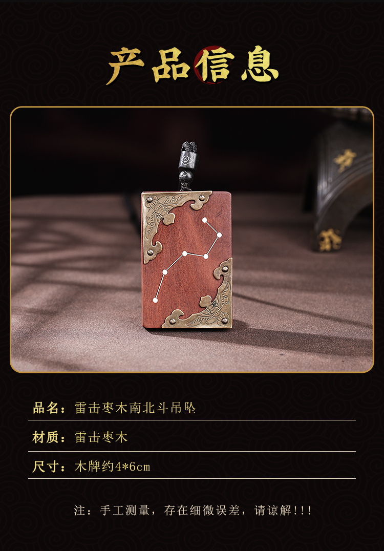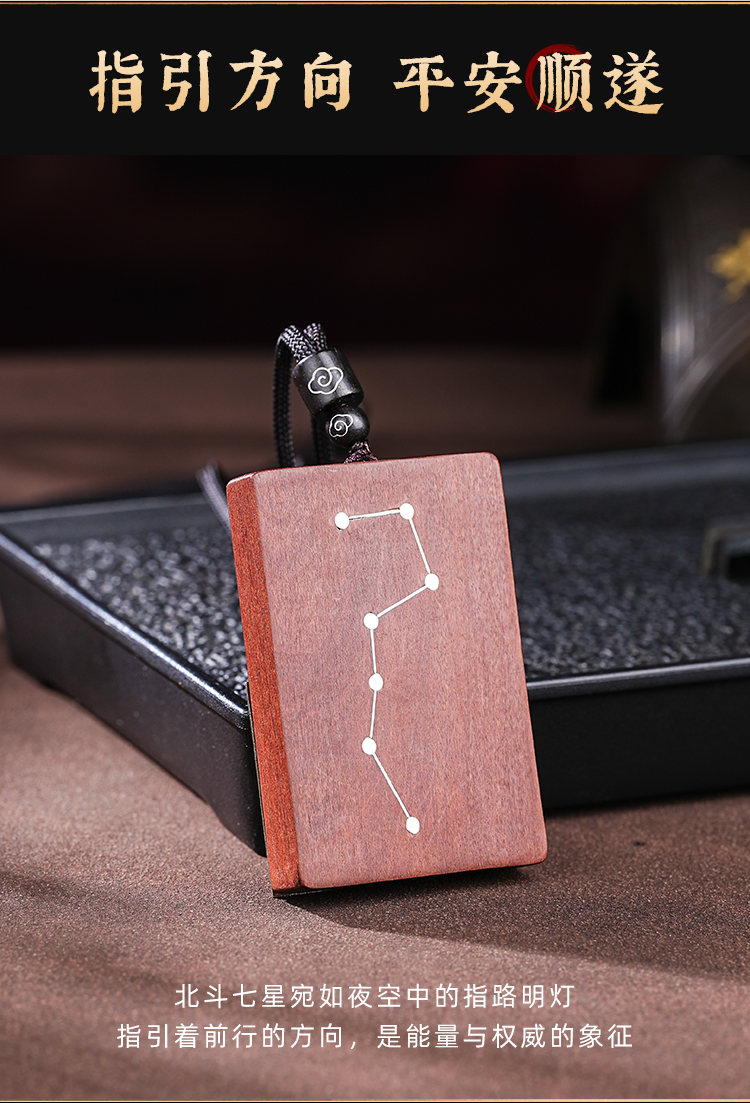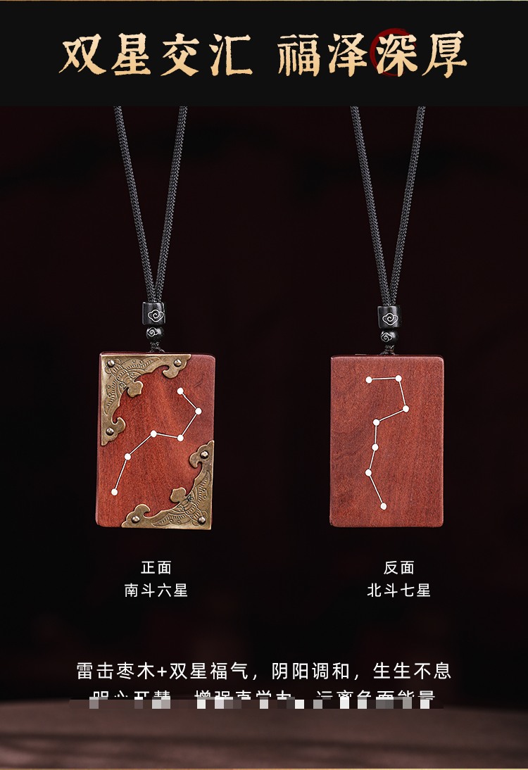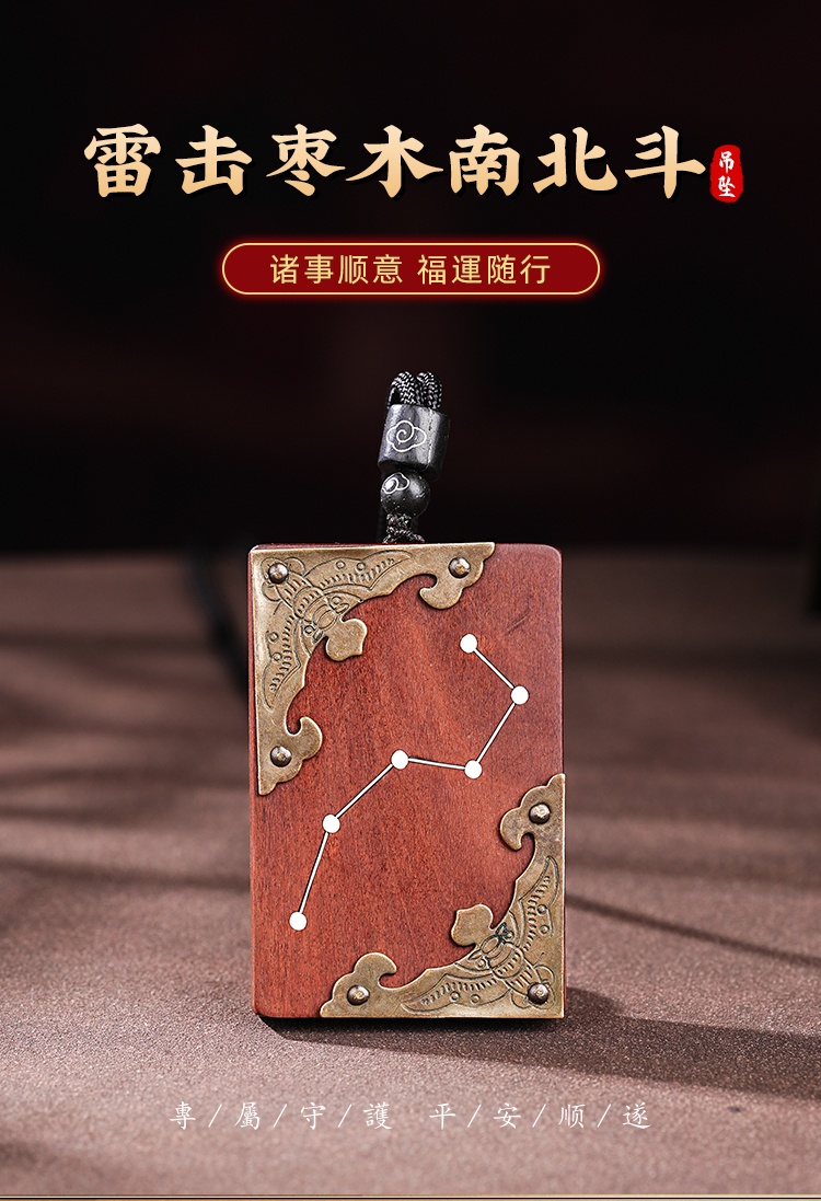 雷击木吊坠北斗七星天然枣木真品木雕南斗六星护身牌挂件复古男女