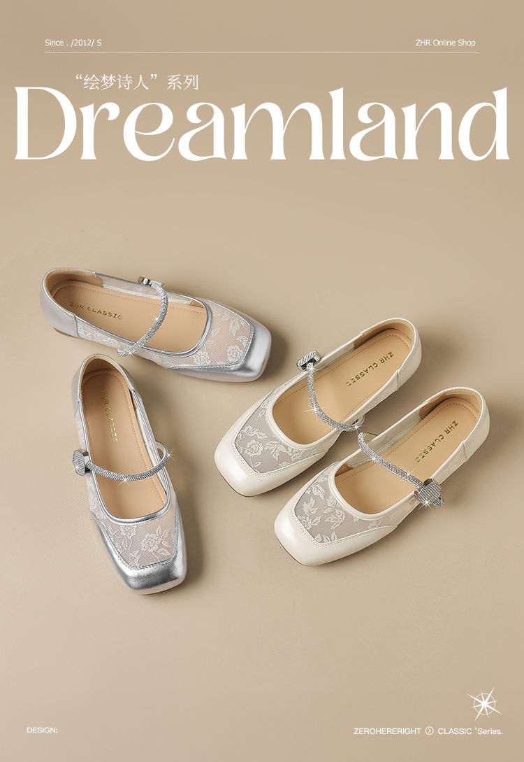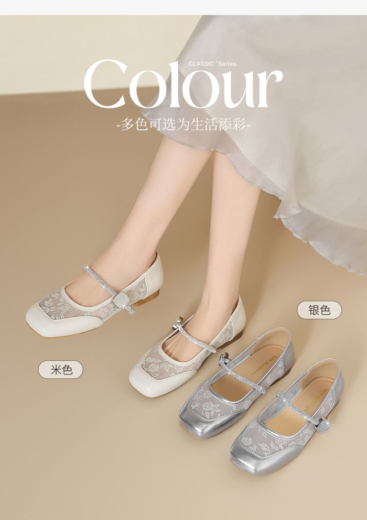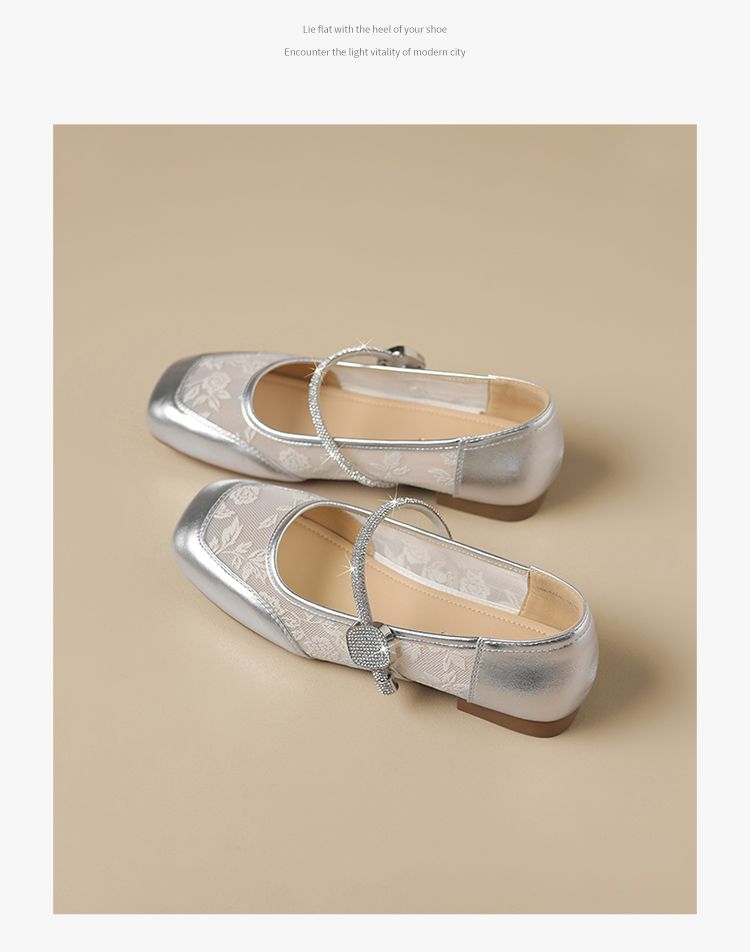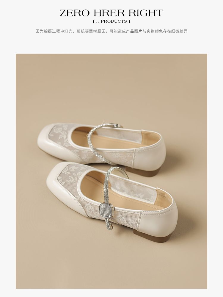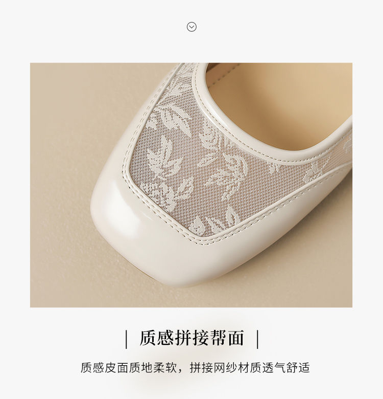 ZHR则则法式方头透气印花平底玛丽珍单鞋女2025新款百搭气质女鞋