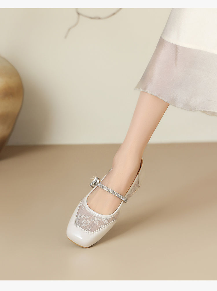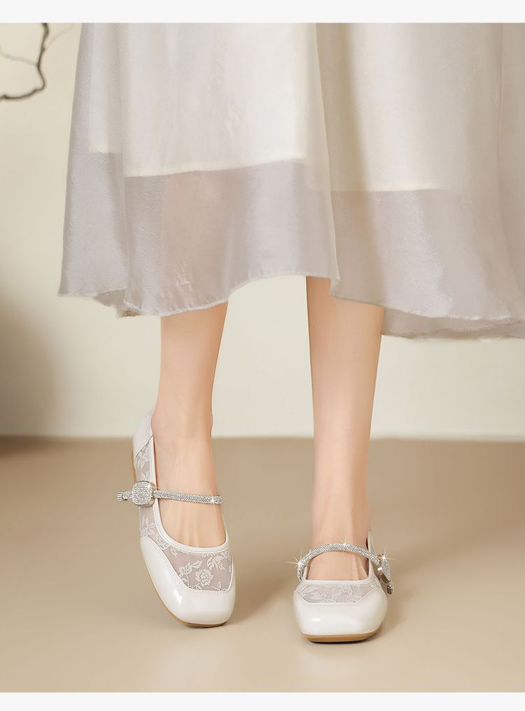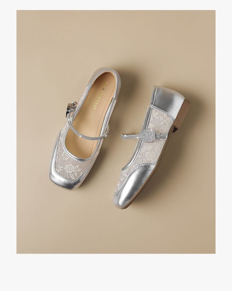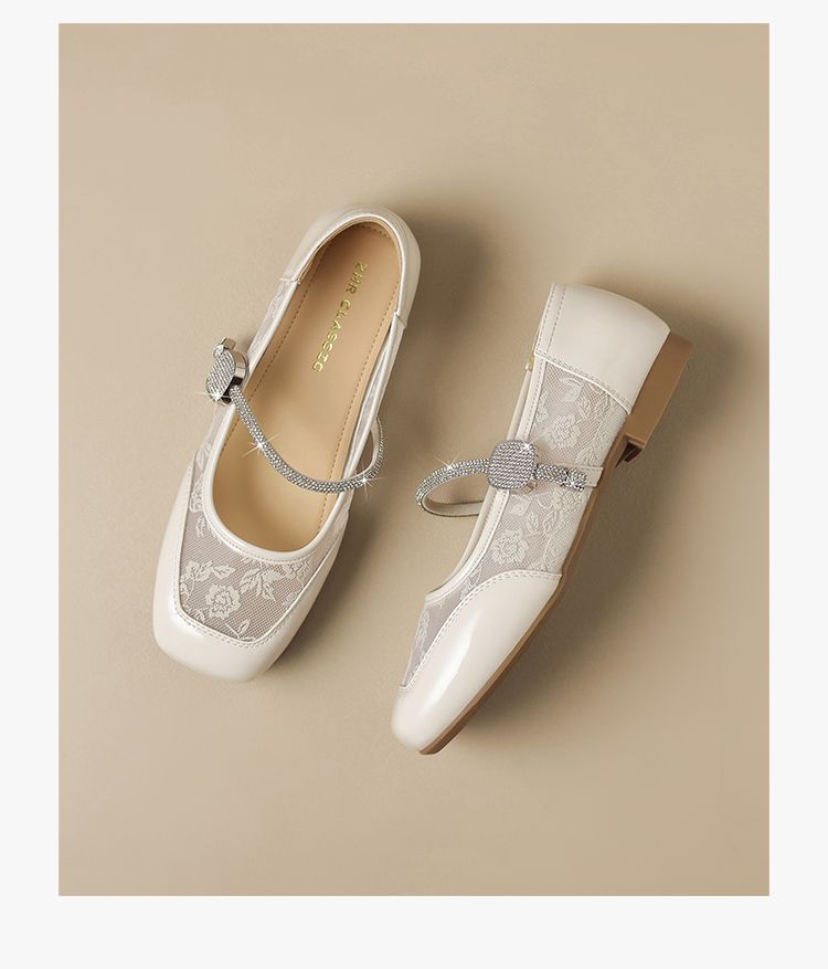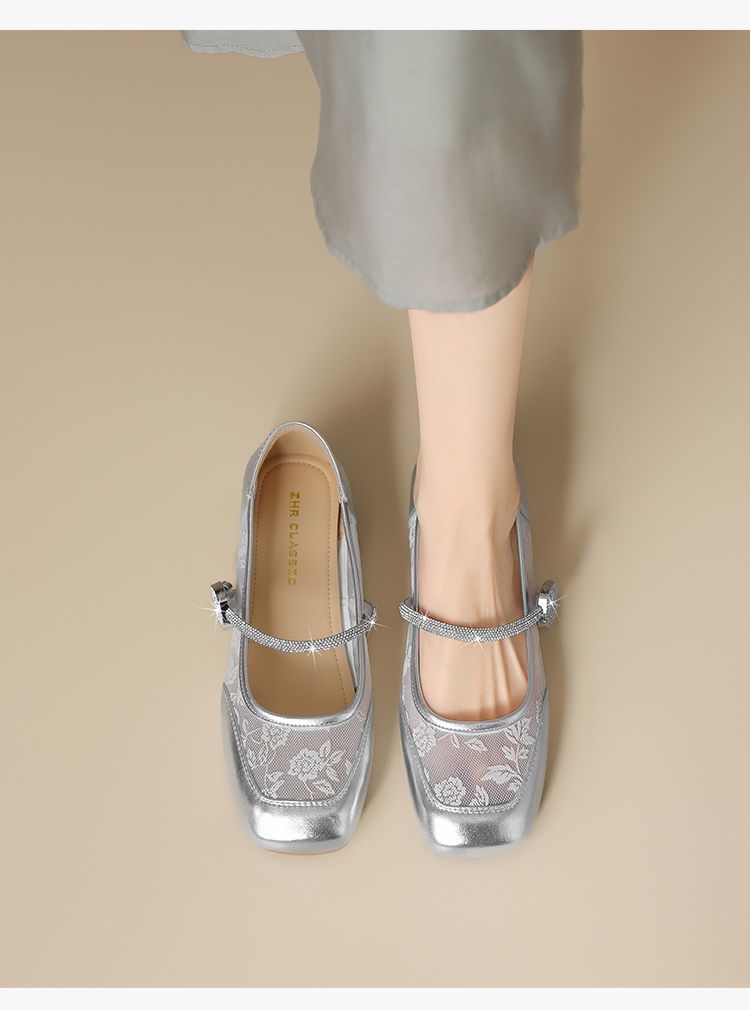 ZHR则则法式方头透气印花平底玛丽珍单鞋女2025新款百搭气质女鞋