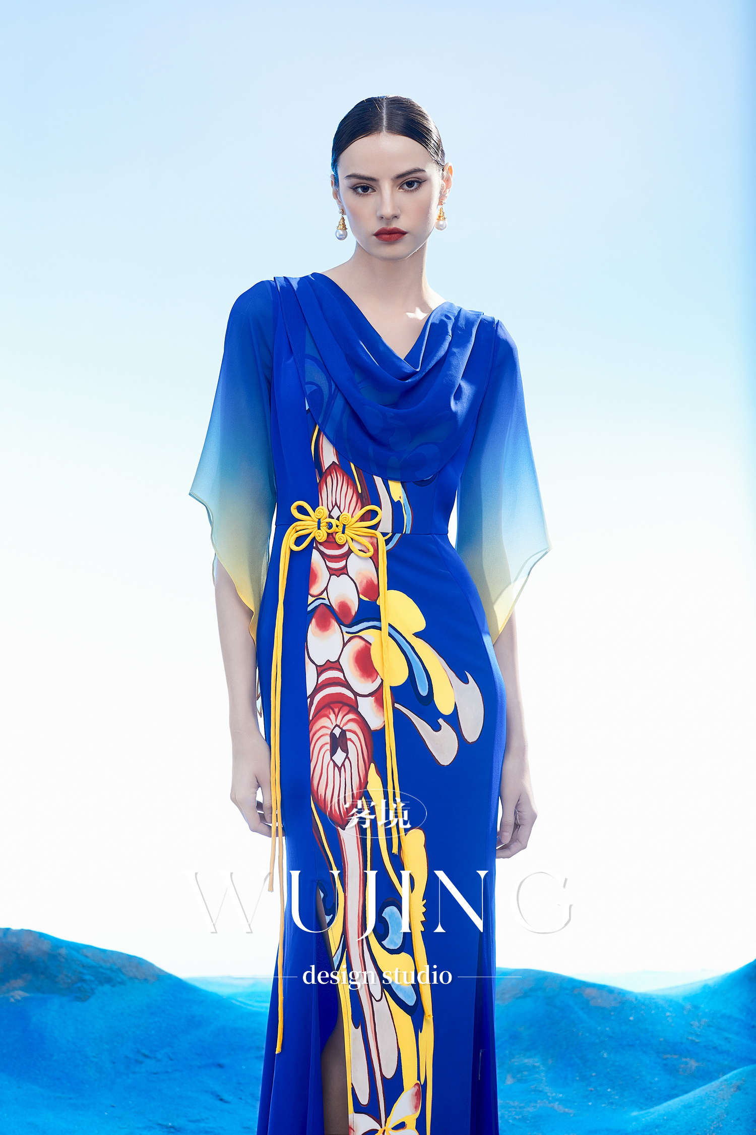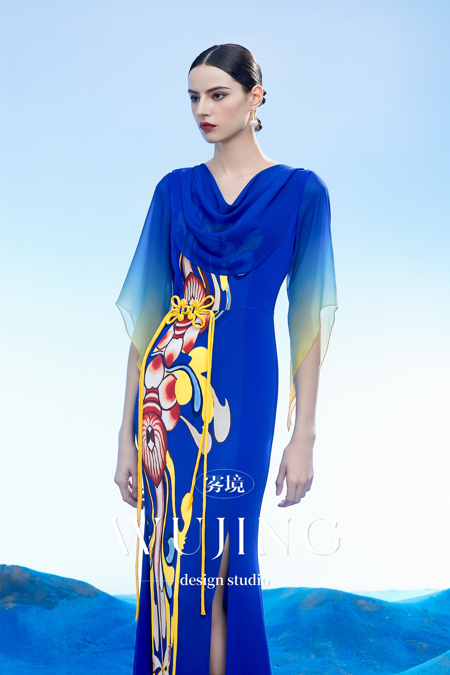 3204017 扶光莲雾 韩国进口水晶乔其纱进口纹理蜂窝缎连衣裙 雾境