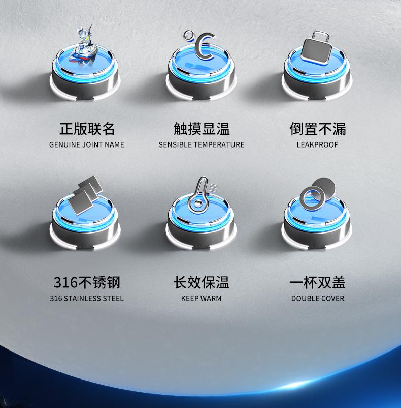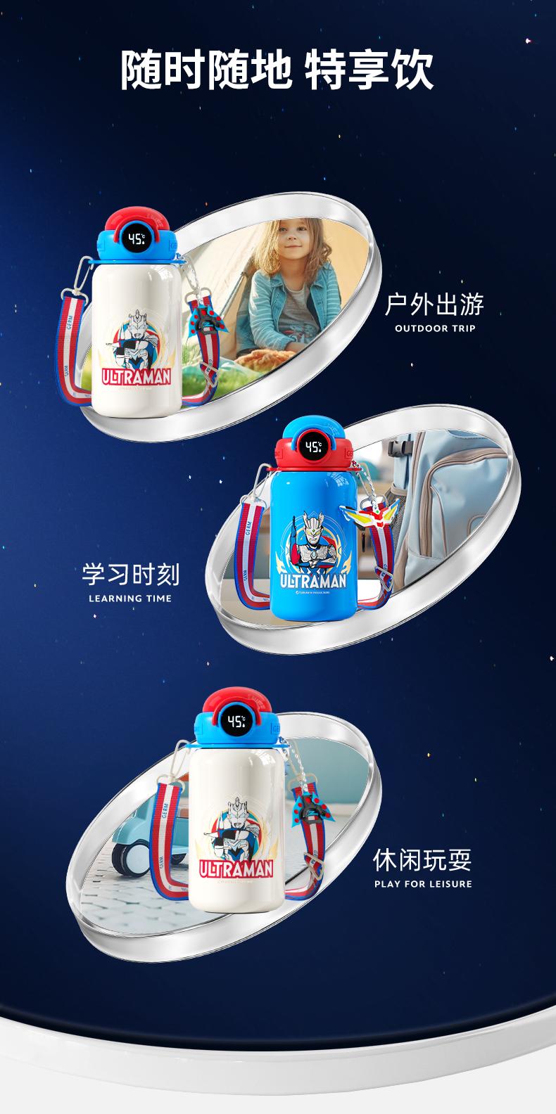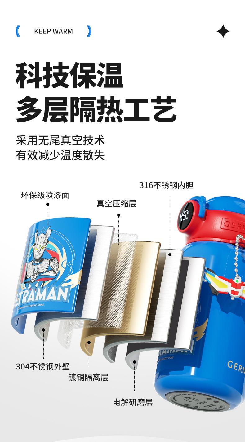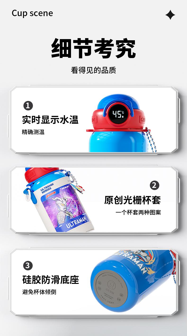 【潘展乐代言】GERM奥特曼儿童能量光球温度显示保温杯