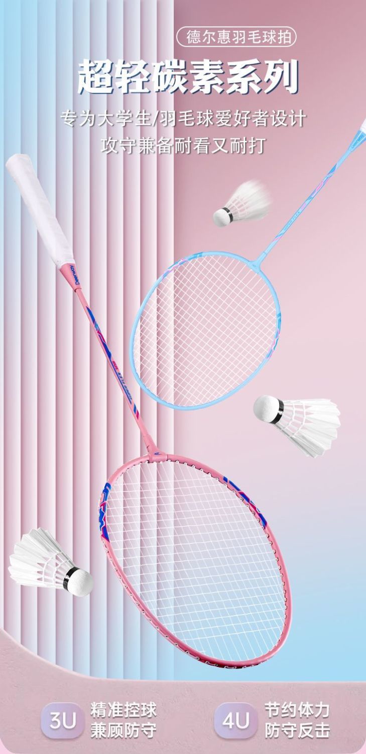 【超轻碳素系列,攻守兼备耐看又耐打】羽毛球拍超轻耐打套装 比赛训练带球双拍 专为大学生 羽毛球爱好者设计-QQ