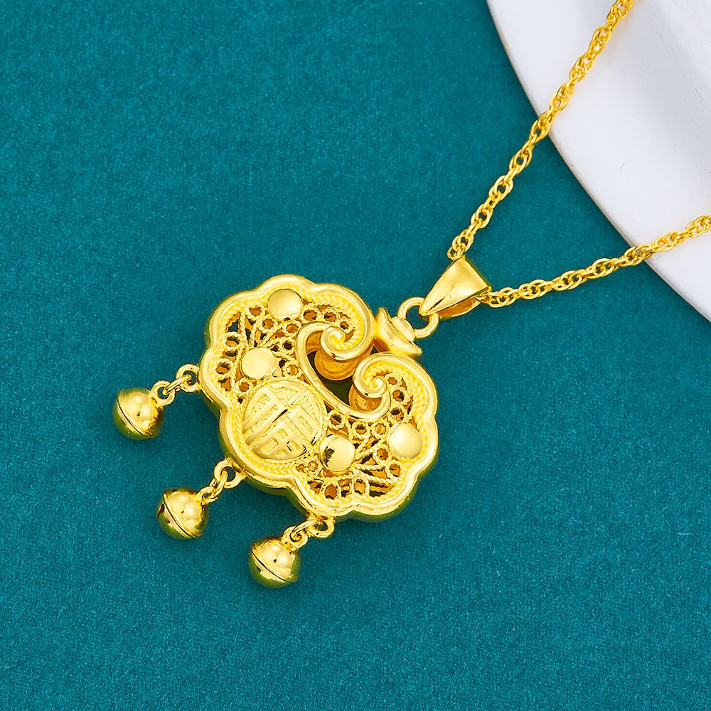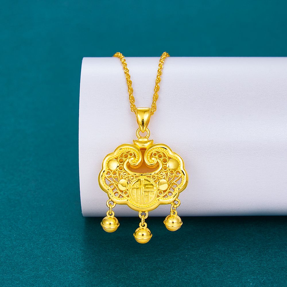 【限时克减150元】足金999.9 #儿童/宝宝 镂空双面福字锁包铃铛如意福字锁包吊坠网红锁包(不含链)(DZ00590)(预售产品下单后不退款不退货不换货不补差价)