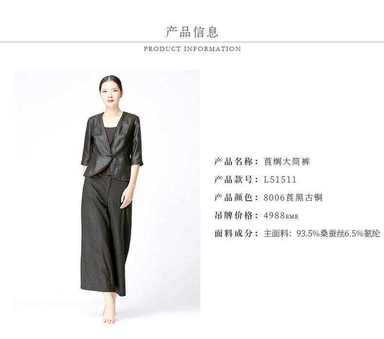 TANGY Collection/天意精品寻山系列春秋新品简约型真丝莨绸大筒裤