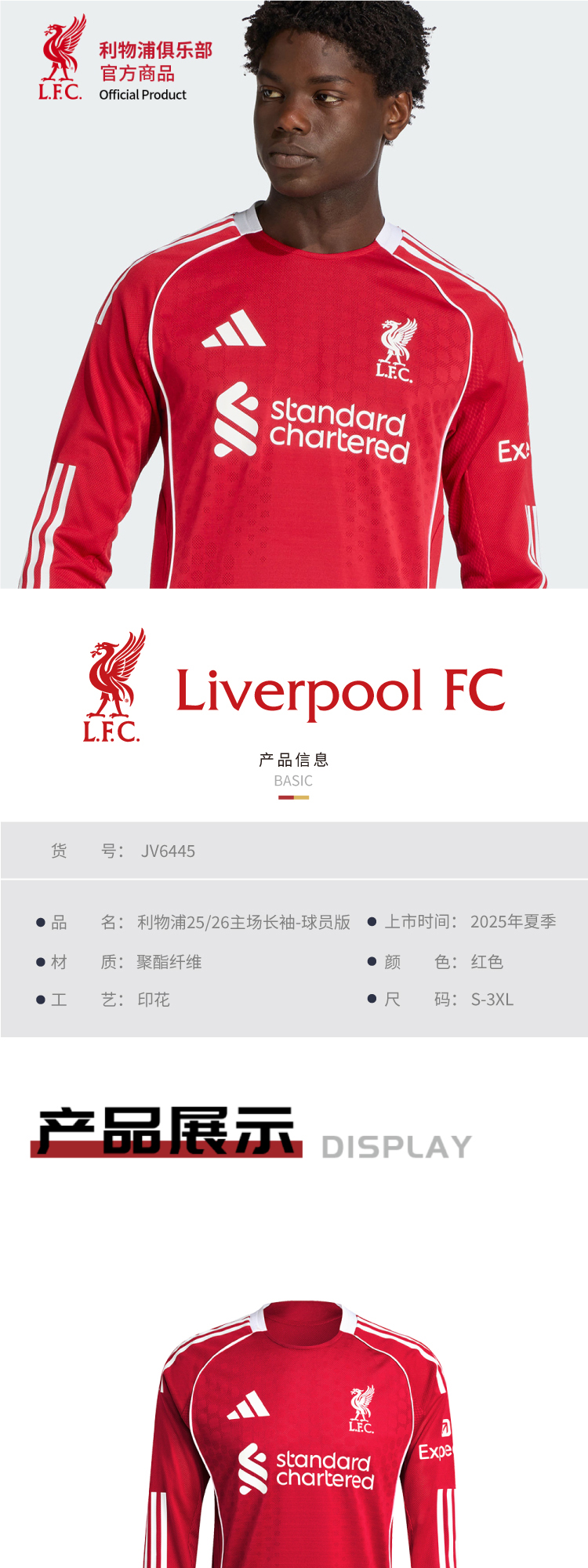 【官网同款】利物浦俱乐部 | 25-26赛季主场长袖球衣-球员版