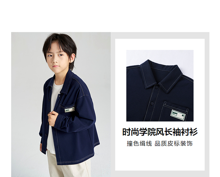 笛莎千与2025春季新款男童时尚学院风长袖衬衫