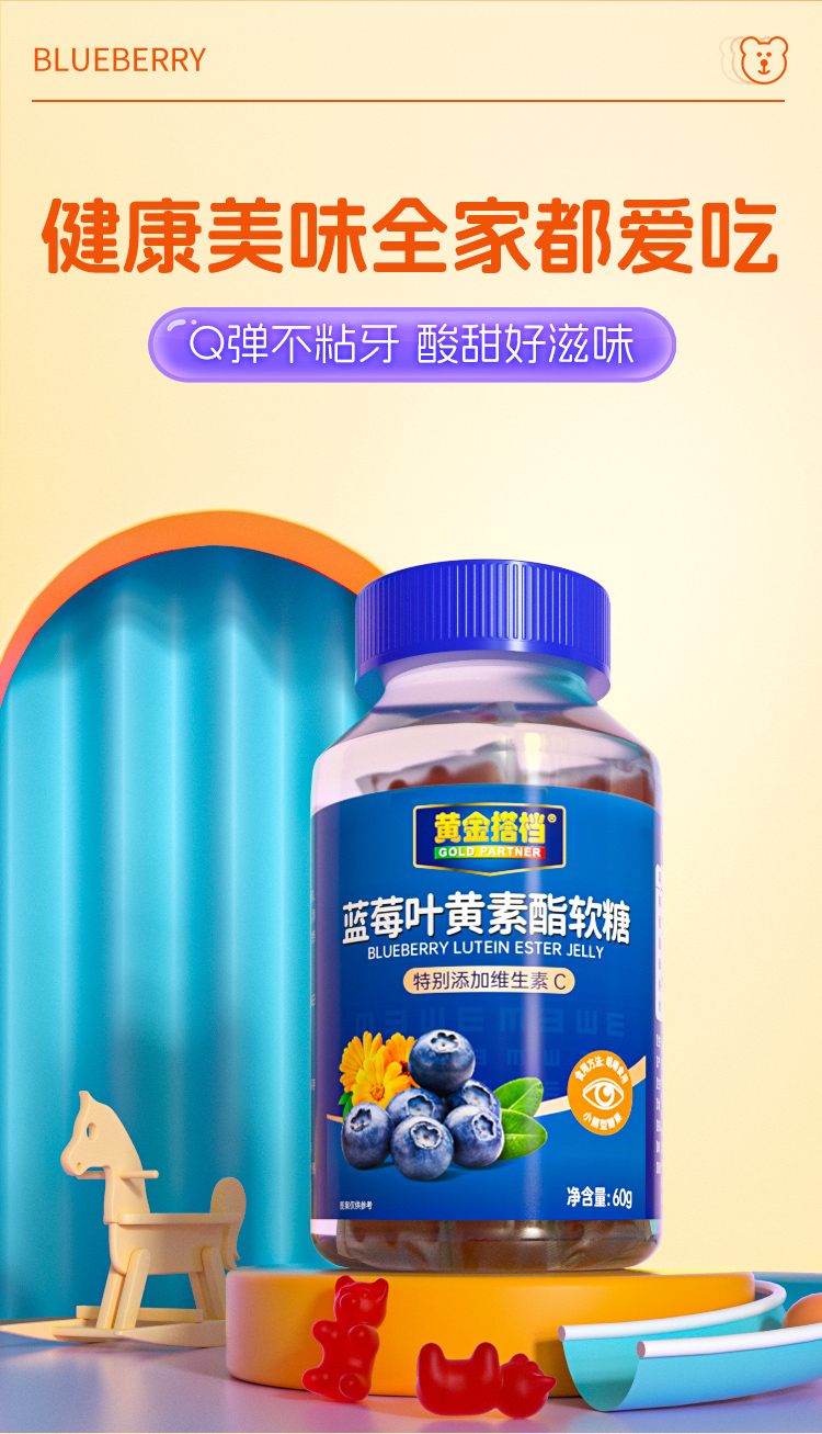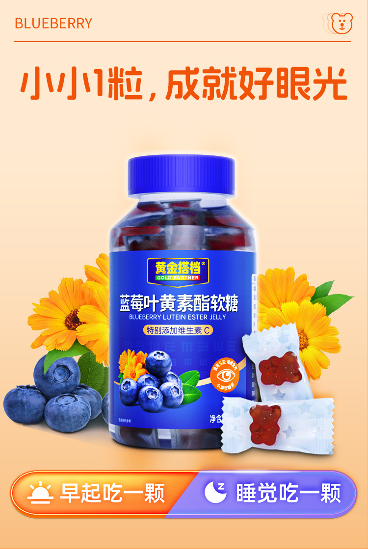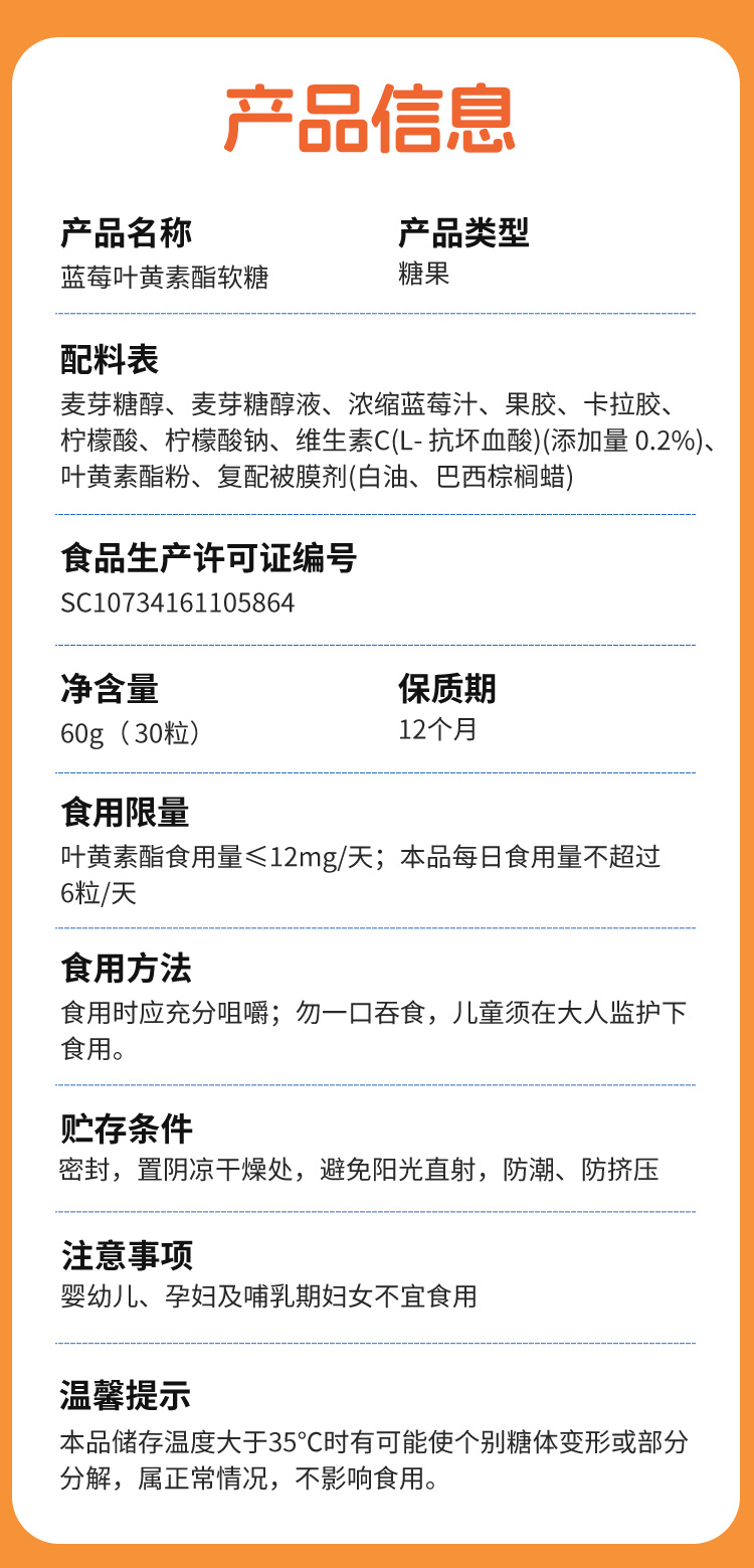 【护眼补铁】黄金搭档蓝莓叶黄素酯软糖/血红素铁红枣软糖 桂圆富铁 成人儿童糖片 安心入口温和吸收 60g(30分享粒)/瓶