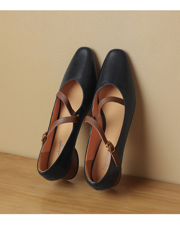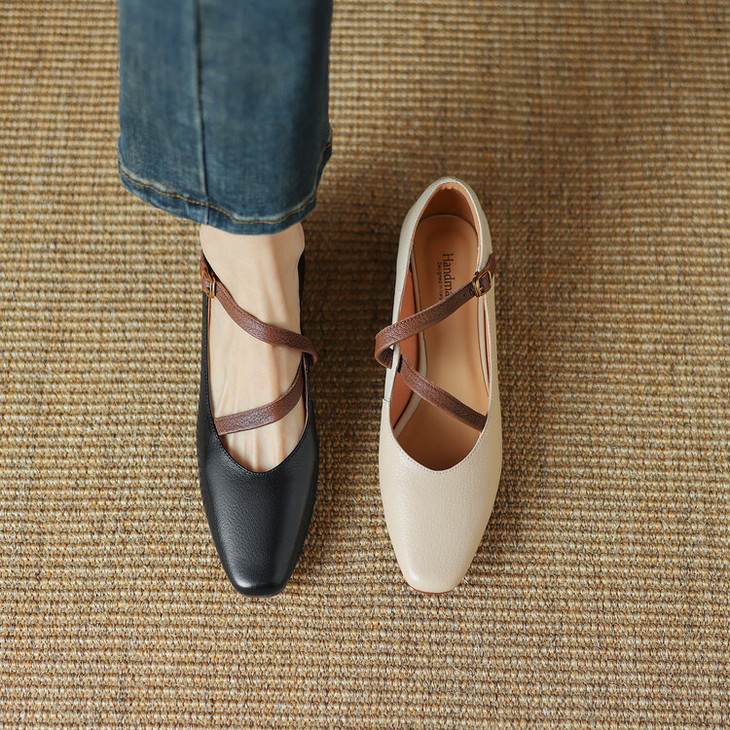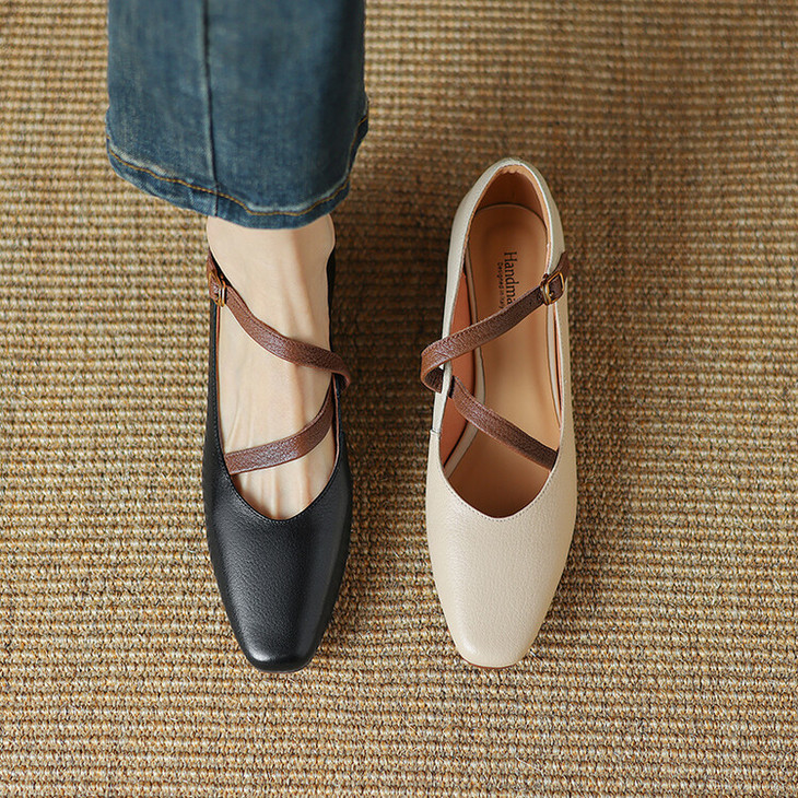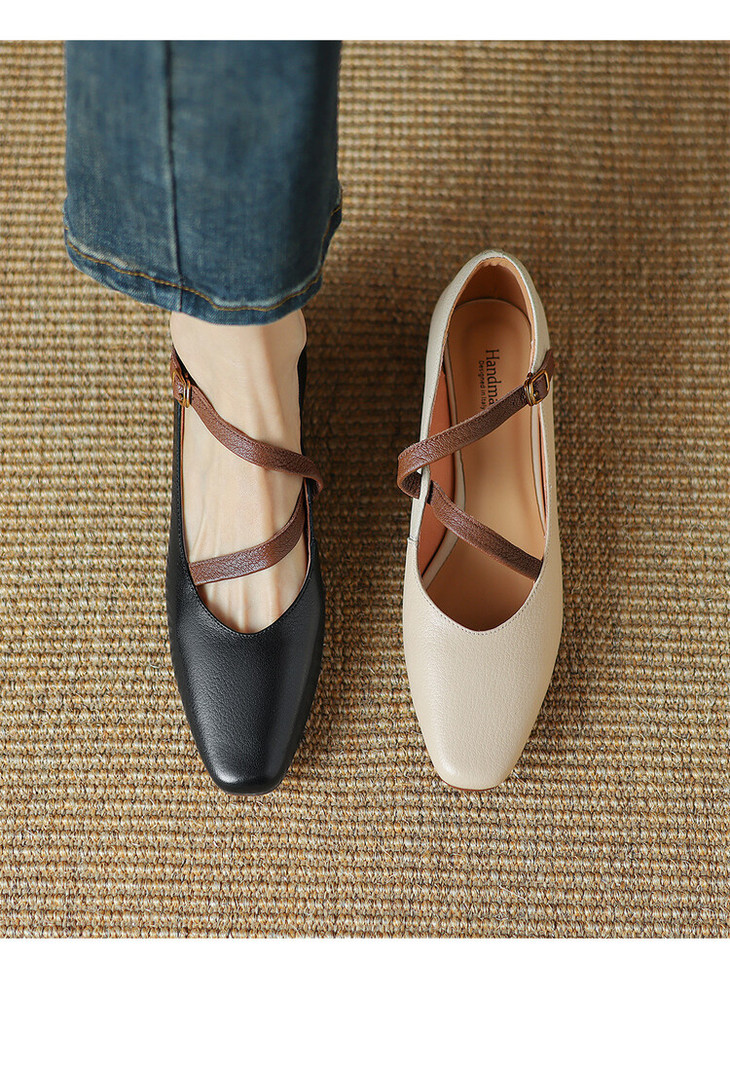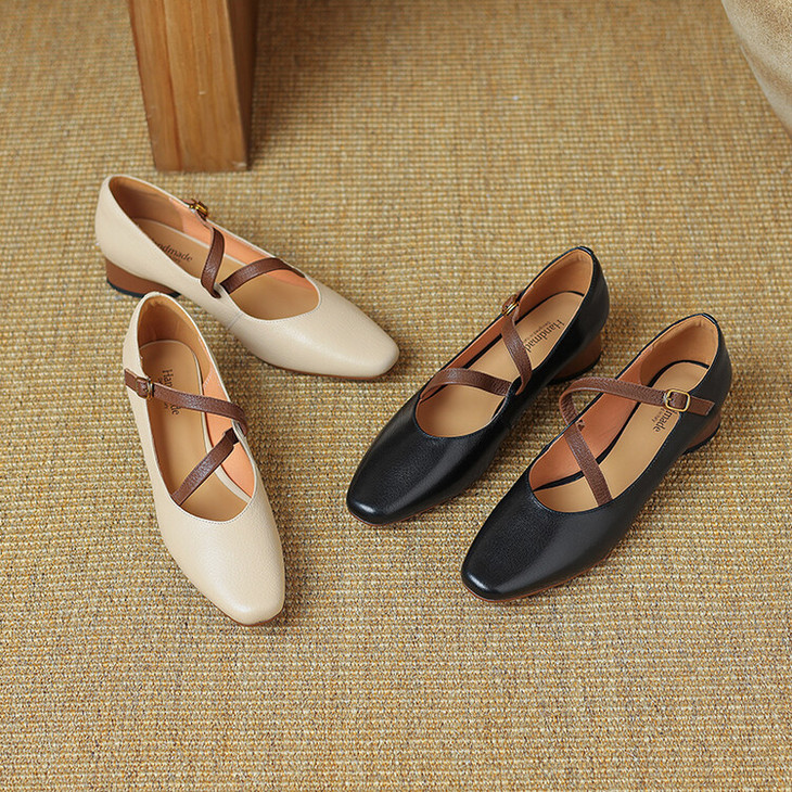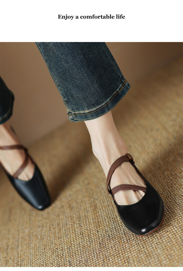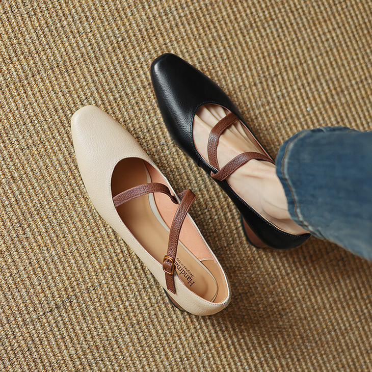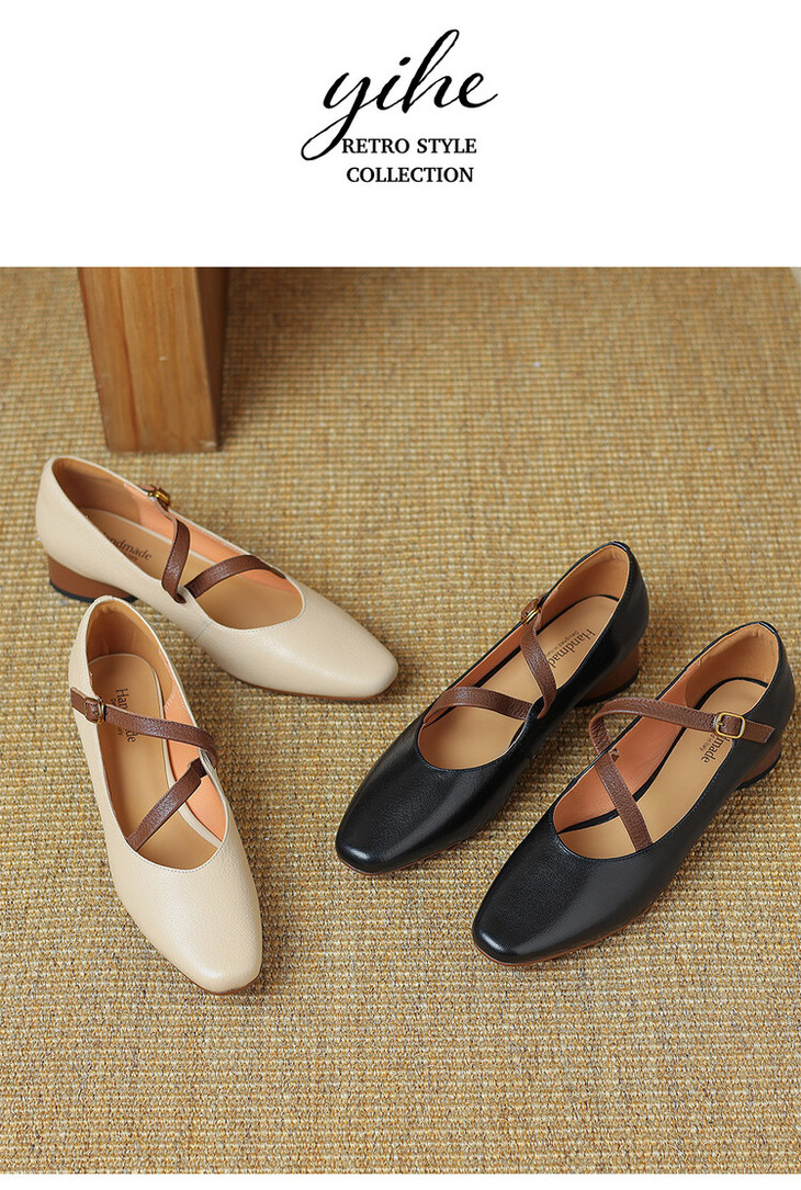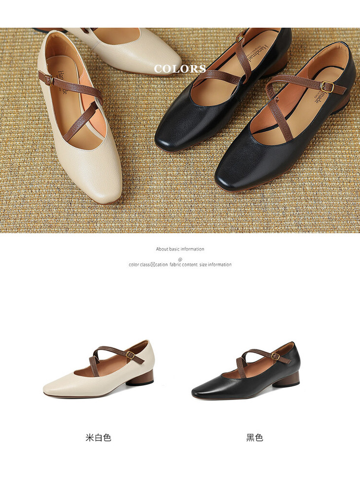 【预售5天】超软真皮~时装单鞋,法式复古绝美气质圆方头芭蕾玛丽珍鞋LD&6885