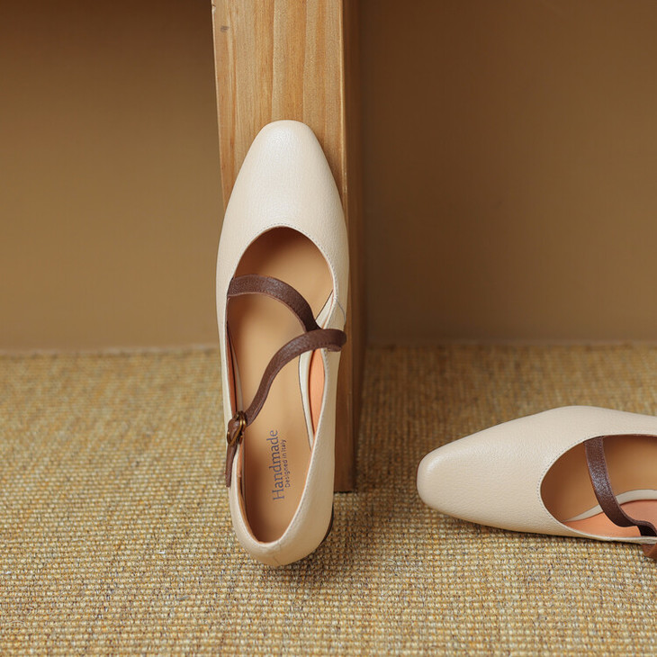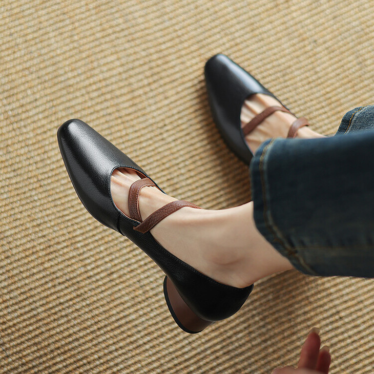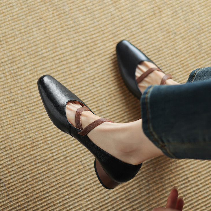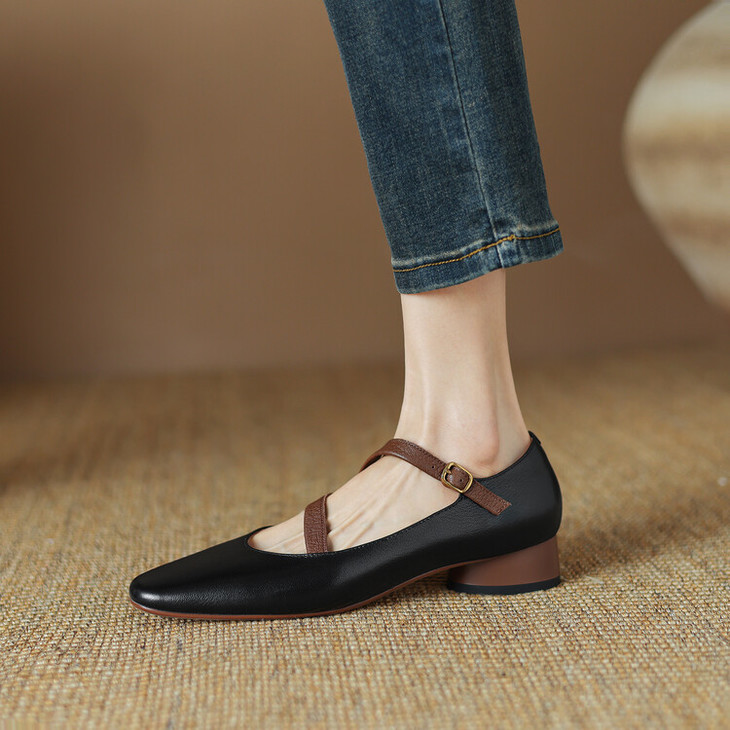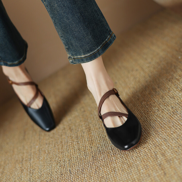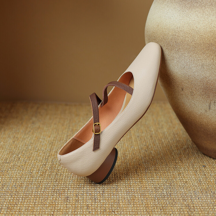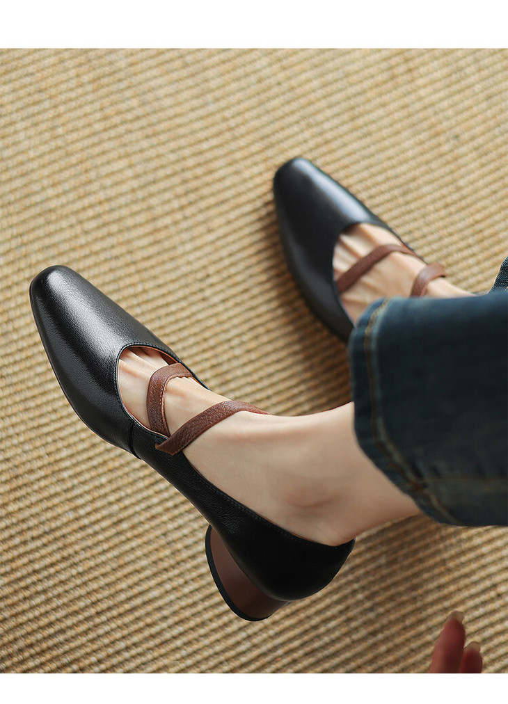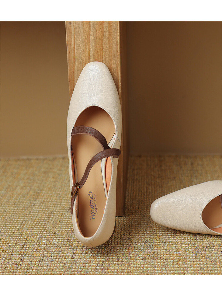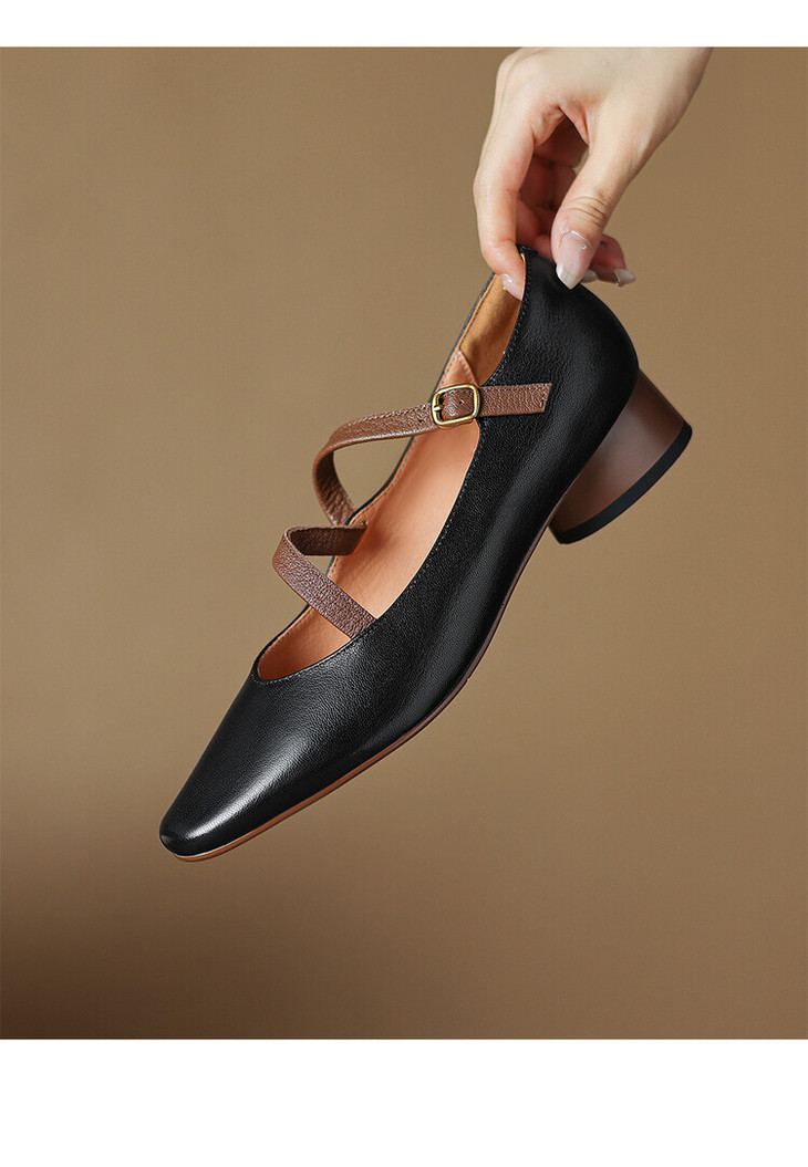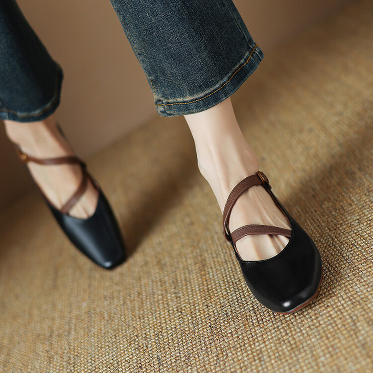 【预售5天】超软真皮~时装单鞋,法式复古绝美气质圆方头芭蕾玛丽珍鞋LD&6885