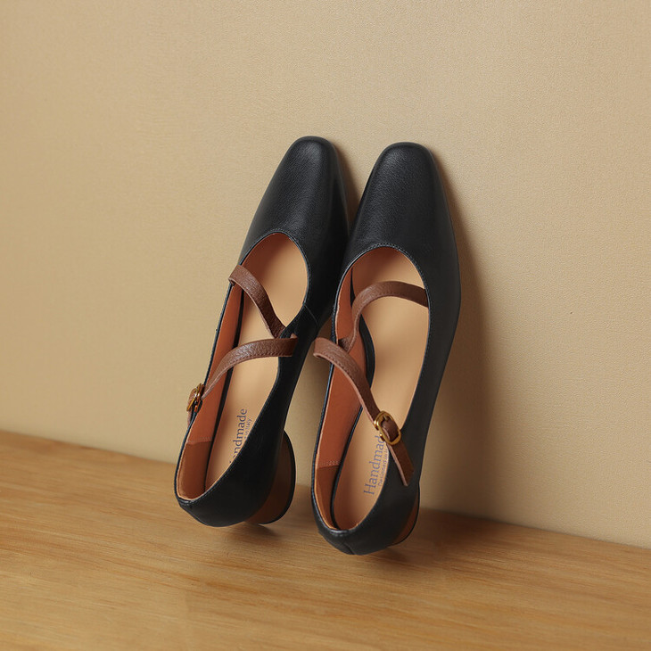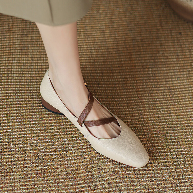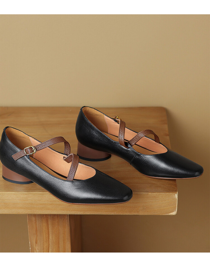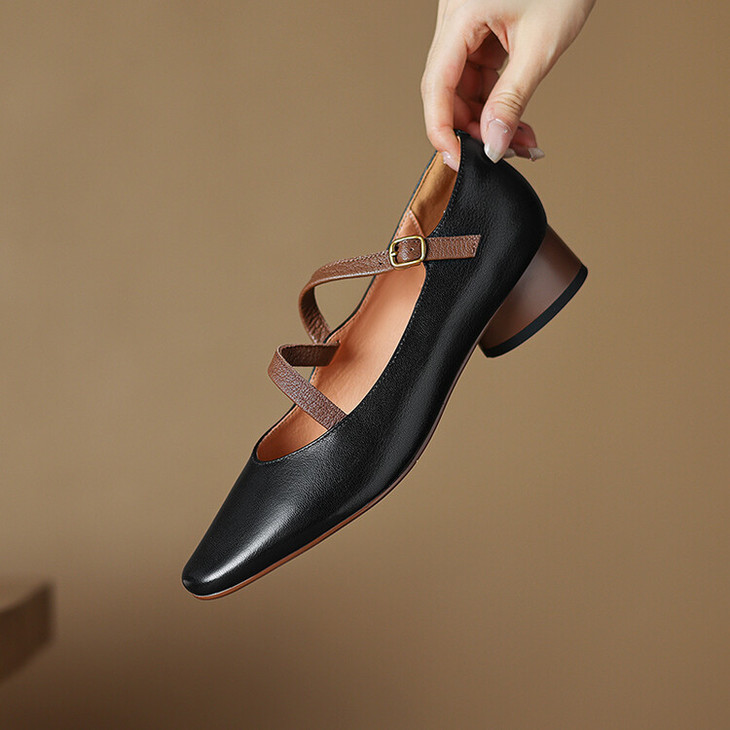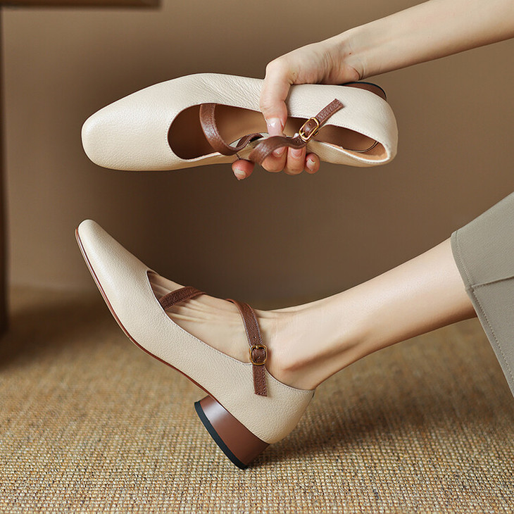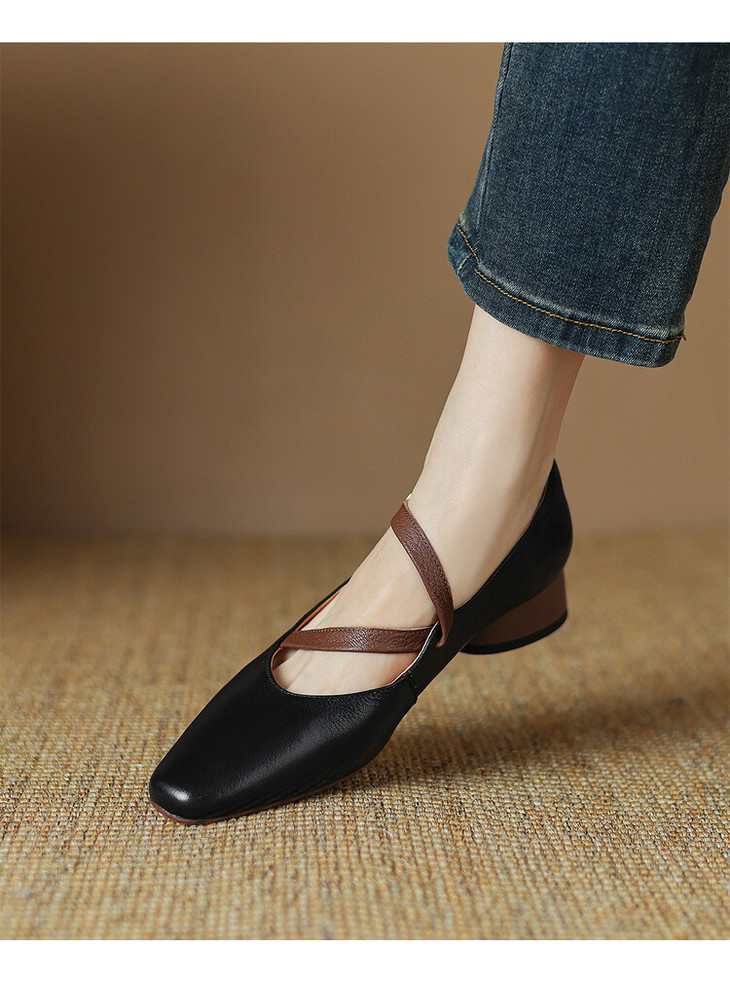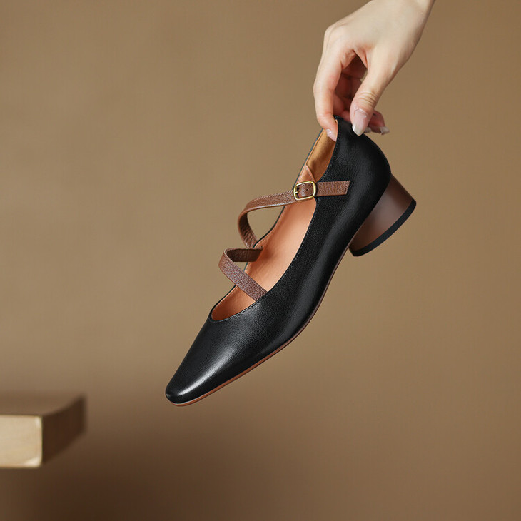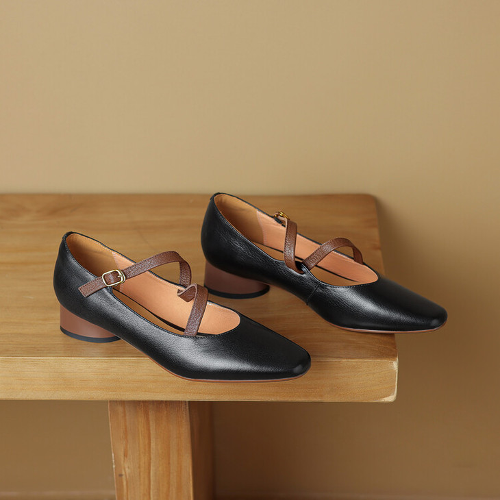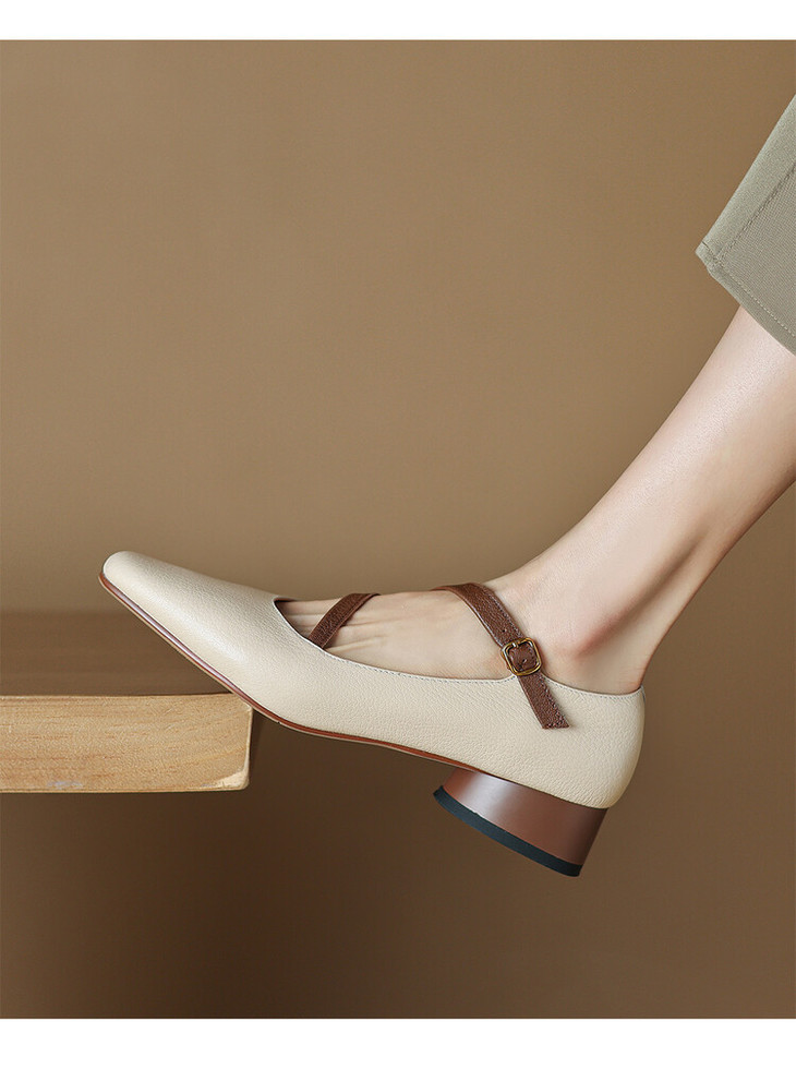 【预售5天】超软真皮~时装单鞋,法式复古绝美气质圆方头芭蕾玛丽珍鞋LD&6885