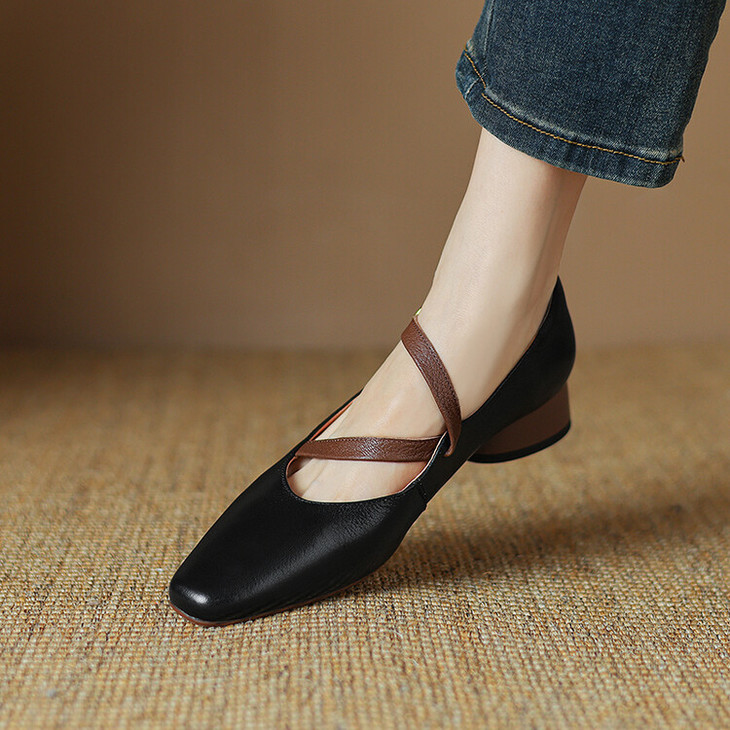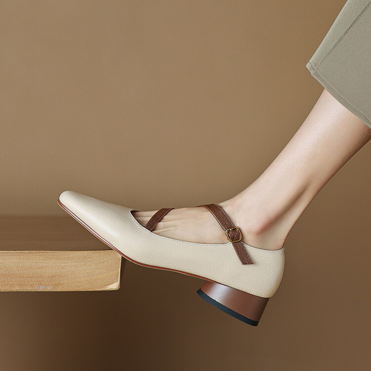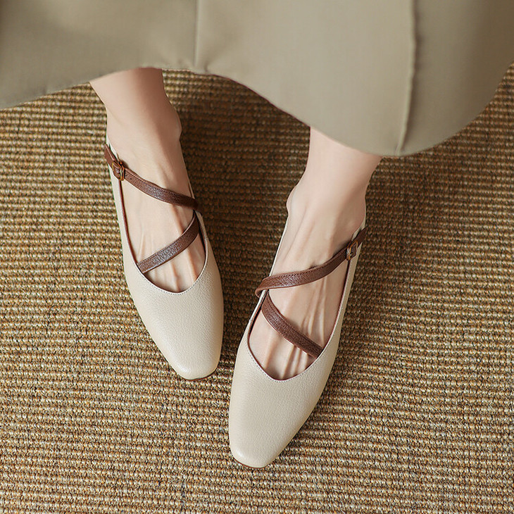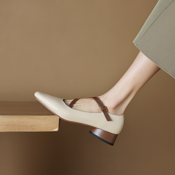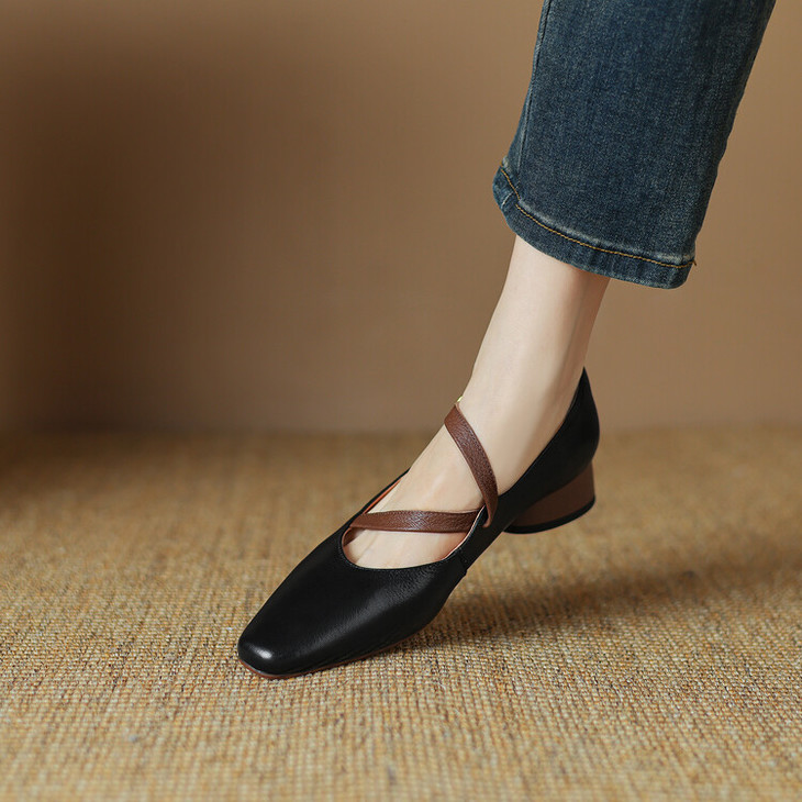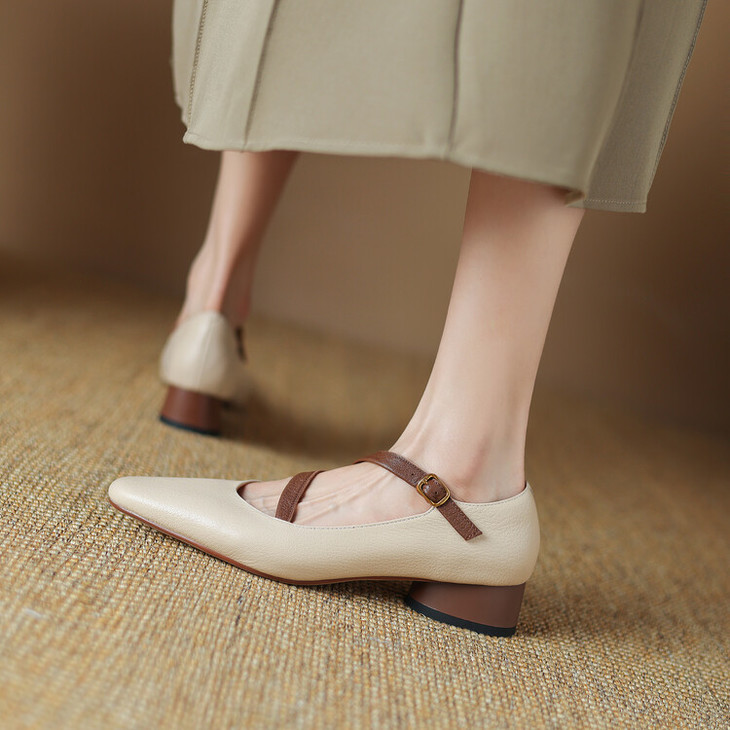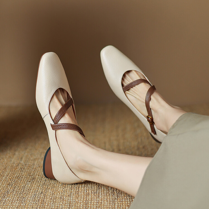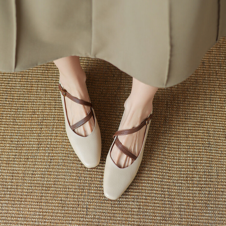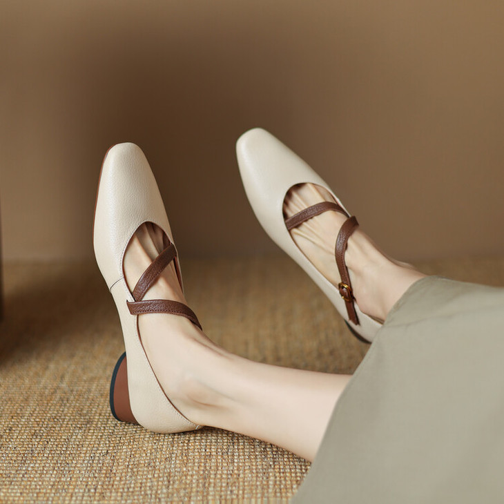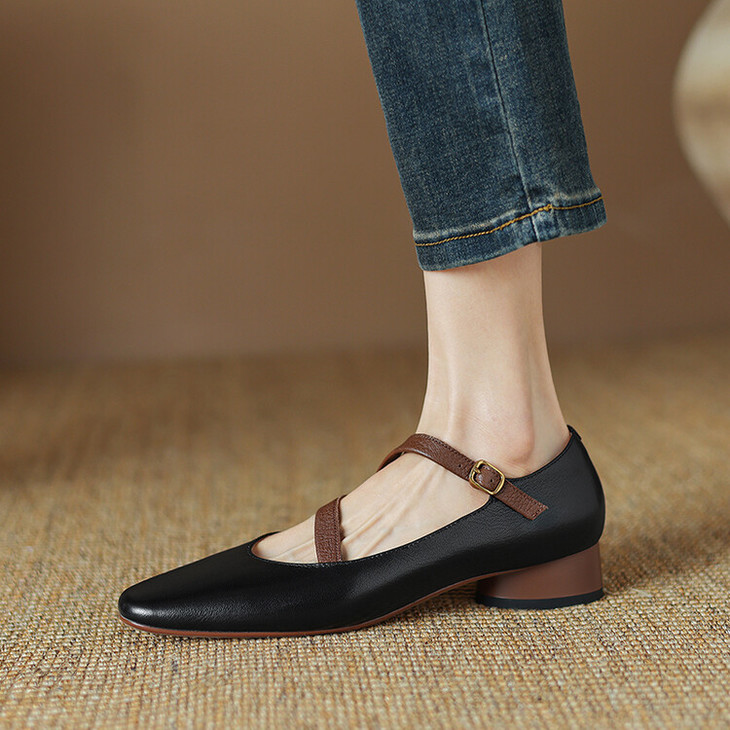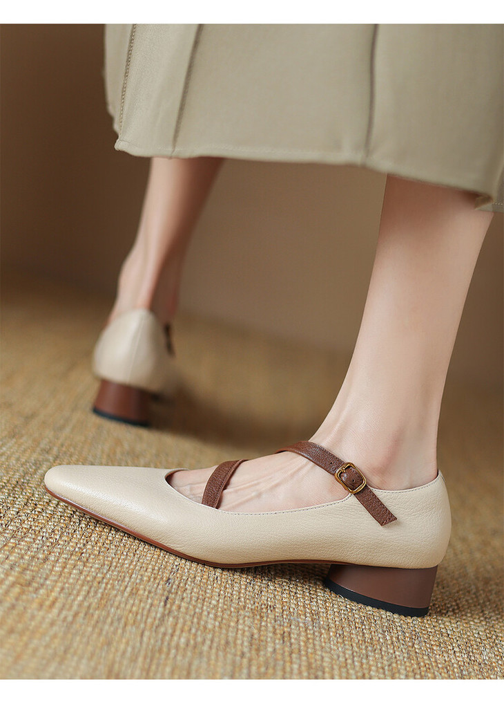 【预售5天】超软真皮~时装单鞋,法式复古绝美气质圆方头芭蕾玛丽珍鞋LD&6885