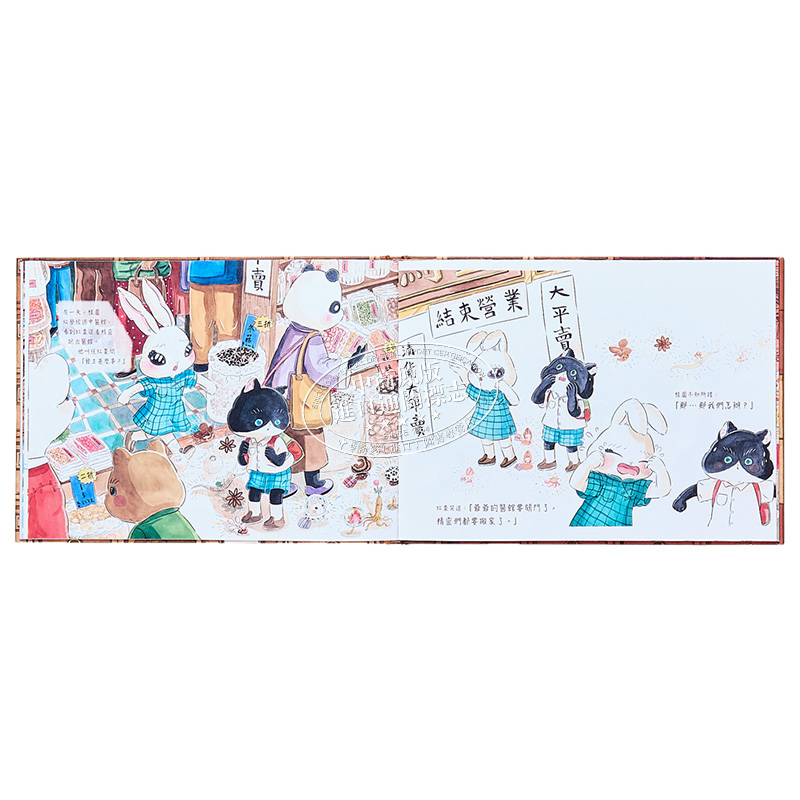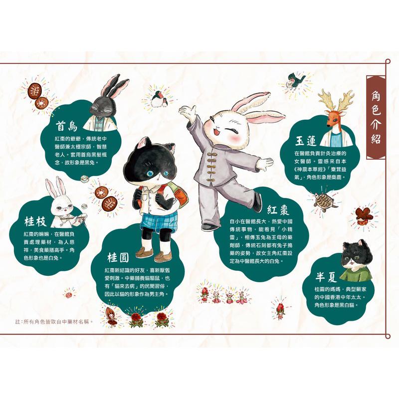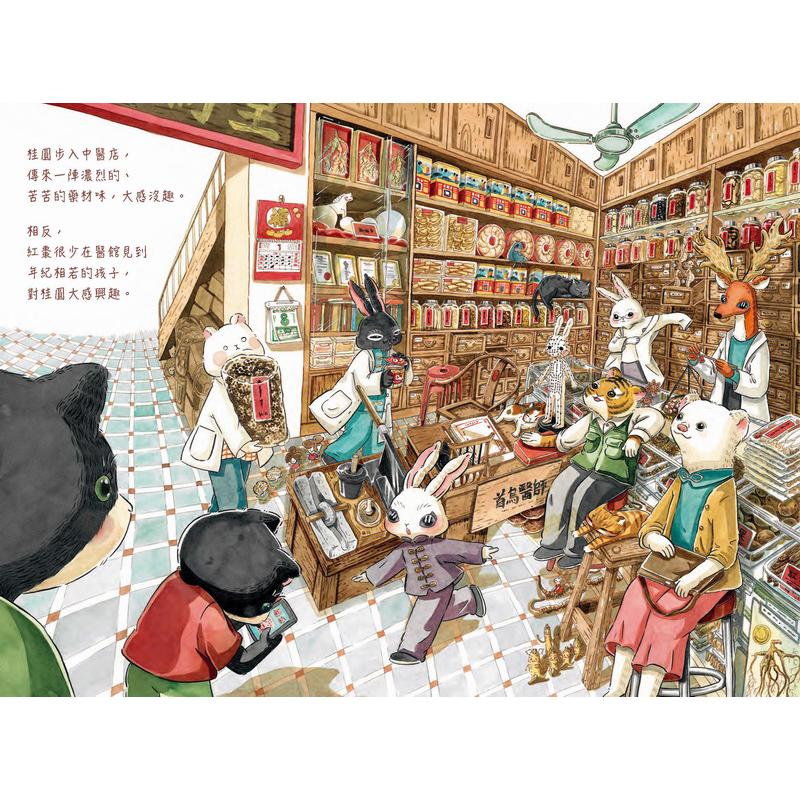 《动物医馆:寻找传统……从中医药讲起》是一本充满香港旧情怀的绘本,透过主角红枣与好友桂圆在传统中医馆的故事,带领读者认识逐渐消失的传统中医药文化与器具,如百子柜、煲药罉,以及老舖陈设如麻石花砖与吊扇。作者以画家视角,结合亲子共读的缤纷画面,呈现香港老店的独特魅力,希望让新一代看到传统之美。故事末段以新旧医馆交替,传达文化传承的意义:即使事物改变形式,只要有人记得,其精神长存,亦盼以消失中的传统为题,分享对文化的热爱与新旧交融的思考。