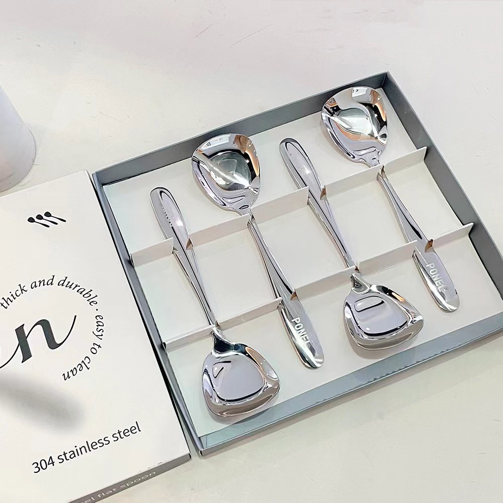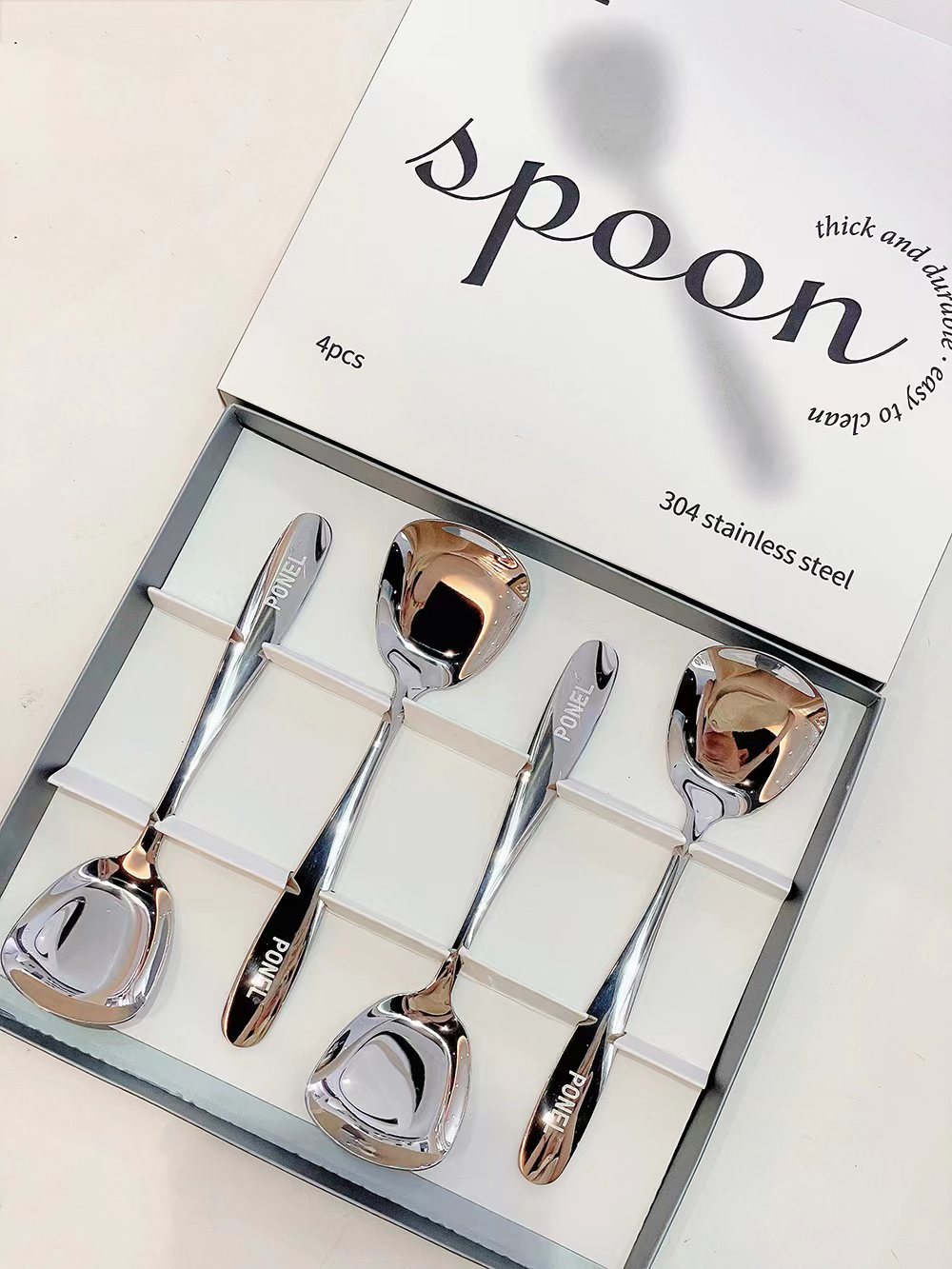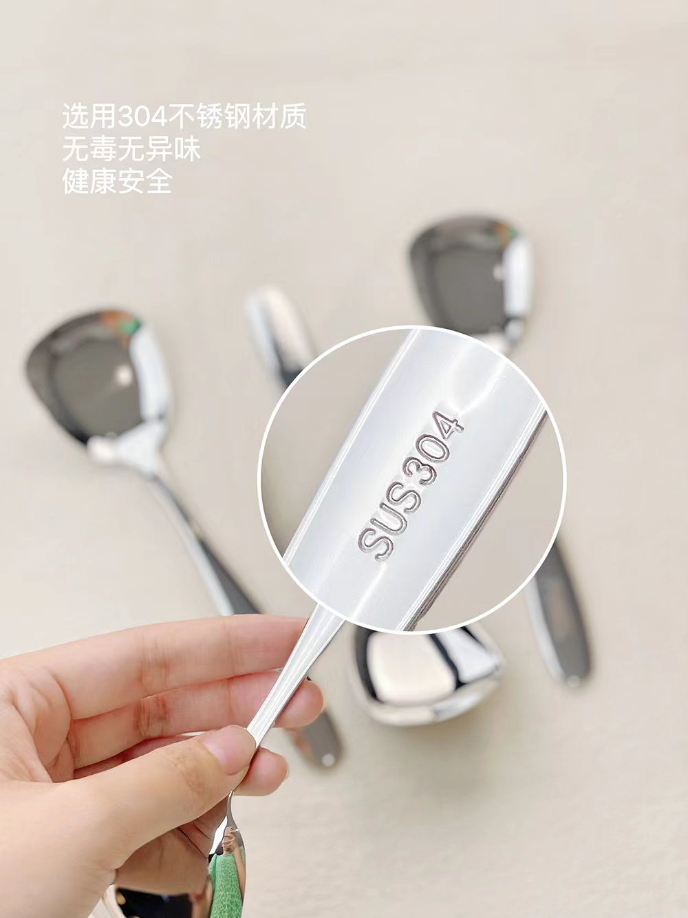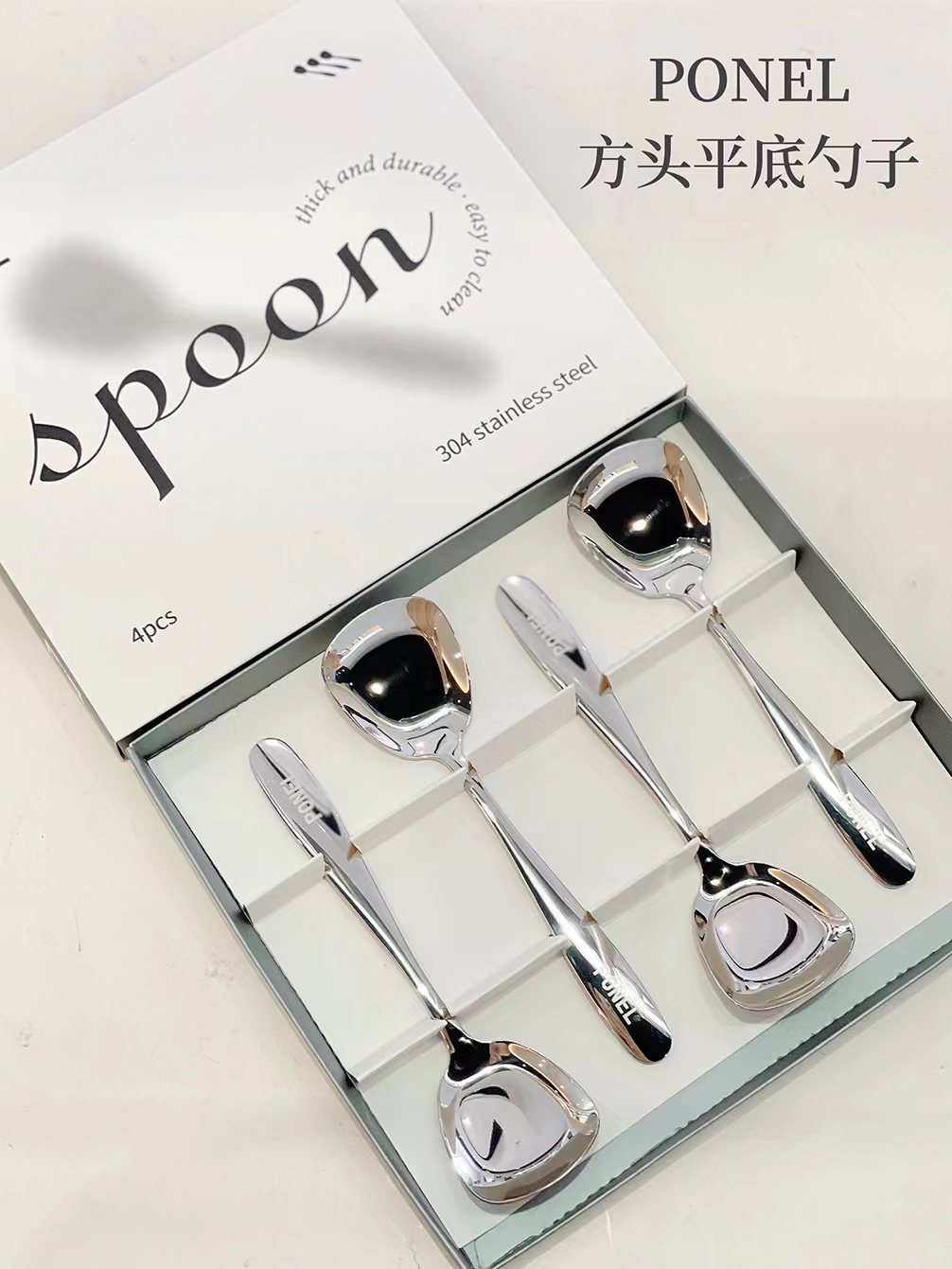 一套4把‼ 真正的304不锈钢材质一套好餐具✅家中必备的平底勺,不光好看,质感也非常好,拿来吃西瓜,干饭很不错哟~