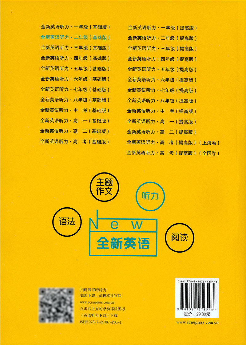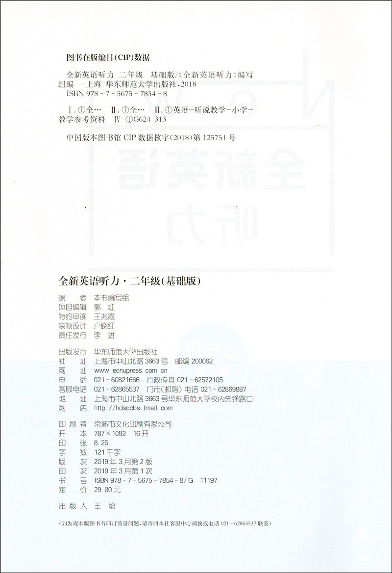 2020新版 全新英语听力二年级基础版 小学2年级英语听力 扫码听录音 小学生英语听力练习 英语听力强化训练 华东师范大学出版社