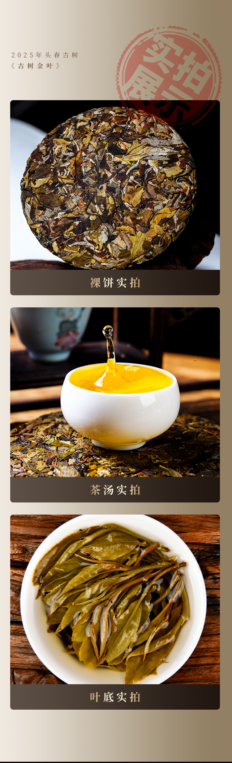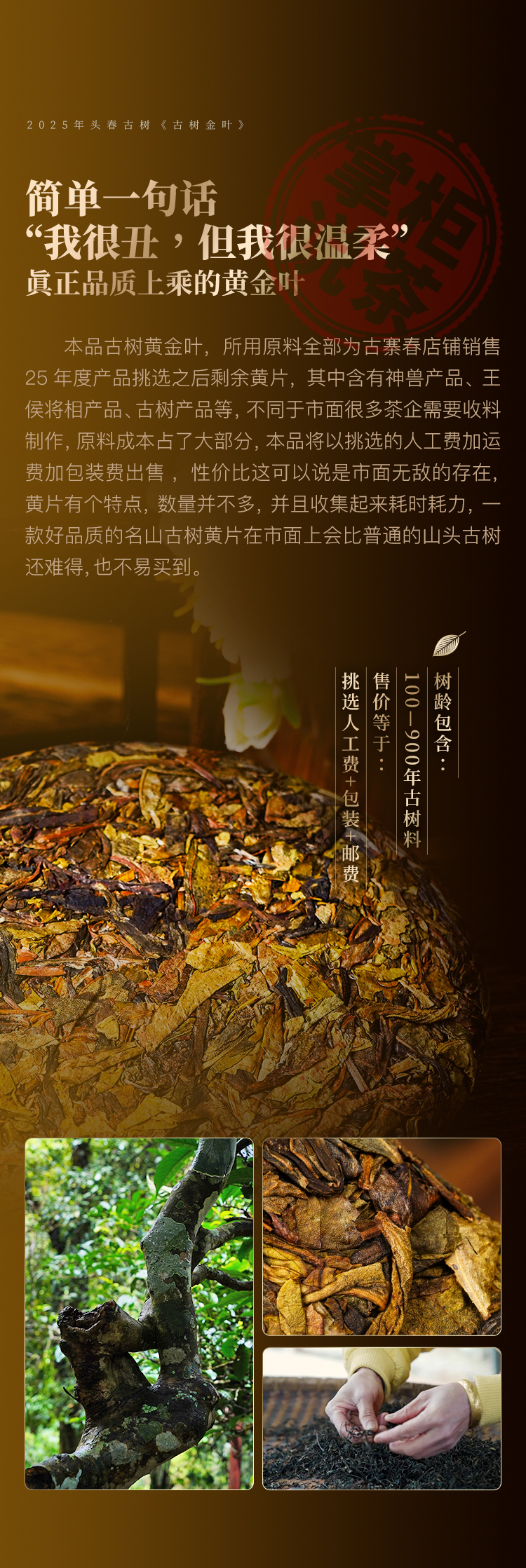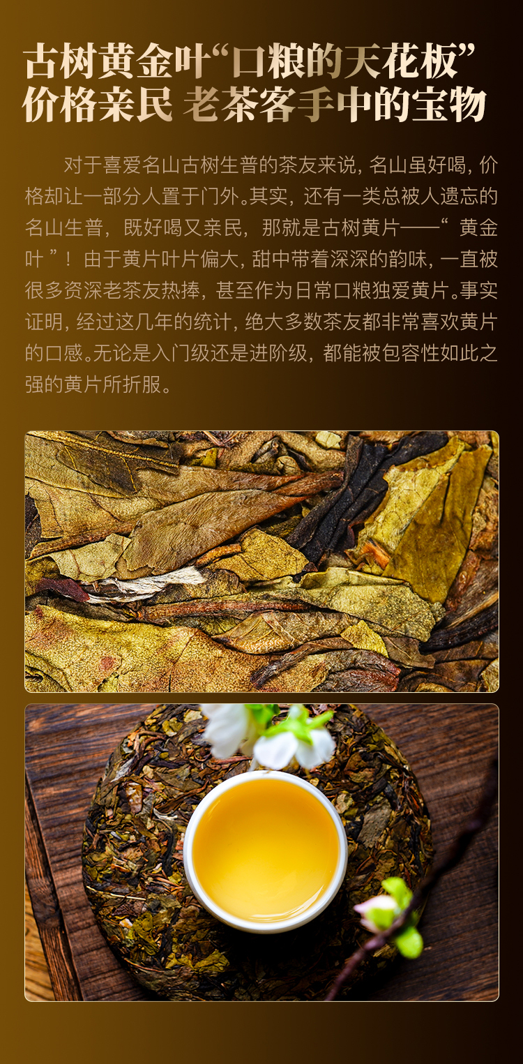 12月4日上午9点【拼团购】【古树金叶】2025年头春头采古树黄金叶“口粮的天花板”价格亲民老茶客手中的宝物200克/饼 5饼/提