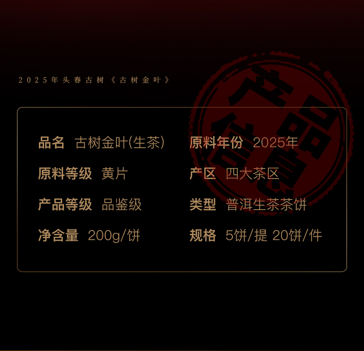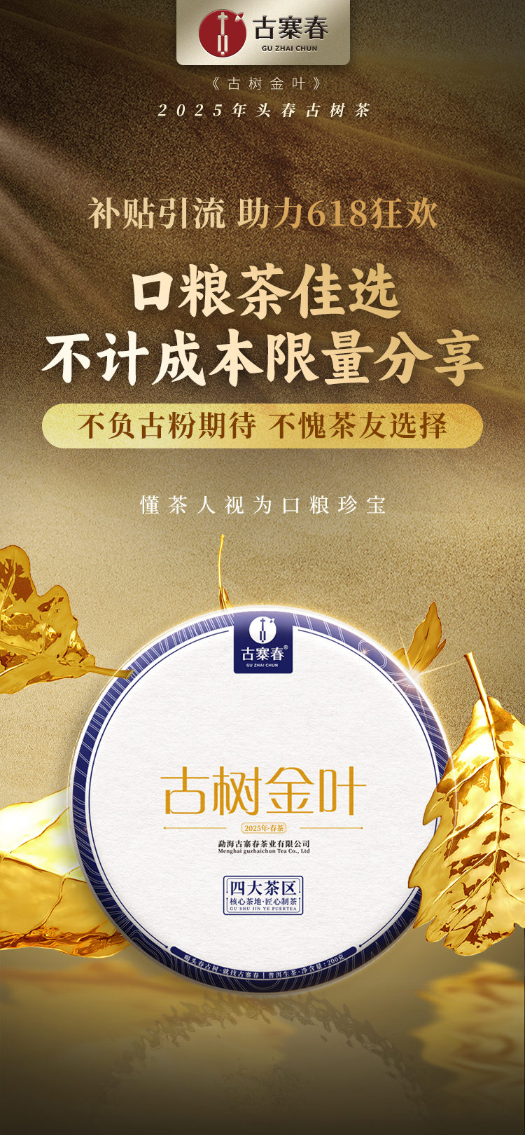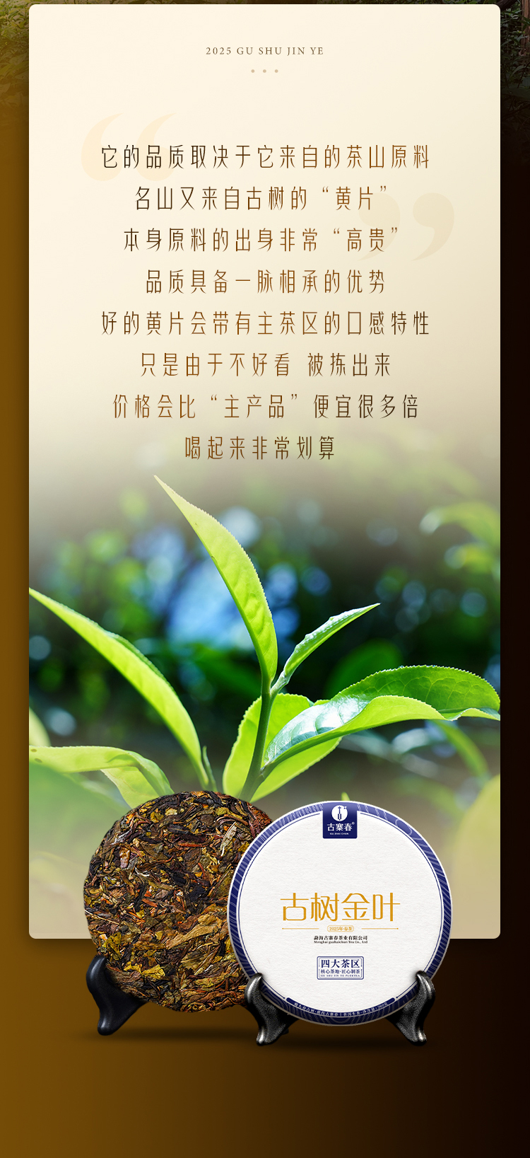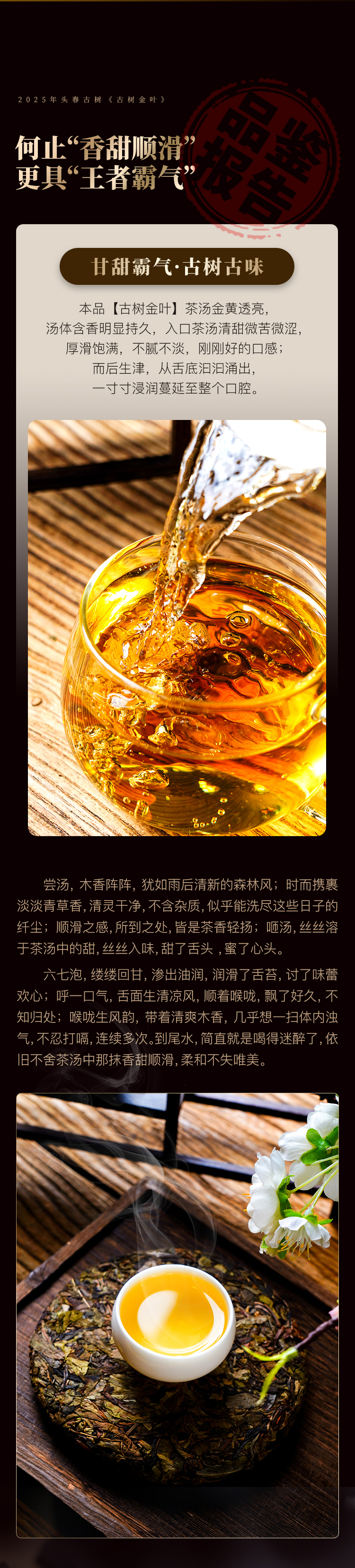 12月4日上午9点【拼团购】【古树金叶】2025年头春头采古树黄金叶“口粮的天花板”价格亲民老茶客手中的宝物200克/饼 5饼/提