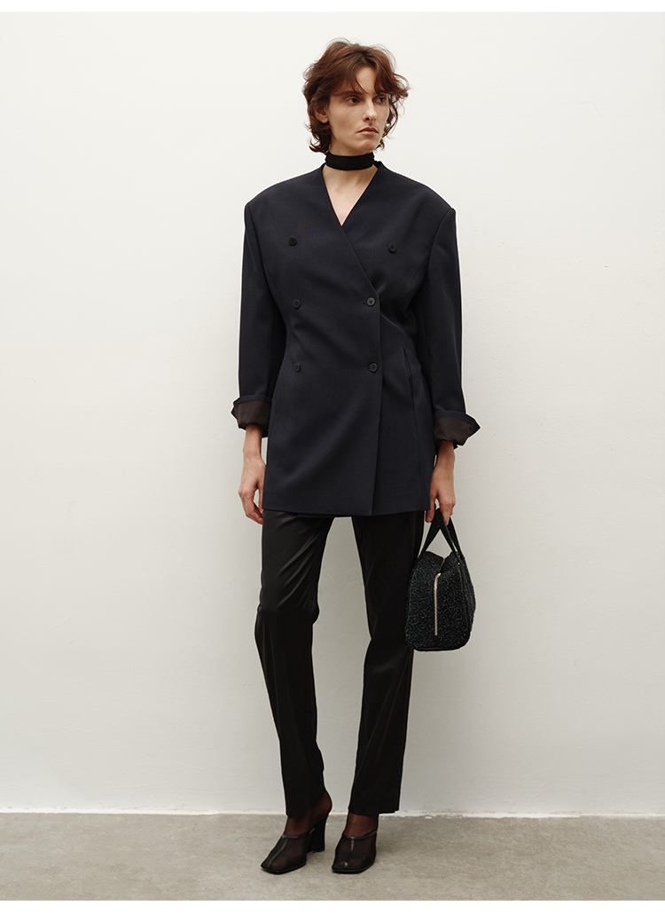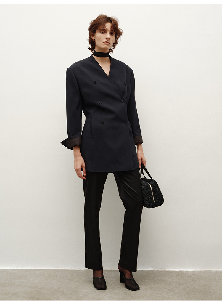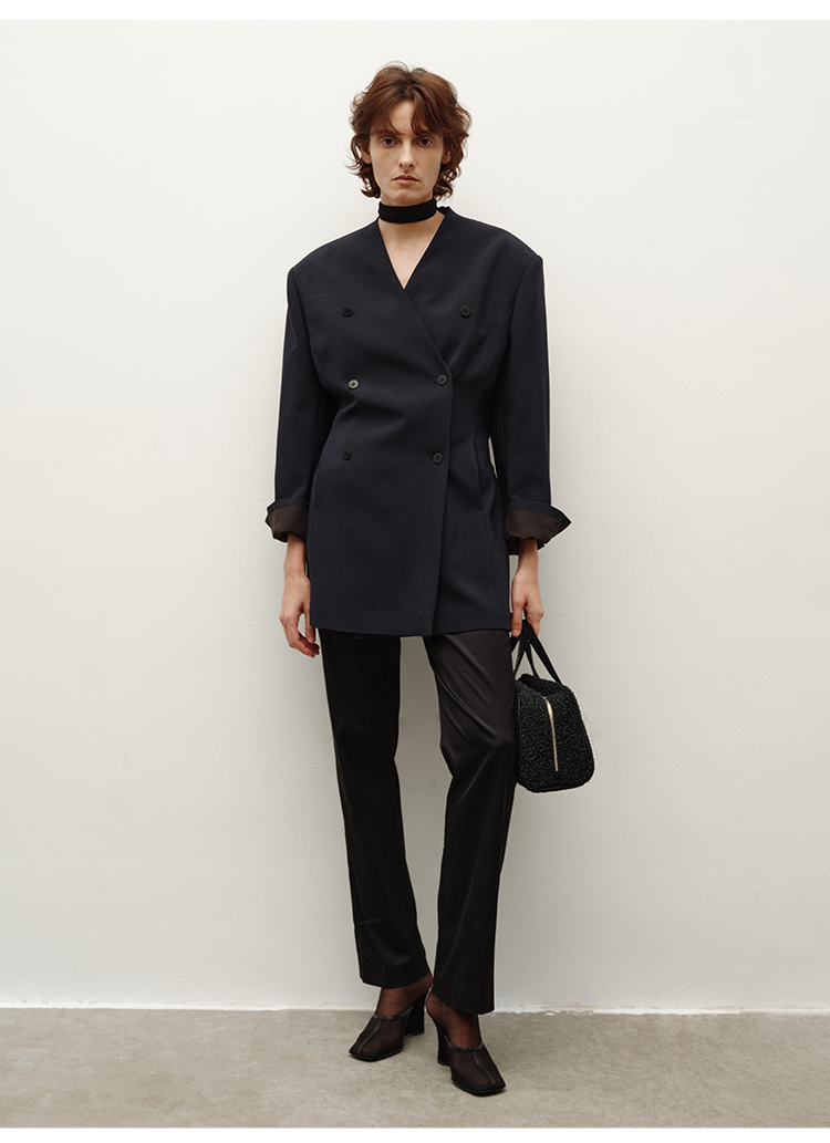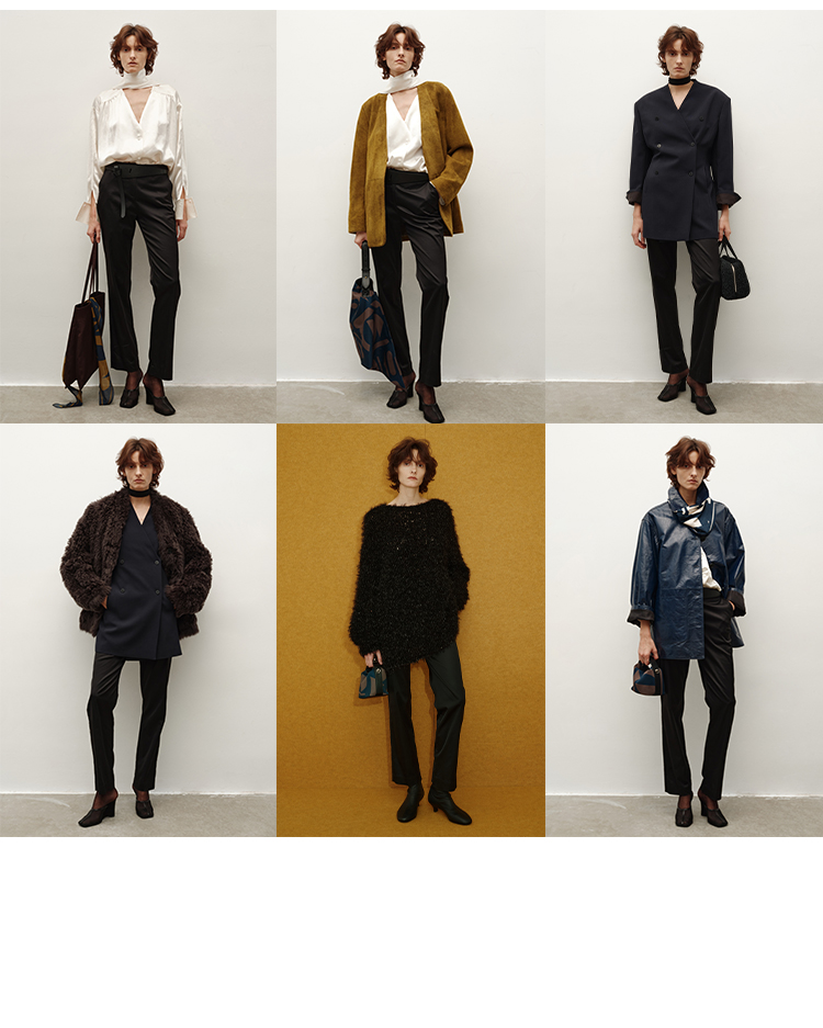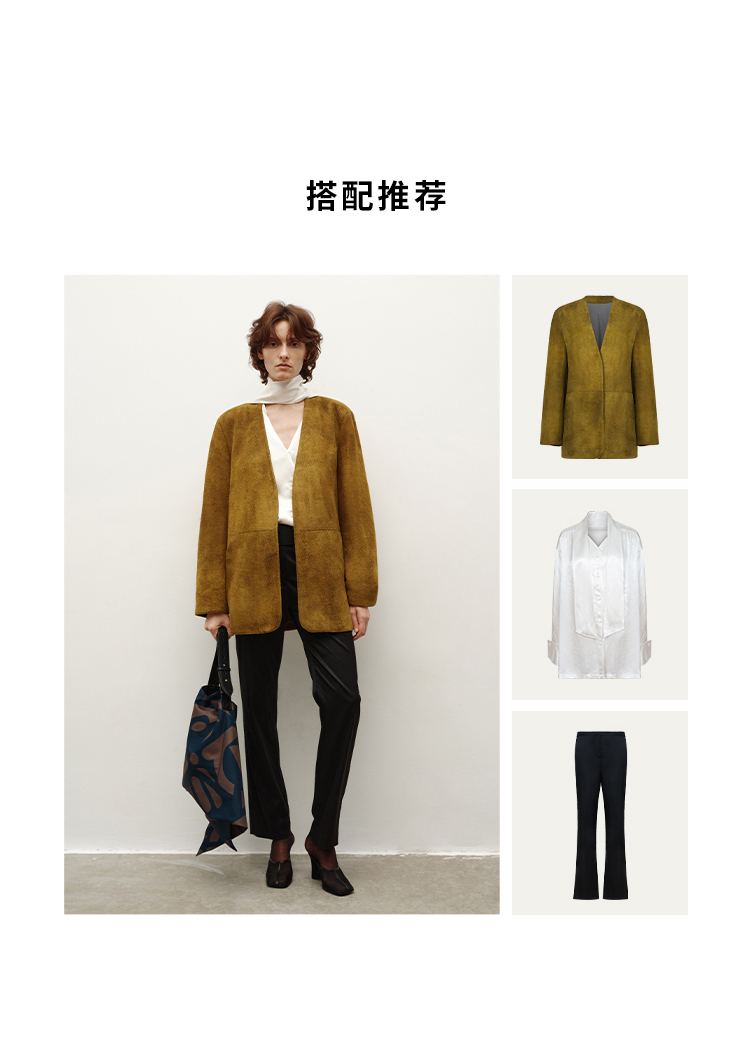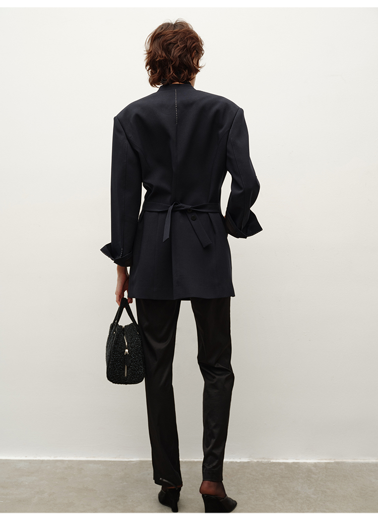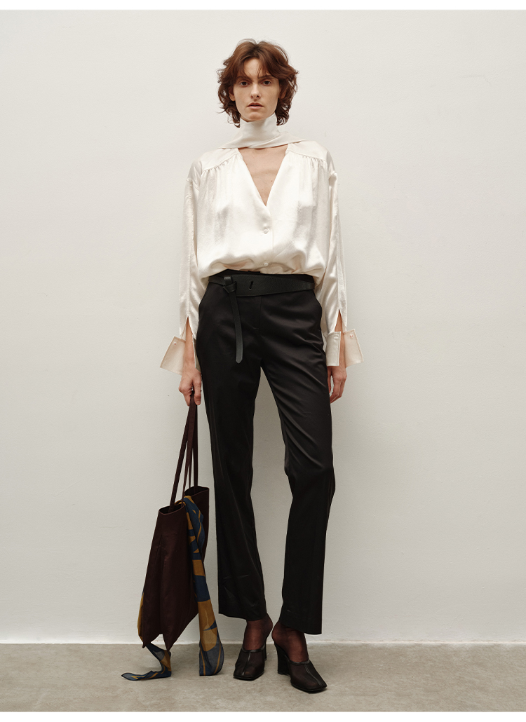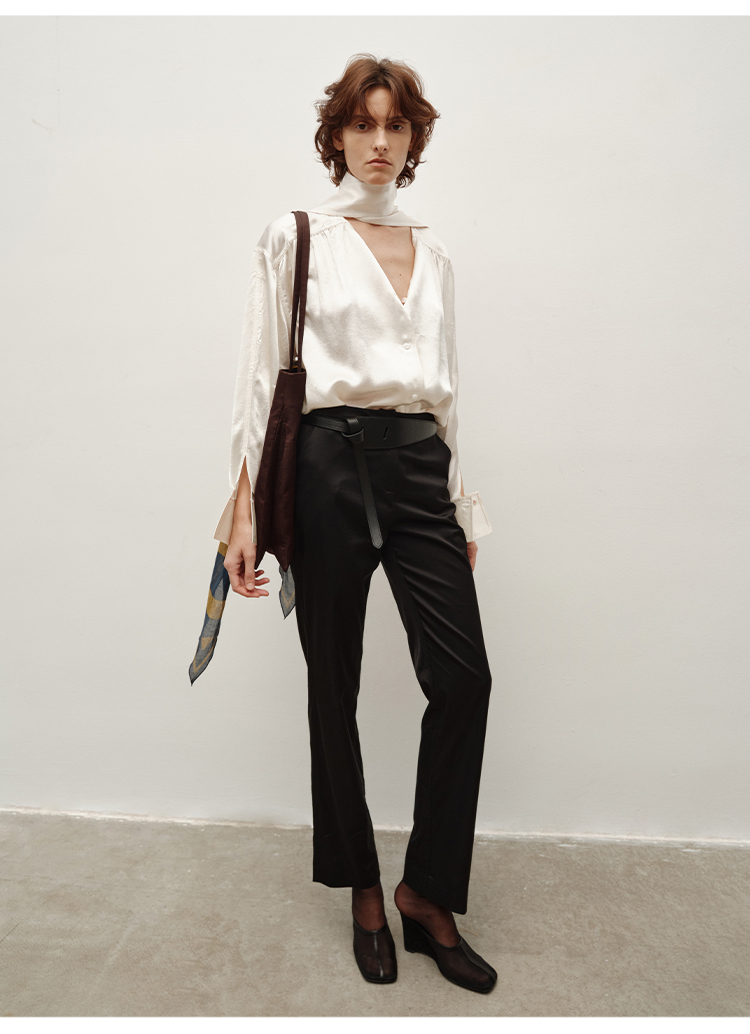 HIDEMI简约设计感v领系带套装 上衣/长裤