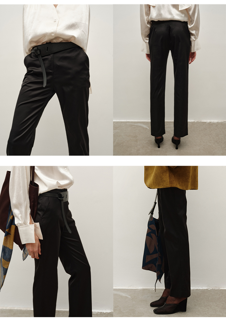 HIDEMI 进口天丝聚氨酯缎面超显瘦烟管裤神裤