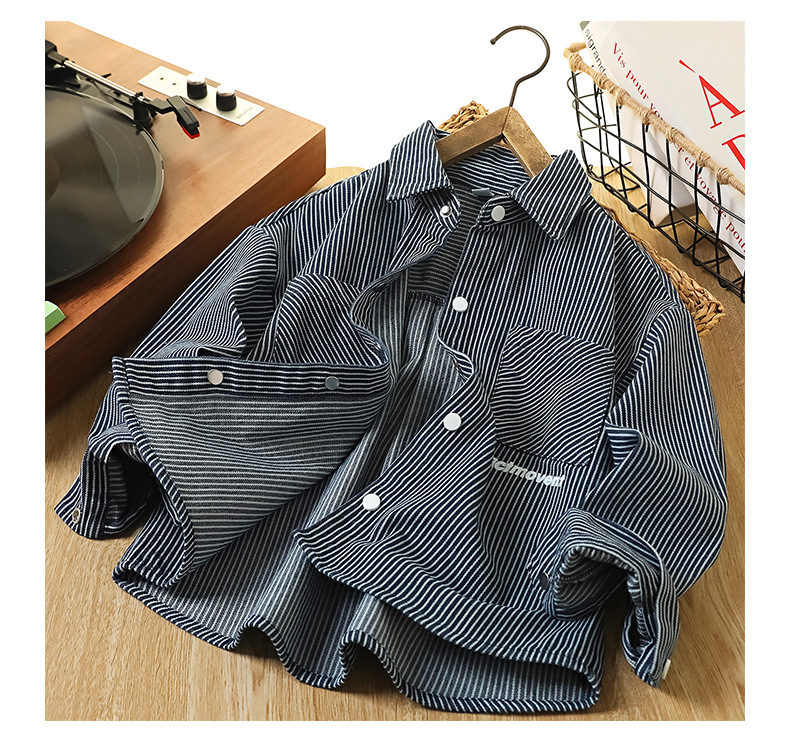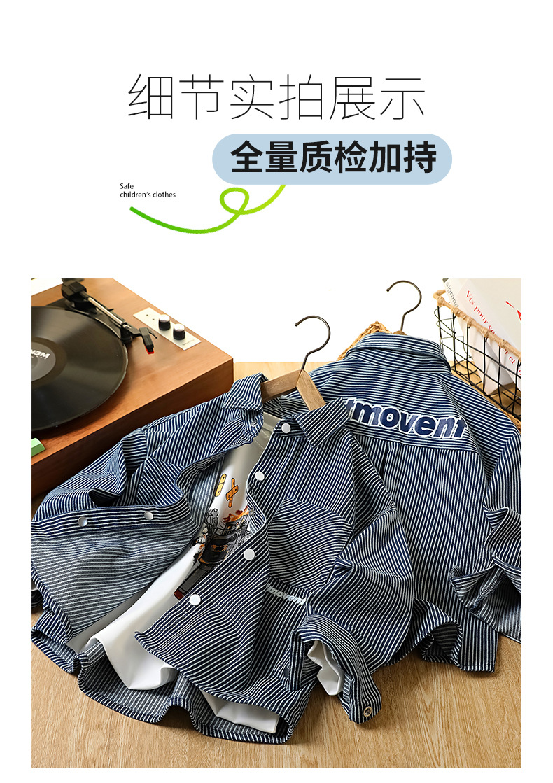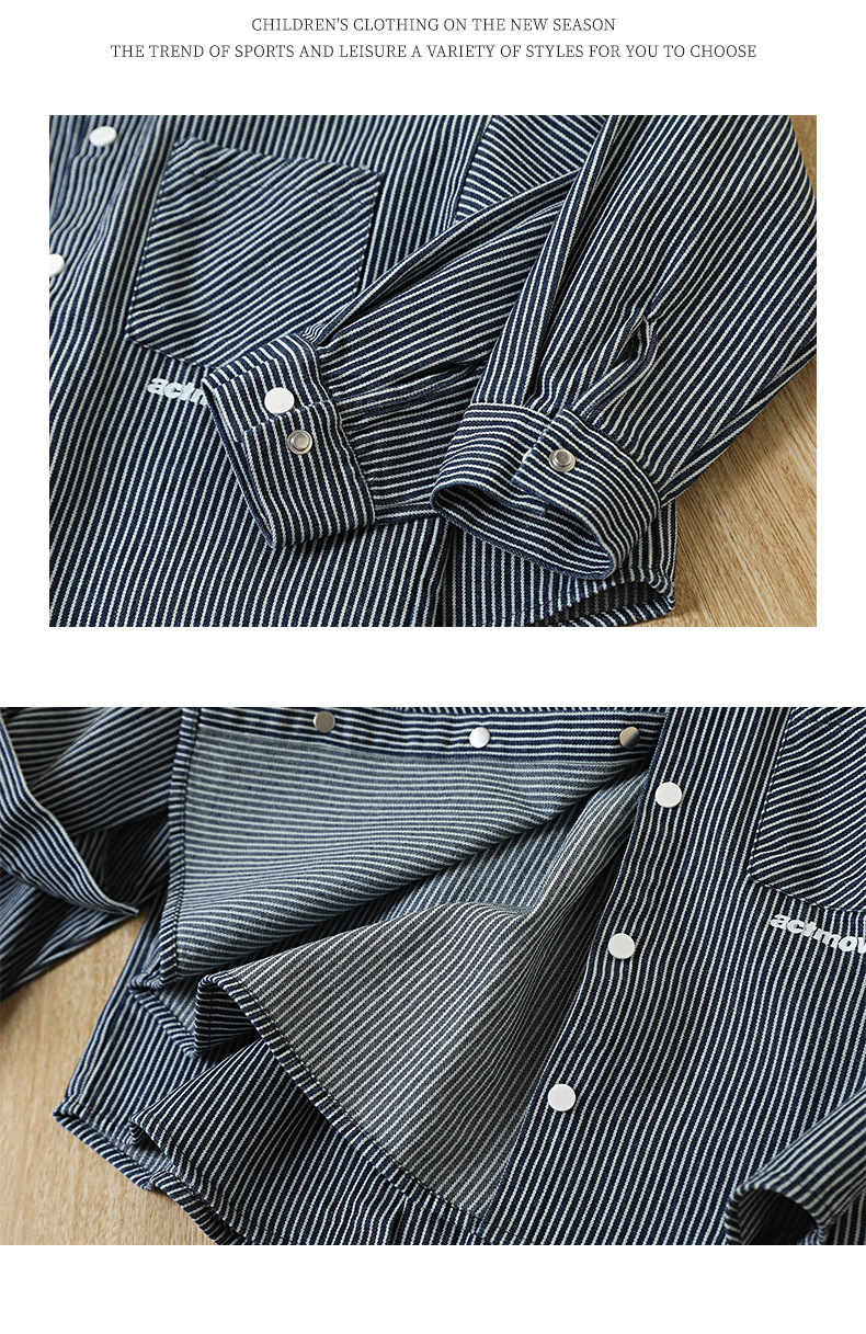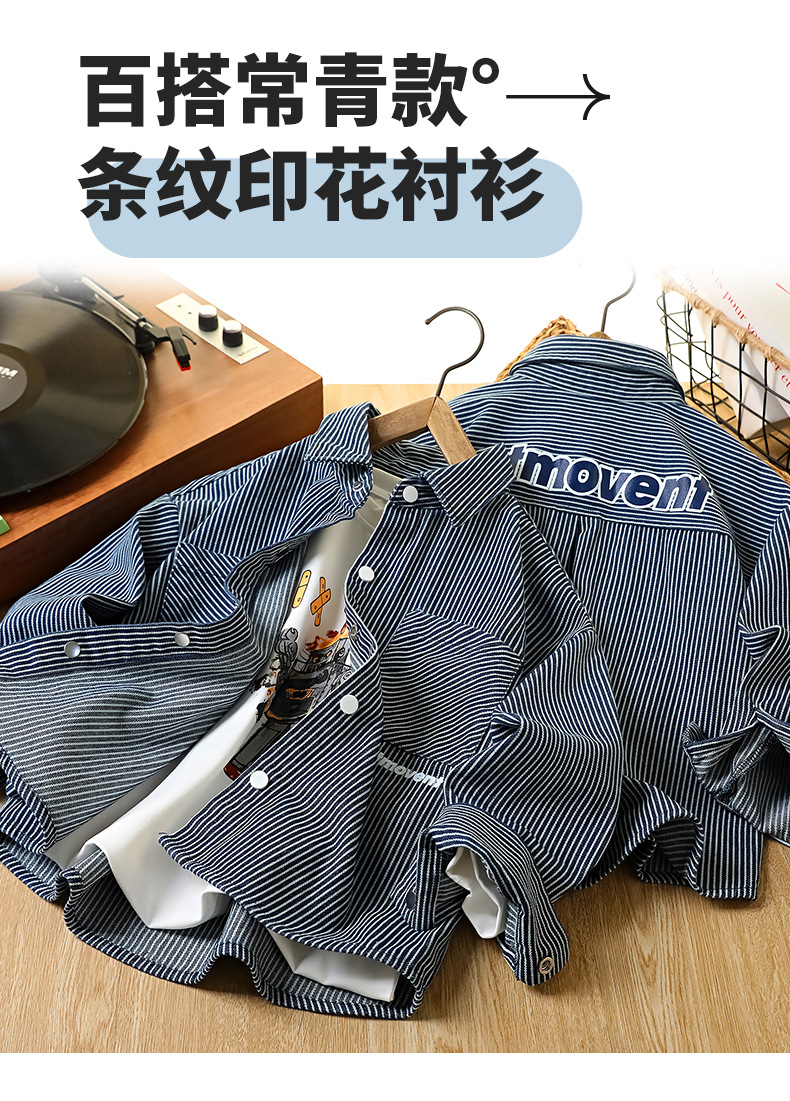 童装男童牛仔衬衫秋装新款儿童洋气中大童长袖衬衣条纹男孩外套潮