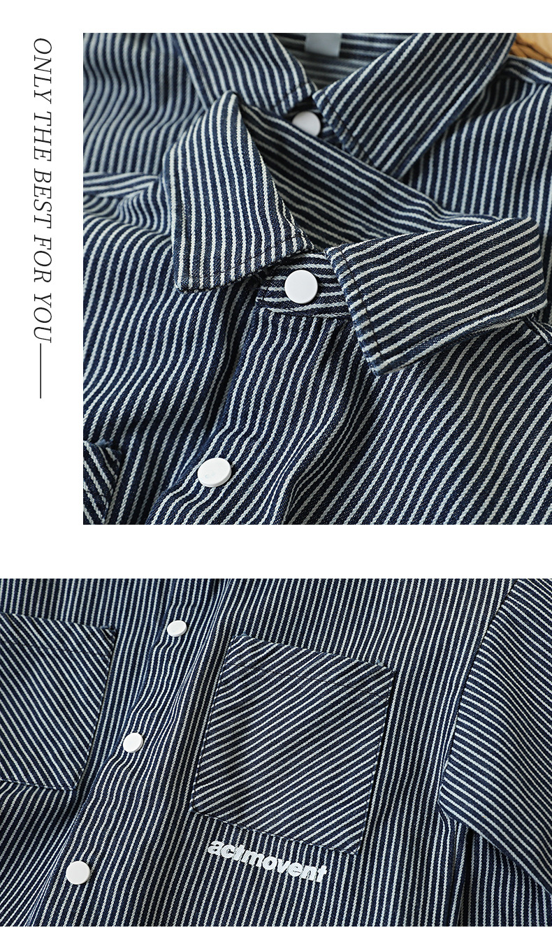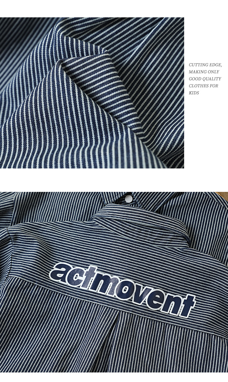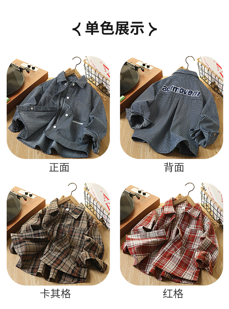 童装男童牛仔衬衫秋装新款儿童洋气中大童长袖衬衣条纹男孩外套潮