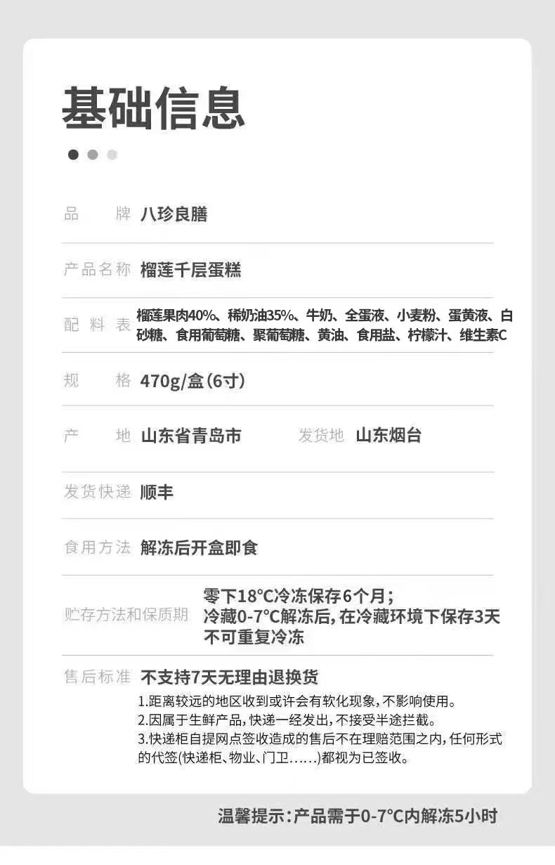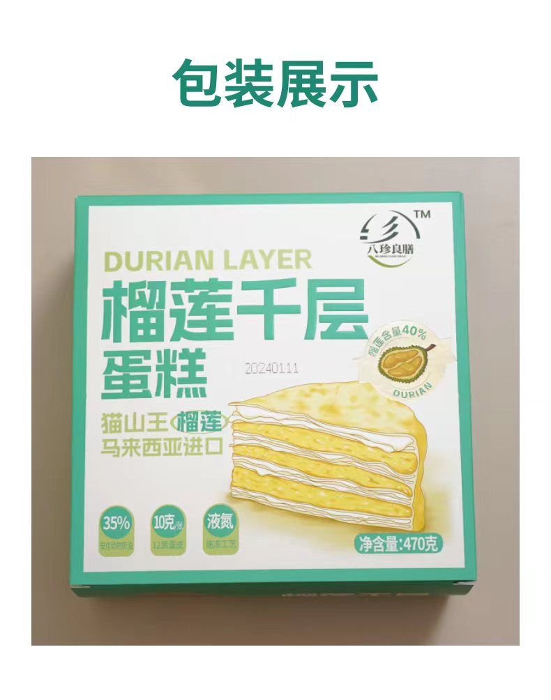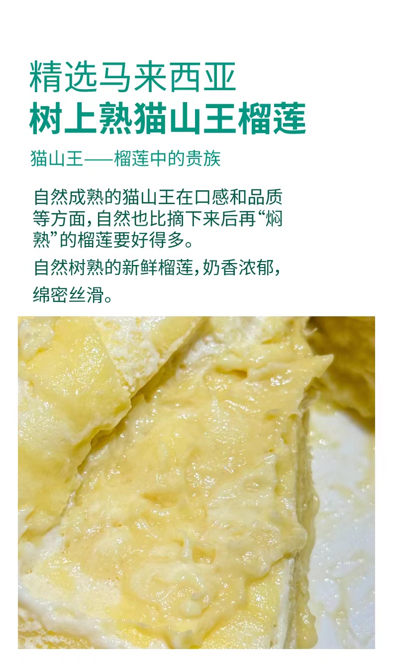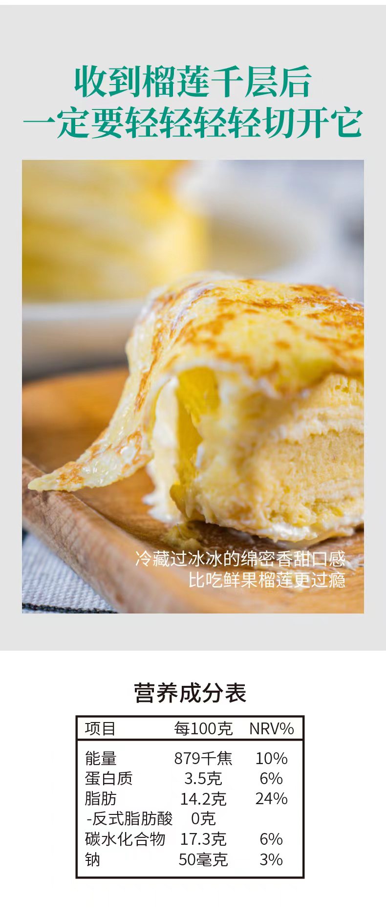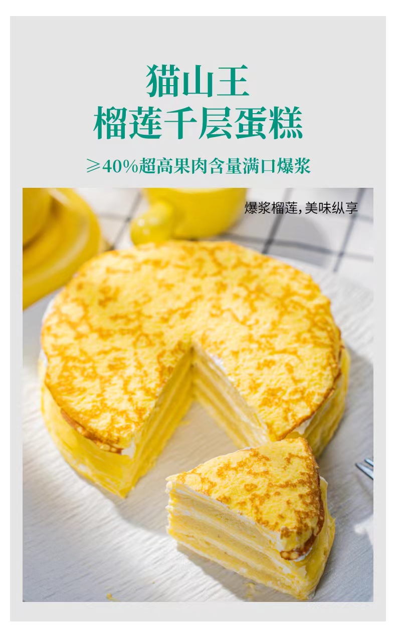 猫山王榴莲千层蛋糕 470g/盒(6寸)