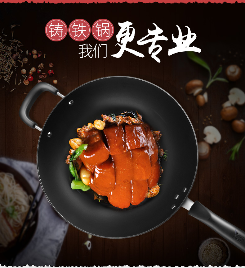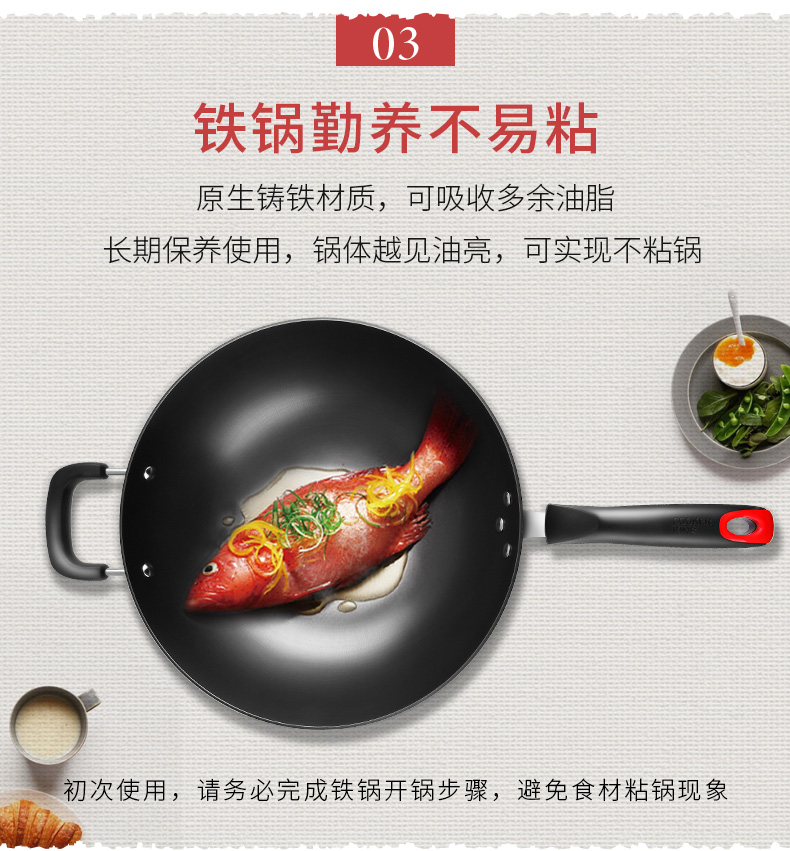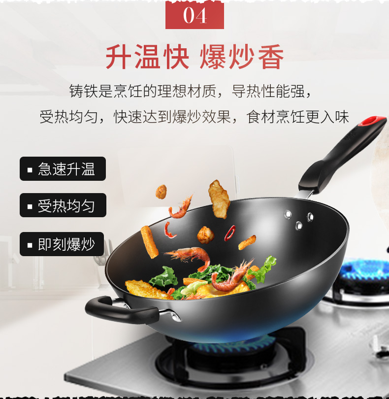 炊大皇炒锅34cm铁锅无涂层烹饪锅具铸铁炒菜锅电磁炉燃气煤气灶明火通用C34D2