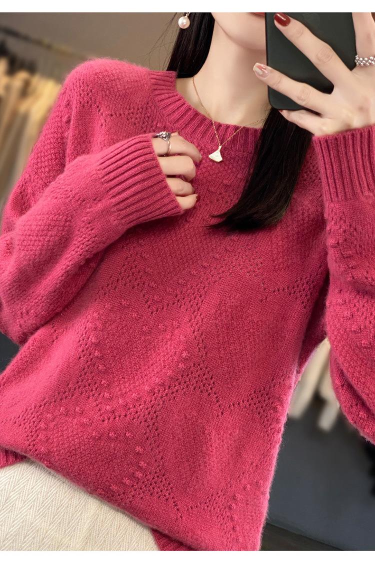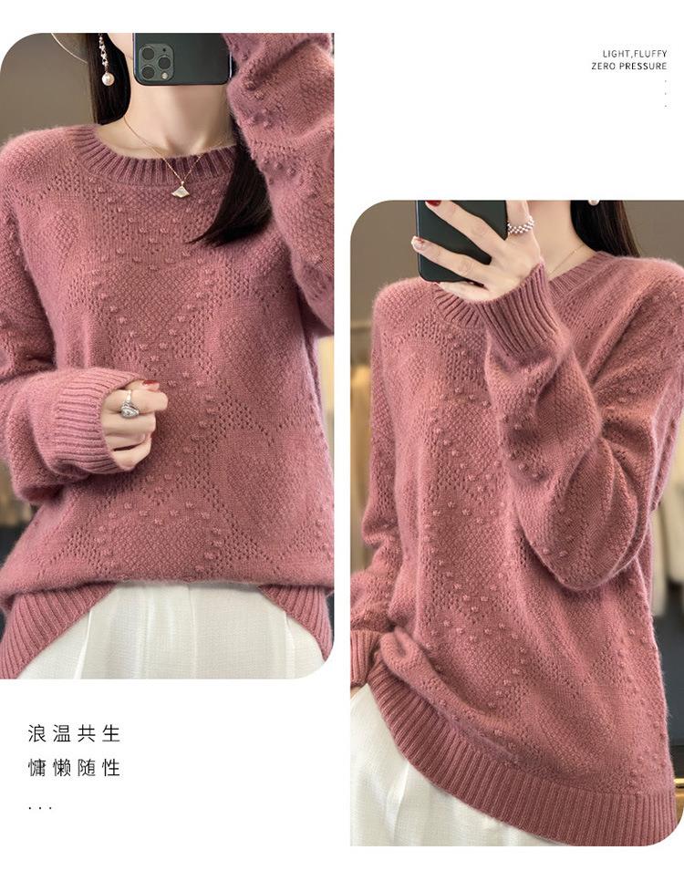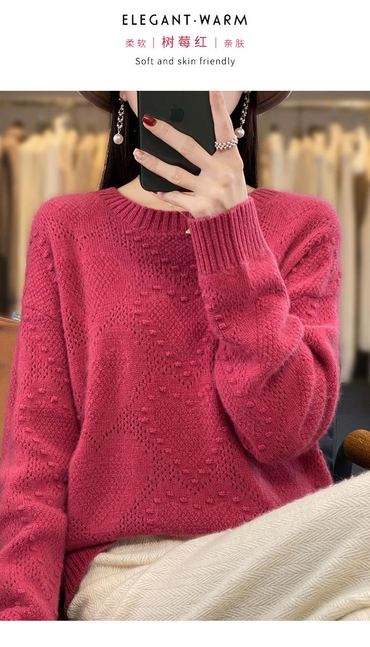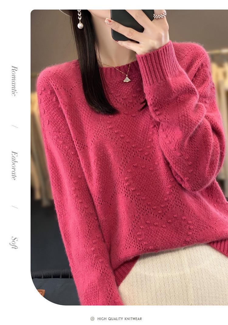 2023年秋冬新款韩版女士圆领长袖针织衫女士纯色套头针织打底衫