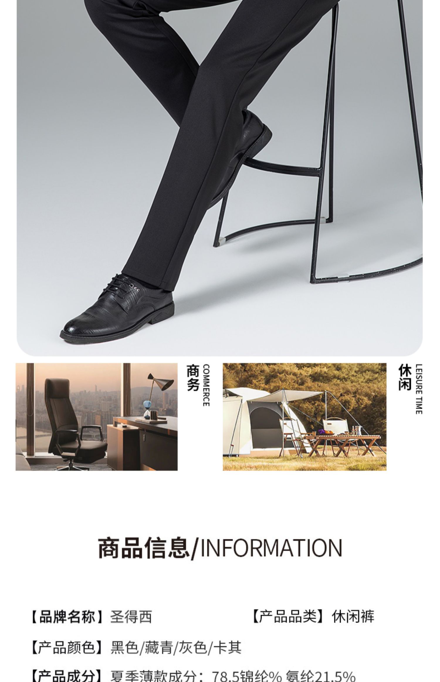 圣得西男士时尚商务直筒休闲裤秋季新款中青年百搭易打理长裤2312913019