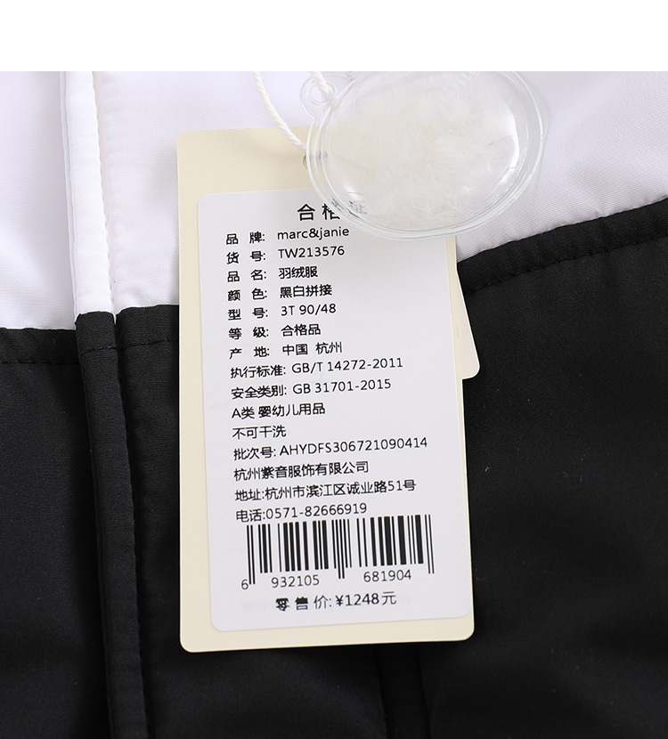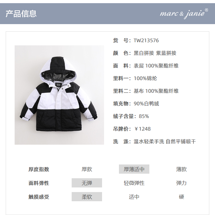 马克珍妮2021年新款冬装 男童户外防寒羽绒服 儿童羽绒外套213576