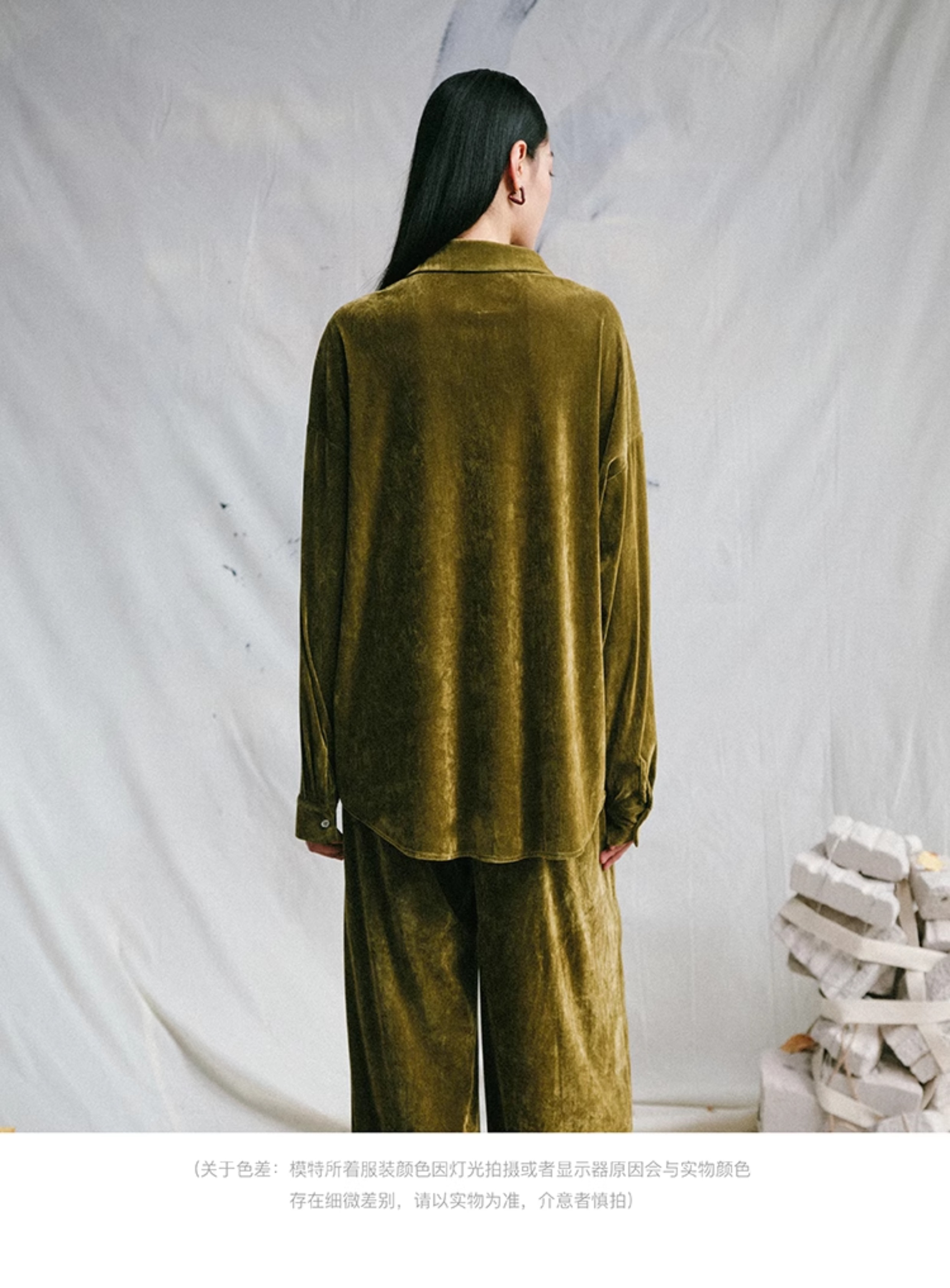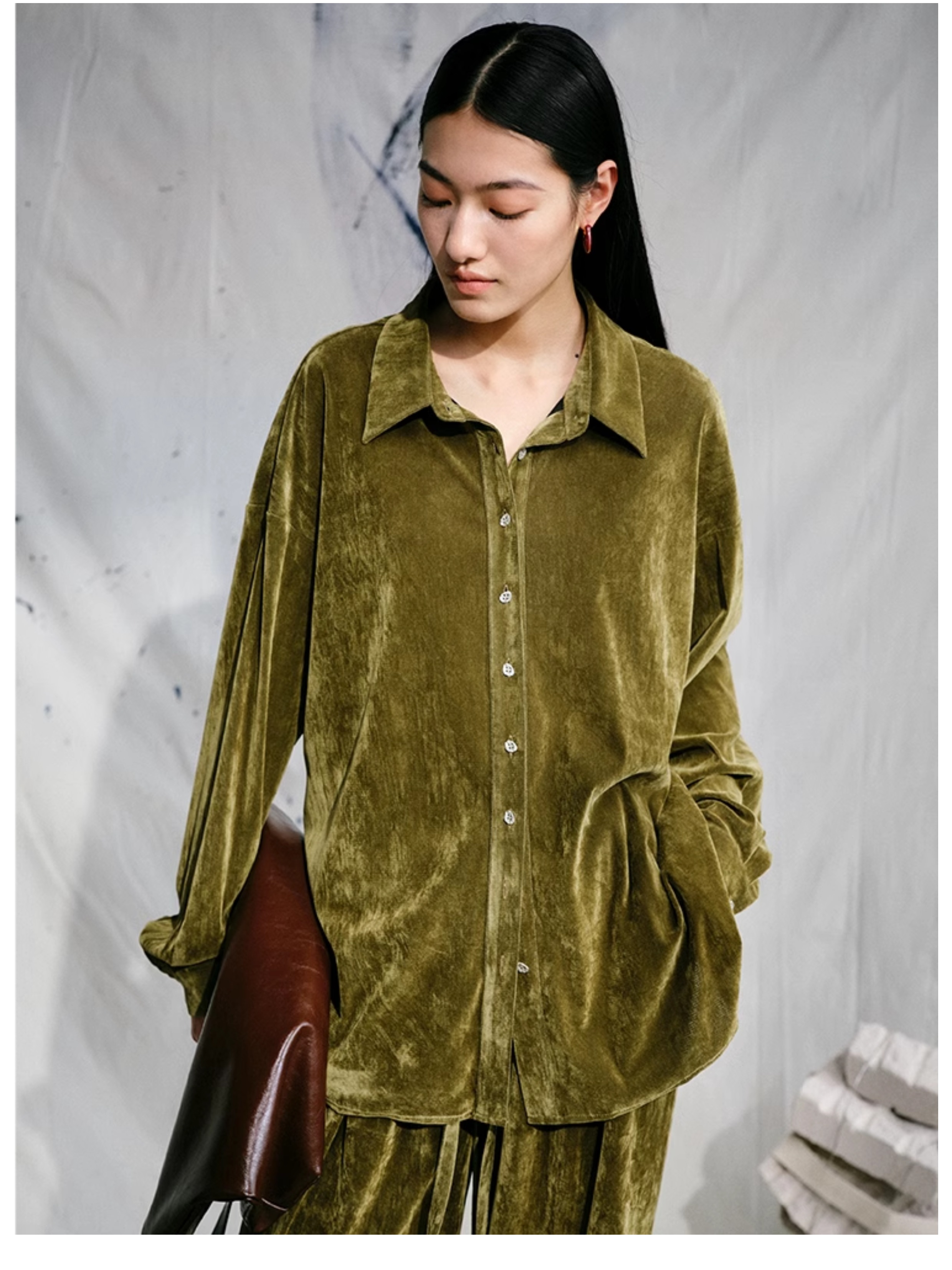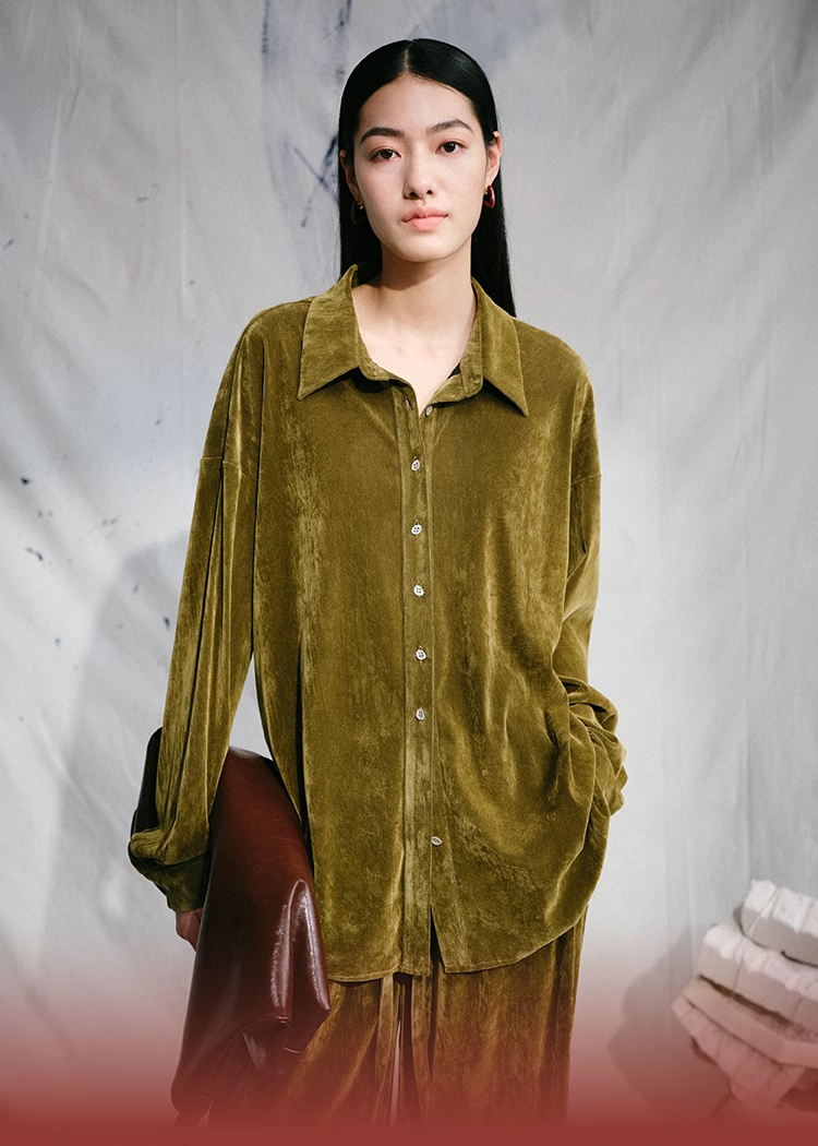 LIYIHAN 24夏季新品光泽丝绒宽松衬衫女士套装法式复古