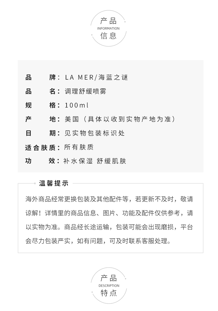 LAMER 海蓝之谜水光喷雾调理舒缓补水保湿喷雾 100ml 【CDF】