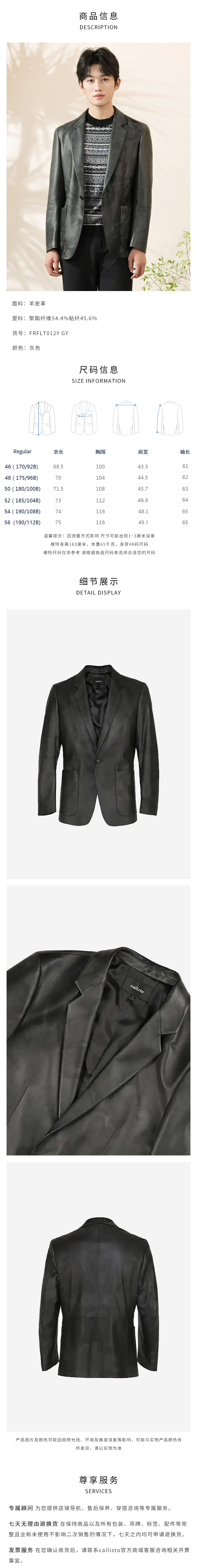 callisto灰色羊皮革皮西服 FRFLT012Y