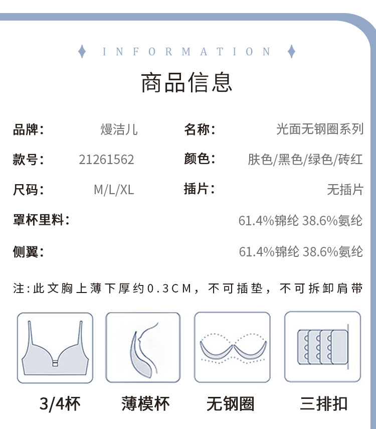 【A-C杯】熳洁儿 无痕内衣女夏季无钢圈文胸u型美背背心式吊带胸罩21261562