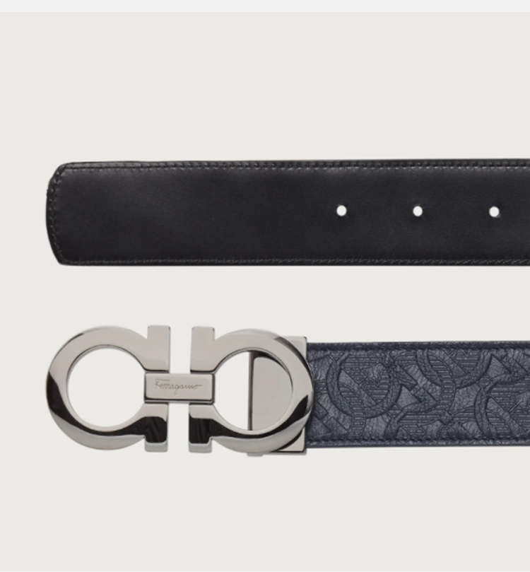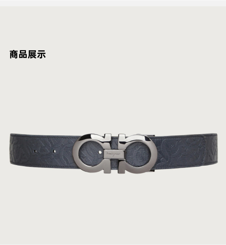 【三】FERRAGAMO 菲拉格慕 男士双面可调式Gancini皮革腰带 蓝色 67 5542 735830