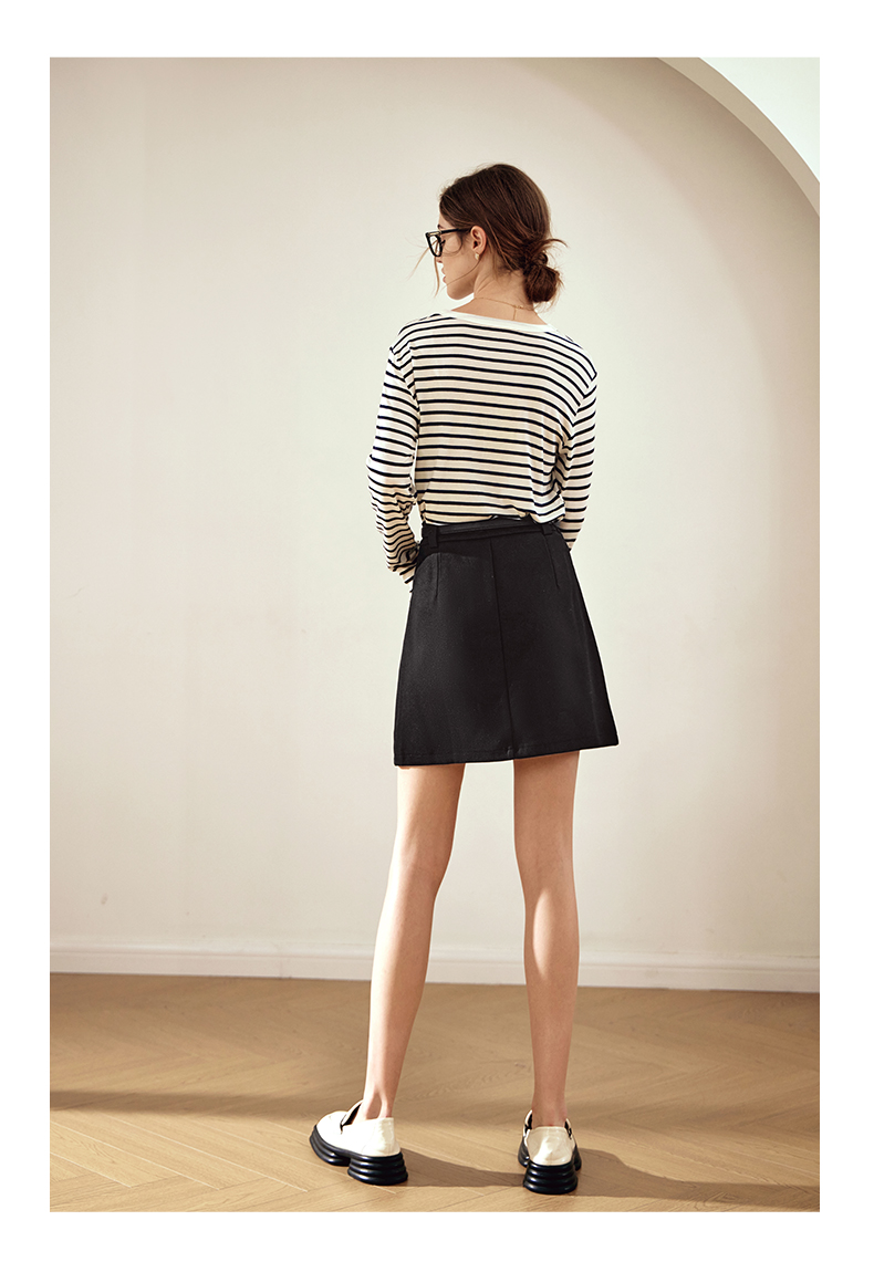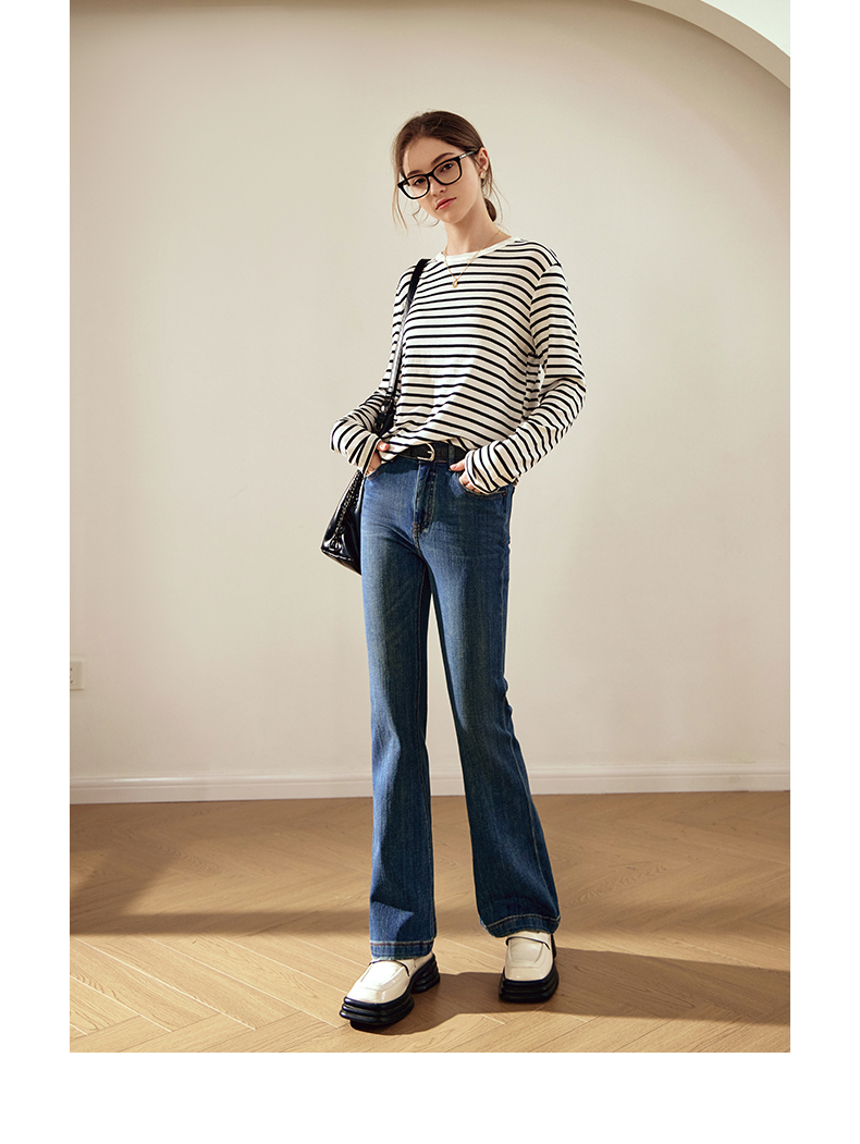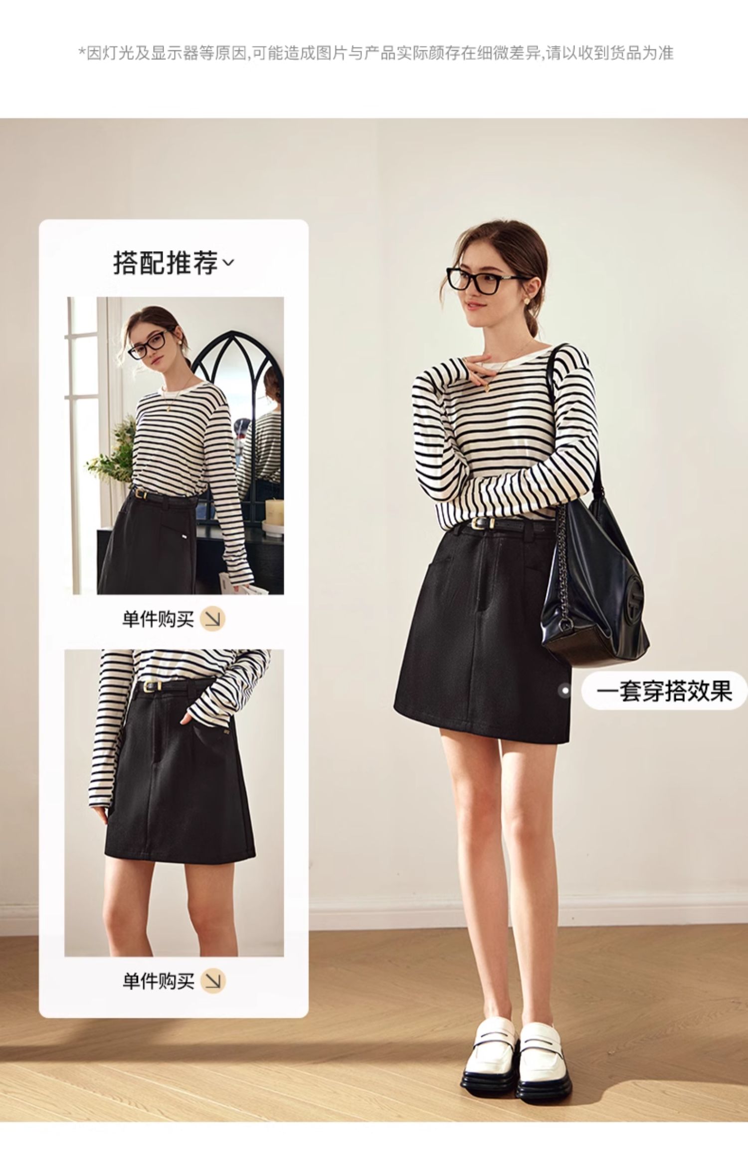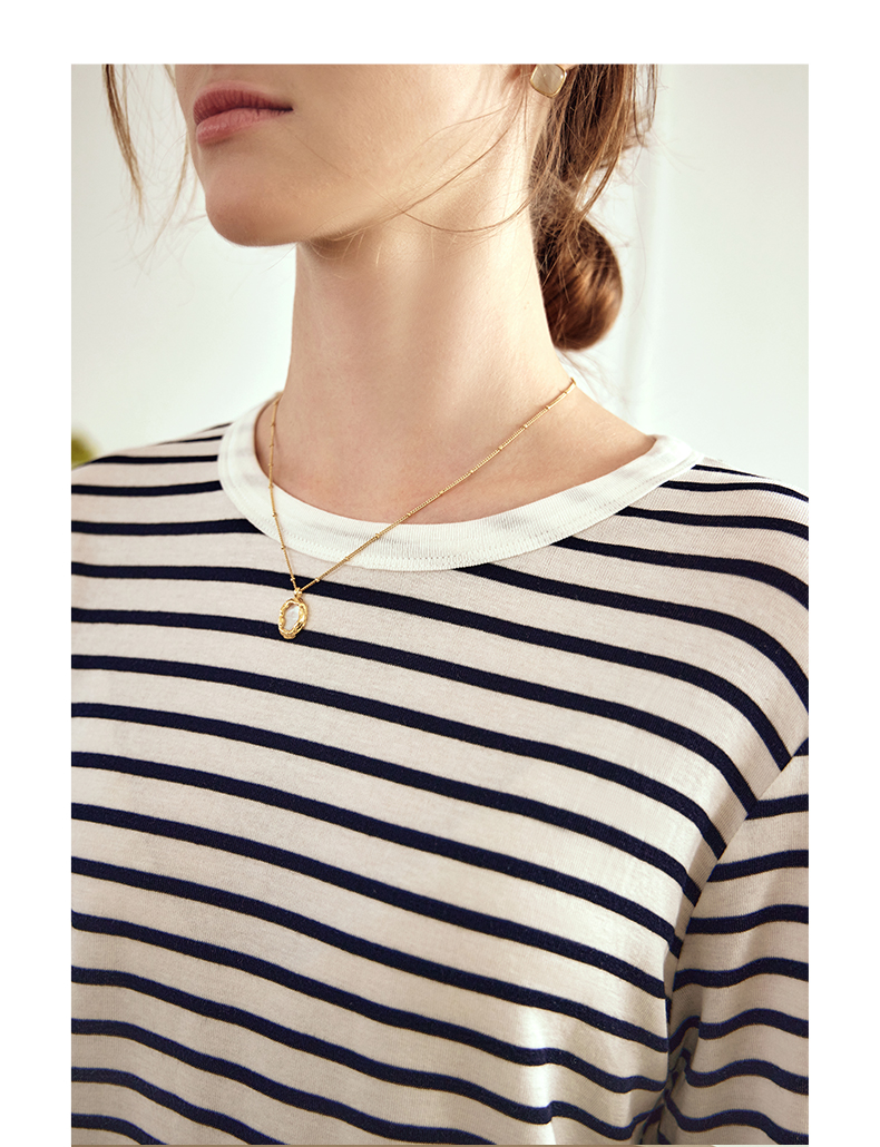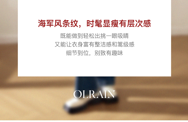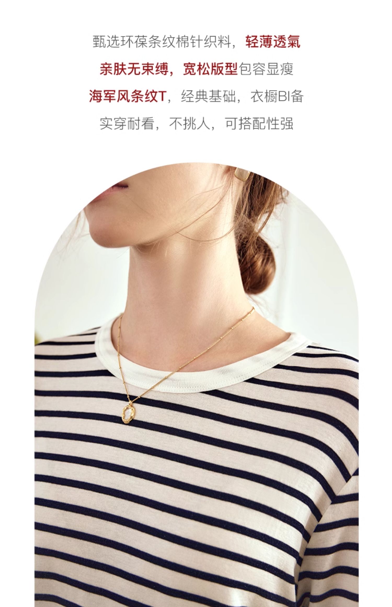 OLrain欧芮儿条纹T恤女秋冬2023年新款海军风宽松显瘦长袖打底衫