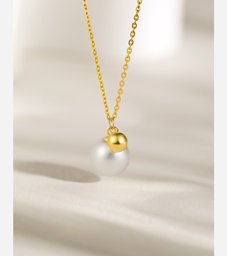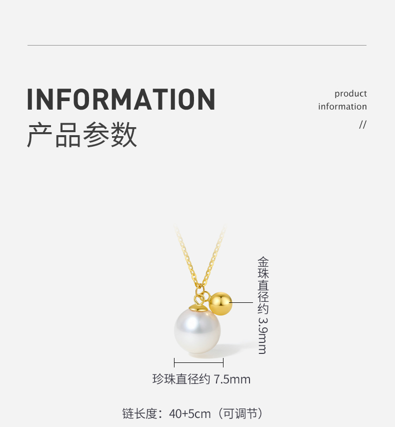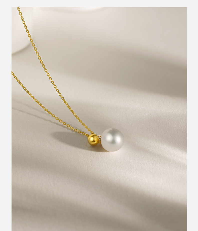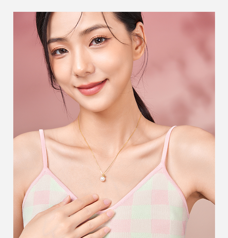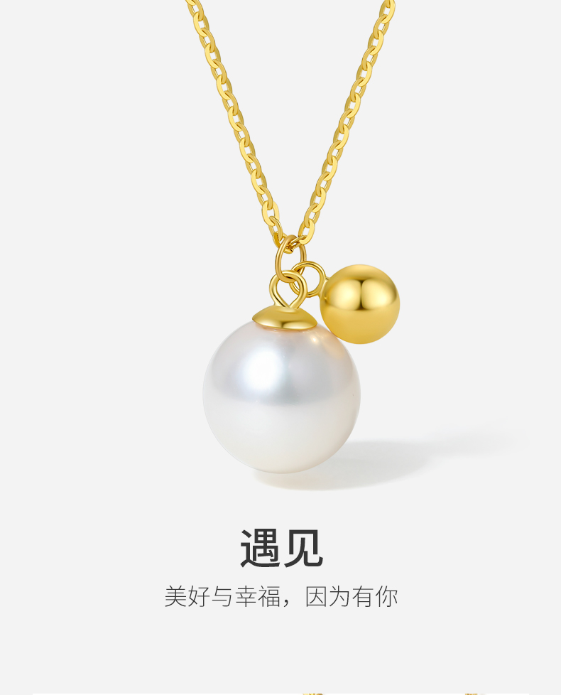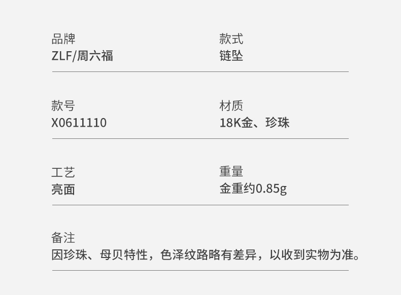 周六福18K淡水珍珠项链链坠简约圆珠气质优雅官方正品