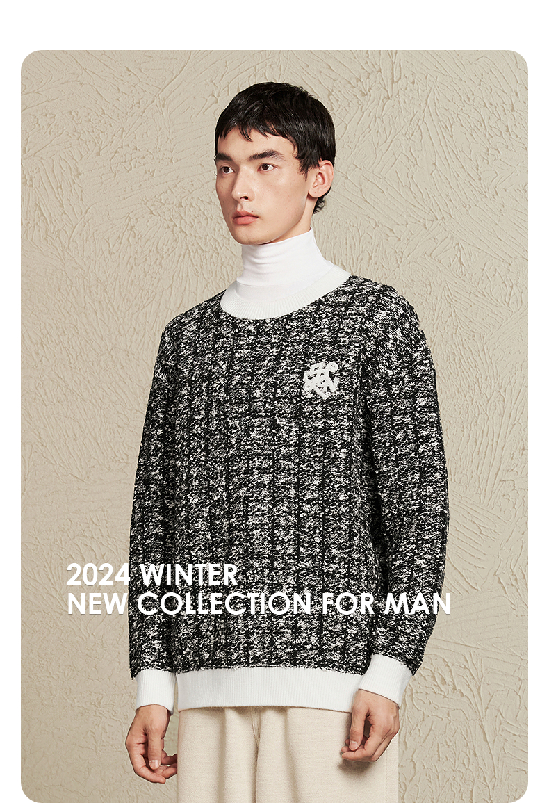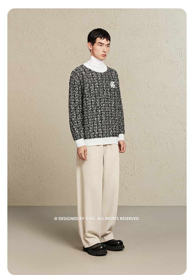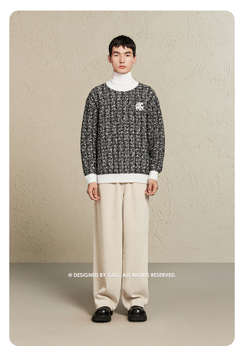 GXG男装 小香风针织衫领口撞色设计线衫通勤毛衣男 2024冬季热卖毛衫