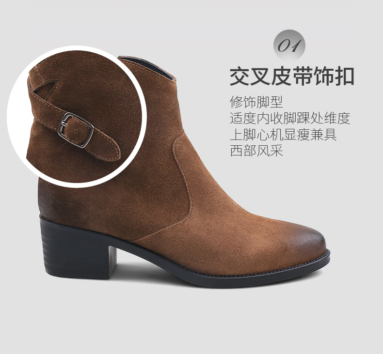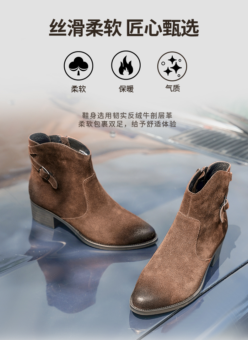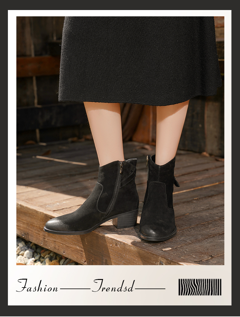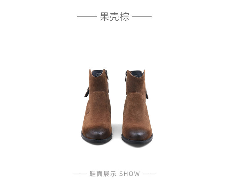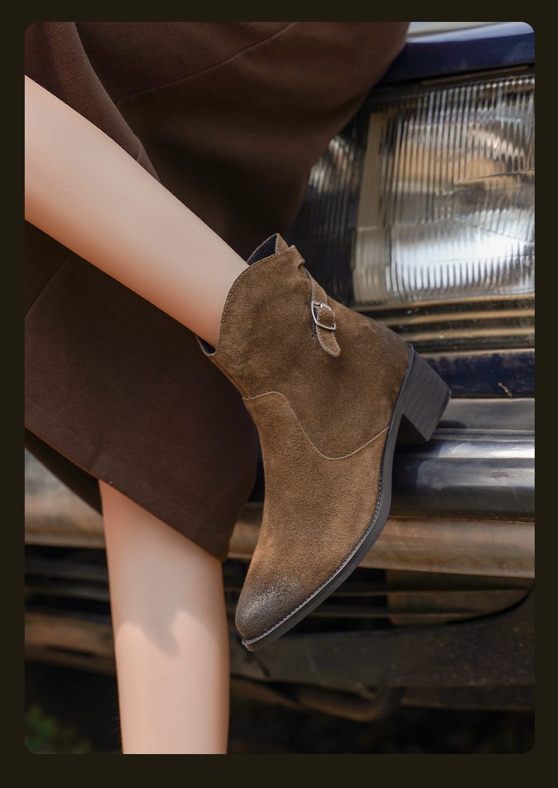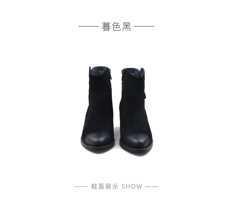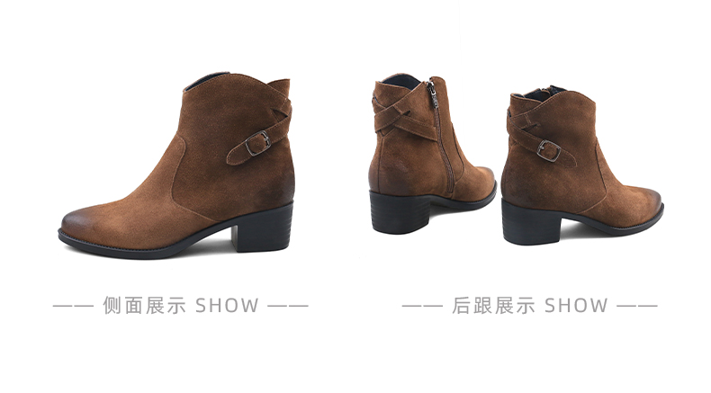 预售5天发|Safiya/索菲娅2024秋冬真皮侧拉链气质尖头粗跟英伦及踝短筒时装靴 SF44116128