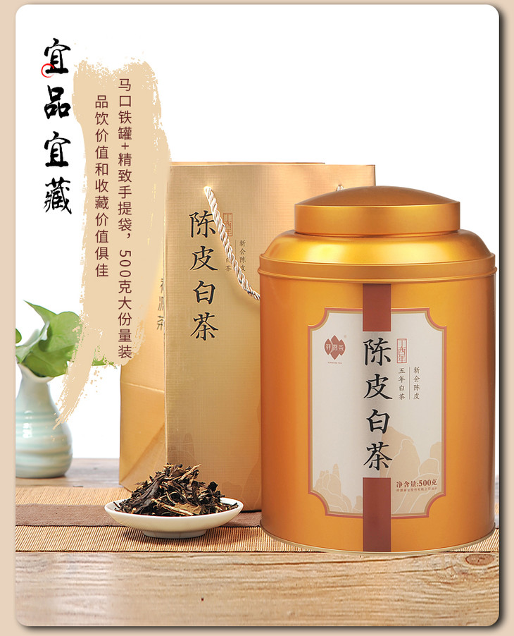 陈皮白的配比经专家反复研究而成,与陈皮、白茶随便混合冲泡有着天壤之别;不断的调试,把控好每一批次的均衡性,将三年新会陈皮与五年福鼎陈白茶的配比调和做到极致,方造就1+1不只是等于2的味觉和嗅觉效果。