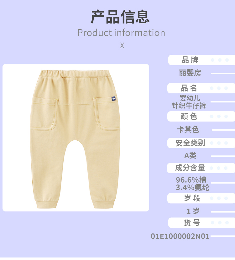 丽婴房-童衣类(春)E1长裤\吊带裤浅卡其\卡其