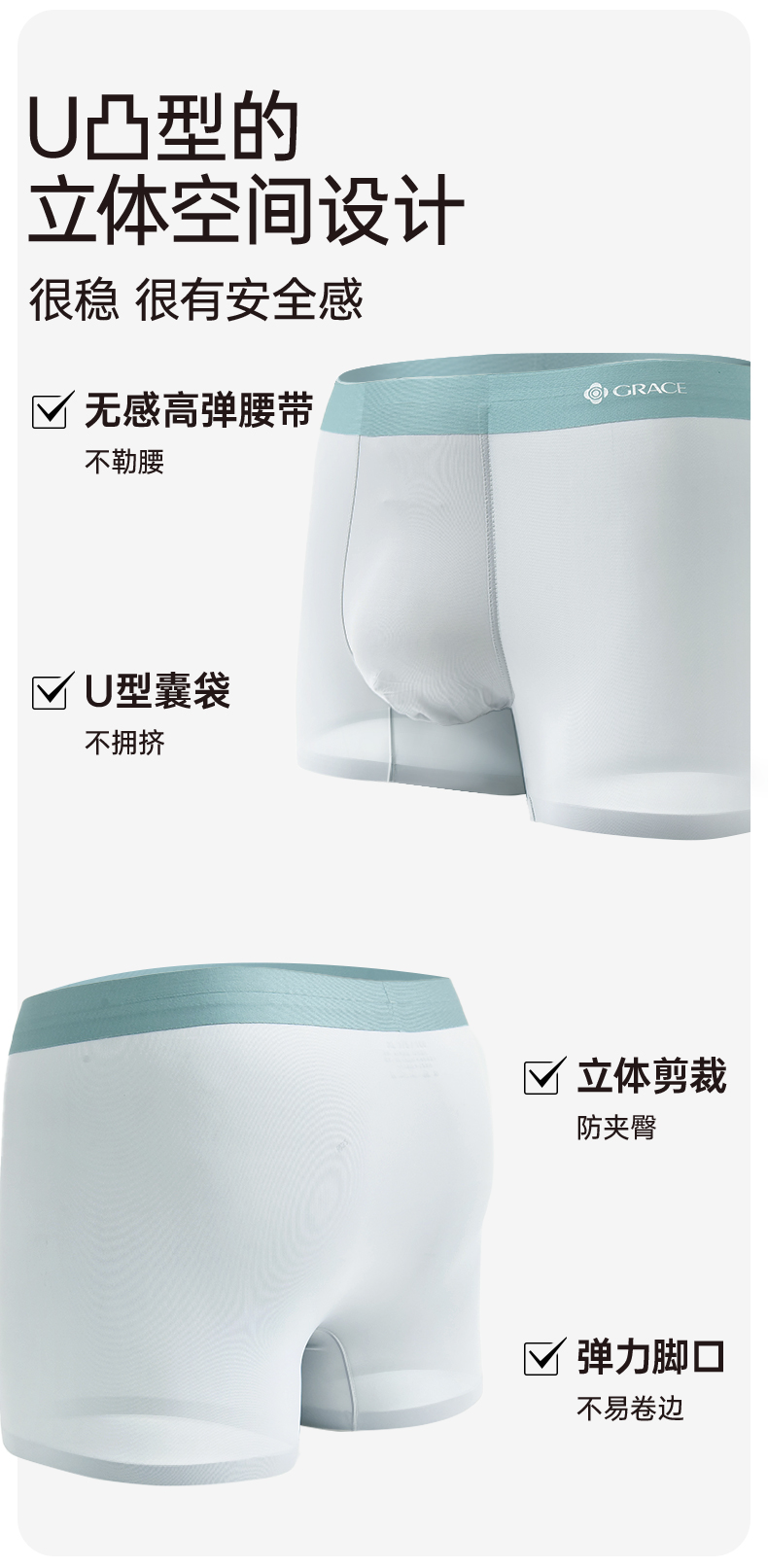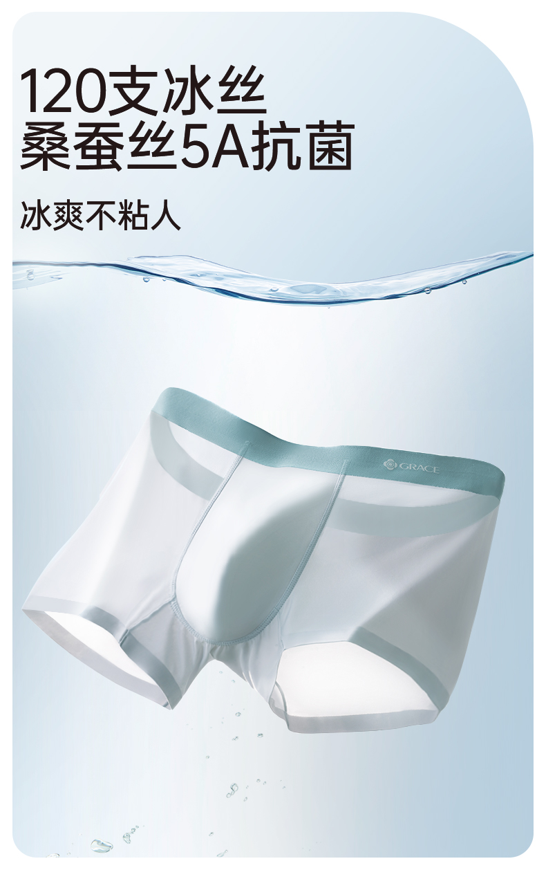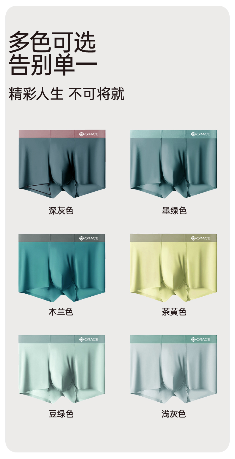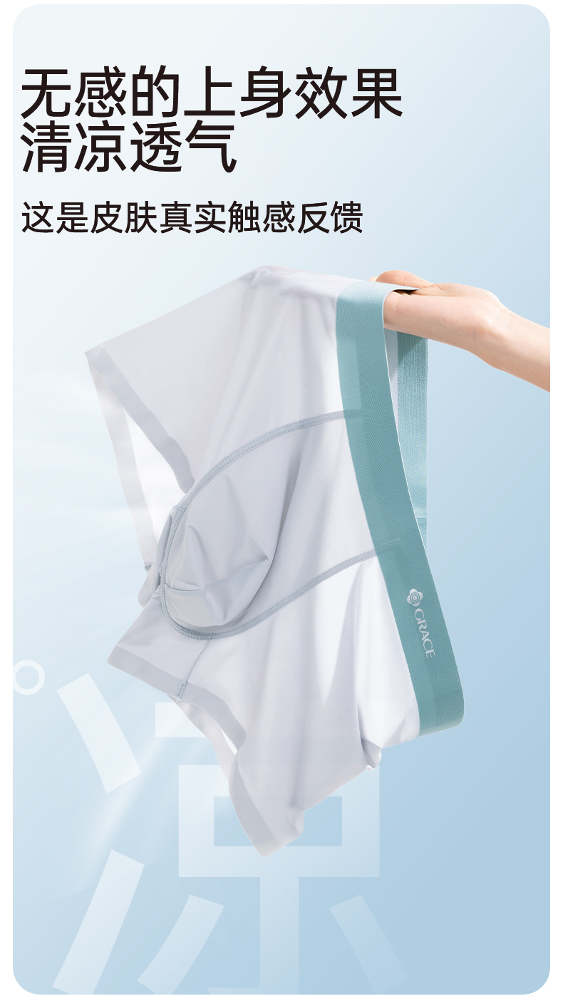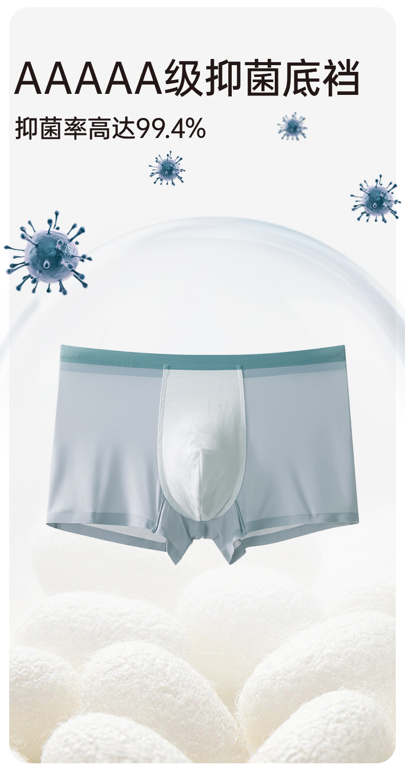 洁丽雅男士内裤冰丝四角裤男生短裤款平角男式大码抑菌