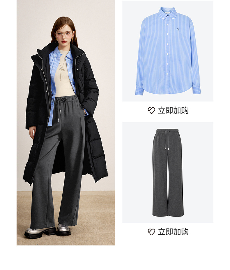 【商场同款】【商场同款】诗凡黎松紧腰系带直筒裤2024冬新款裤子3FA652321R-3