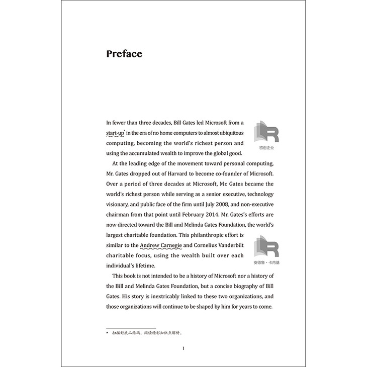 《微软传奇的缔造者:比尔·盖茨传》一书中既有原汁原味的英文,又有生动流畅的译文,书中还穿插了许多背景知识拓展,扫描封底二维码即可查看文内精彩知识点解析。比尔·盖茨是一个电脑天才,在软件行业不断创造奇迹,带领微软缔造了世界级的商业传奇;他创造了一个财富神话,年仅39岁便成为世界首富,并连续13年雄踞福布斯全球财富榜榜首;在走下微软的神坛后,他投身慈善,在医疗卫生和教育领域做出了卓越的贡献。