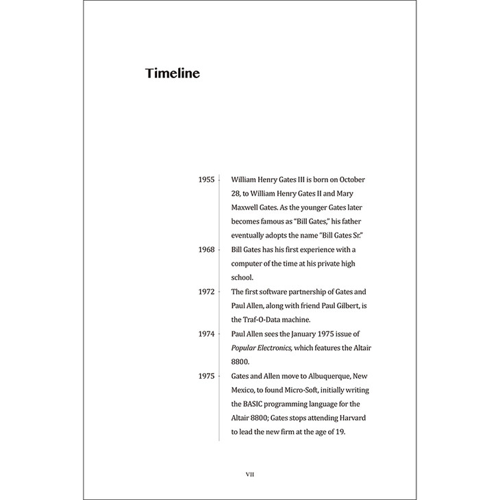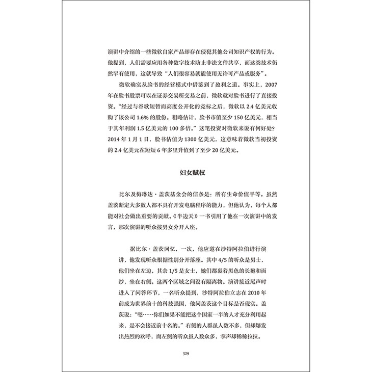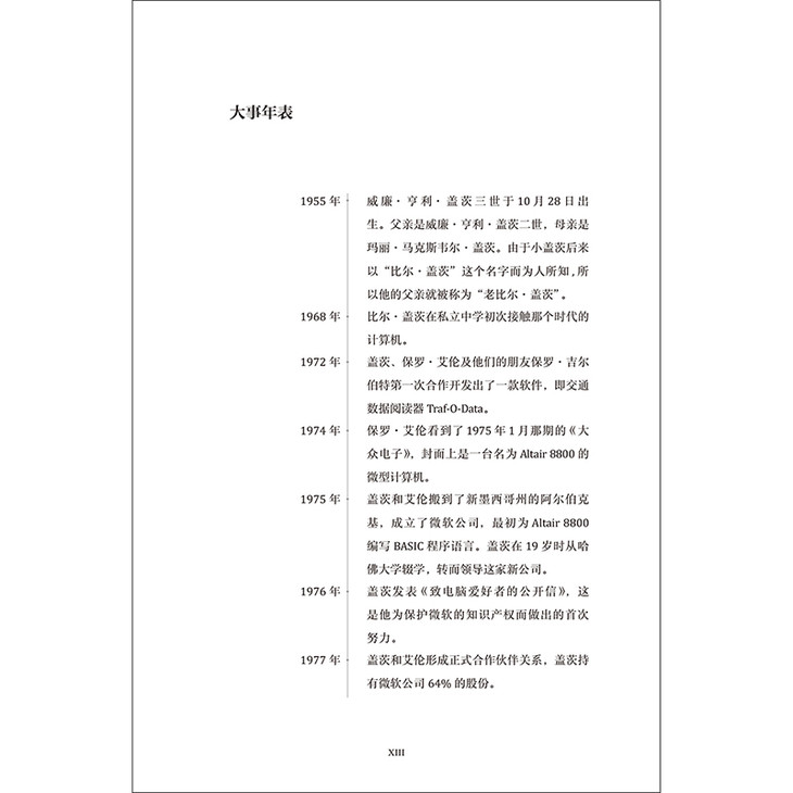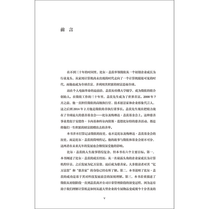 《微软传奇的缔造者:比尔·盖茨传》一书是比尔·盖茨的传记。本书生动地描绘了比尔·盖茨的早年生活,他充满好奇而敢于冒险的学生生涯,以及他作为一个跻身于世界富豪之列的新锐创业家和亿万富翁慈善家的丰富经历。本书全面介绍了微软公司从始创一直到盖茨离开积极领导层的发展过程,记录了他对其事业中固有的经济、道德、财政、法律、管理和领导知识的运用。