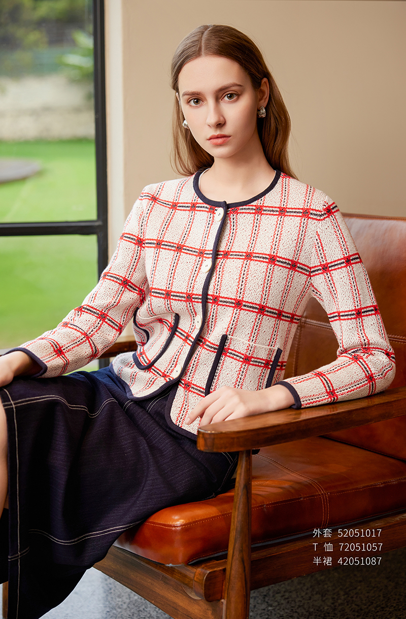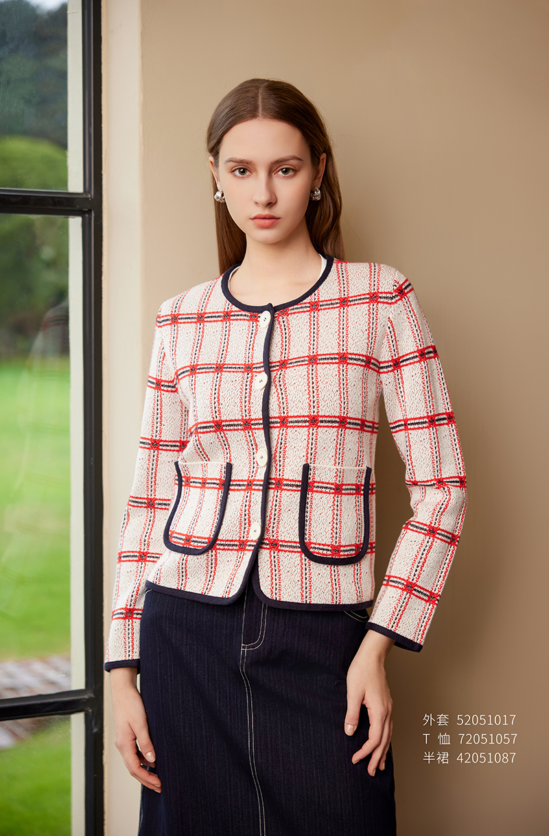 【小香风针织条纹针织外套】25年春季新品女士条纹撞色圆领针织外套