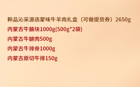 【C】粹品沁采源选蒙味牛羊肉礼盒2650g(生鲜冻品收到货后请及时放入冰箱储存,如在运输过程中有解冻属正常现象,并不影响品质,请放心食用!)