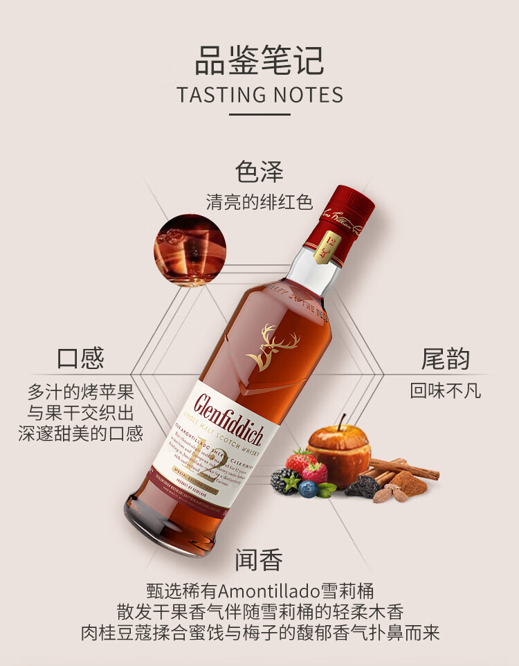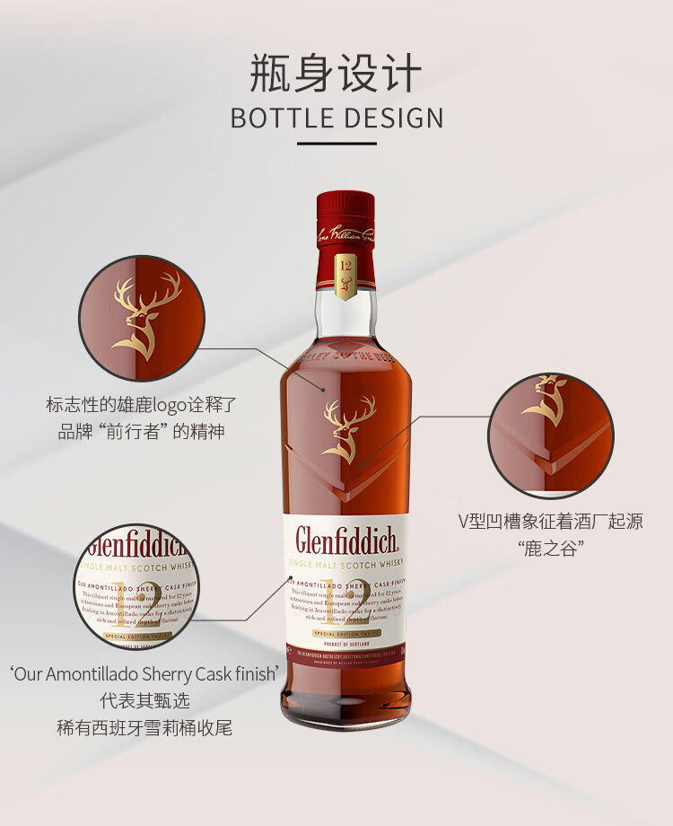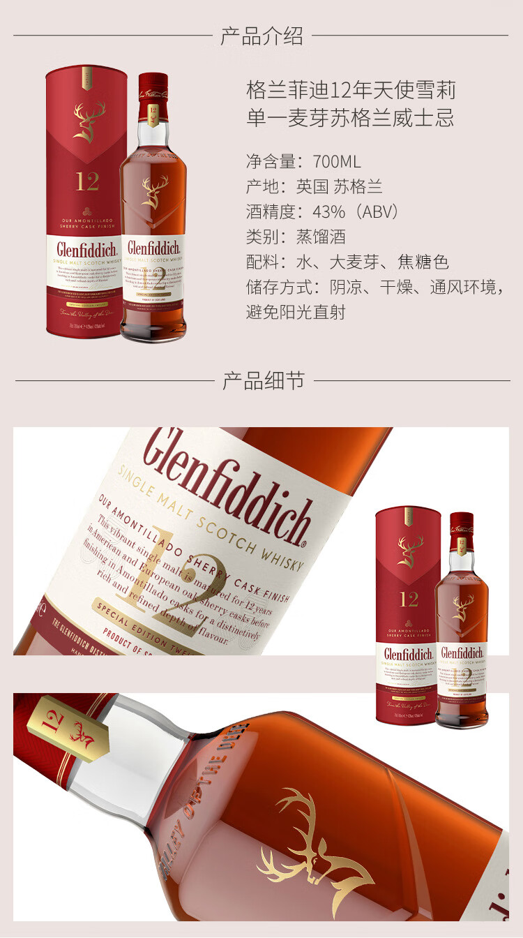 【有税版】格兰菲迪12年天使雪莉桶 苏格兰单一麦芽威士忌 700ml 核心系列