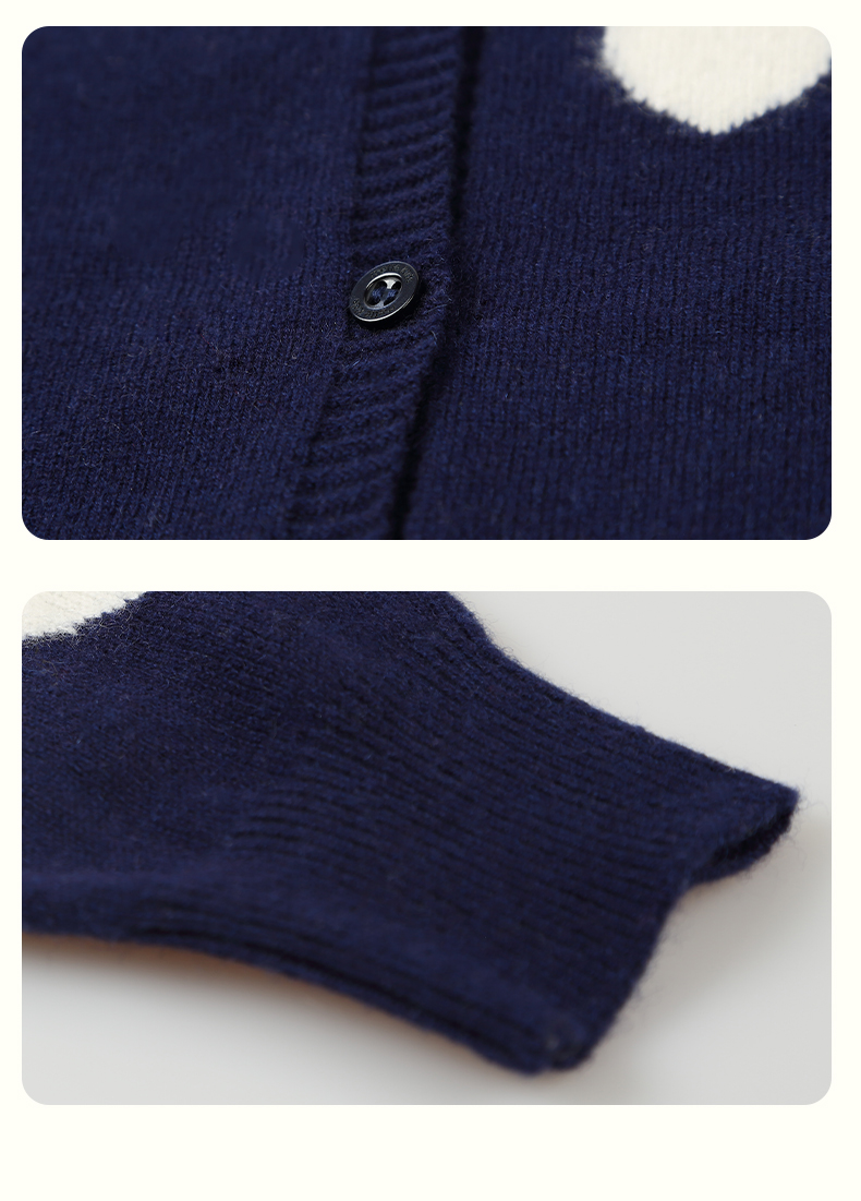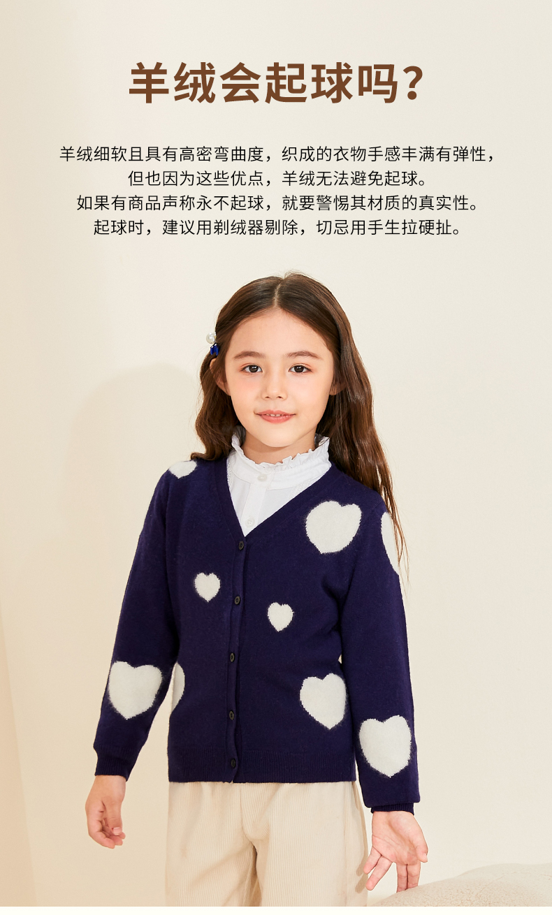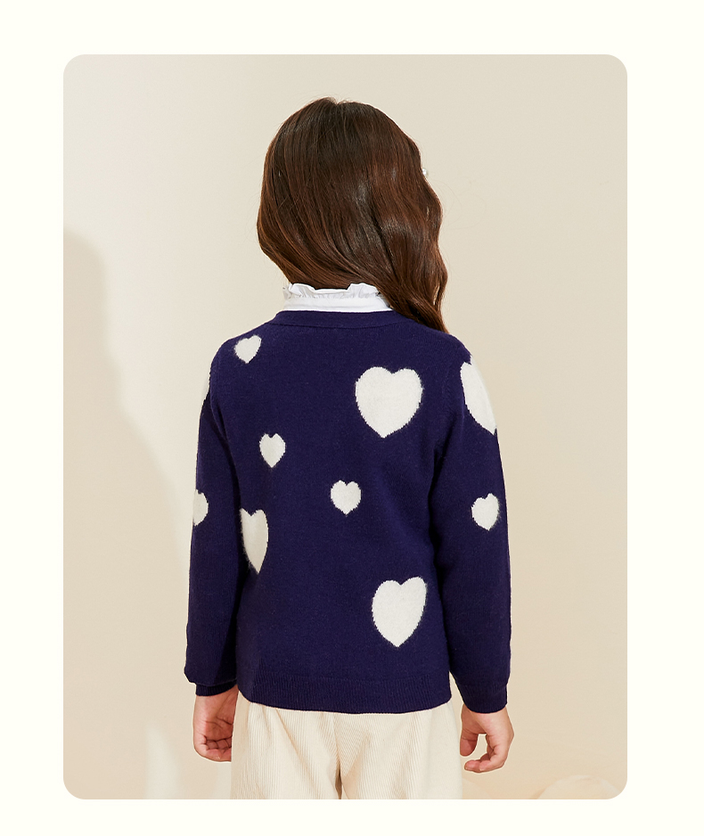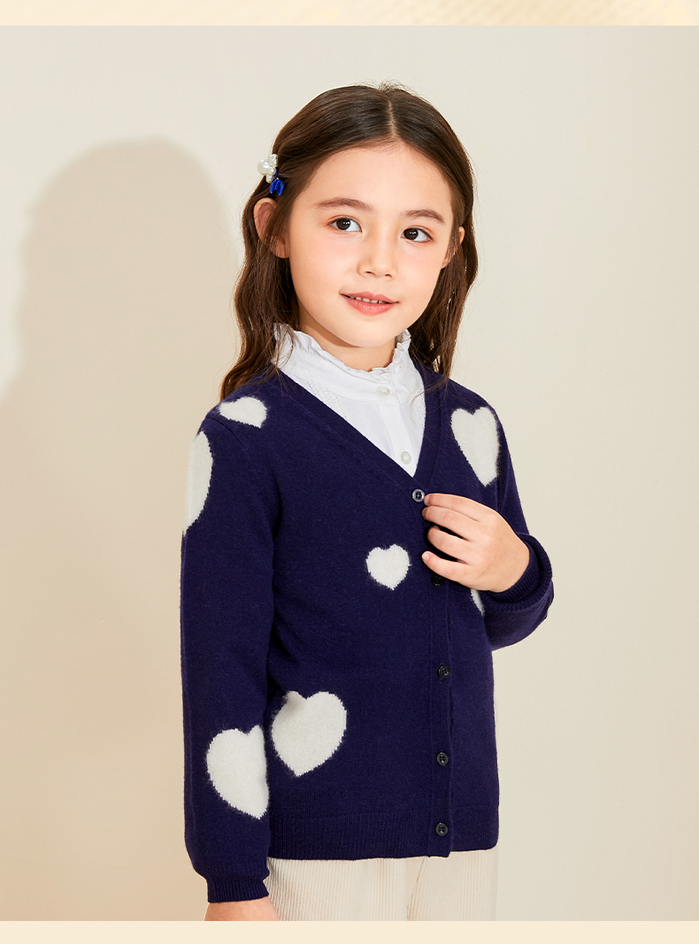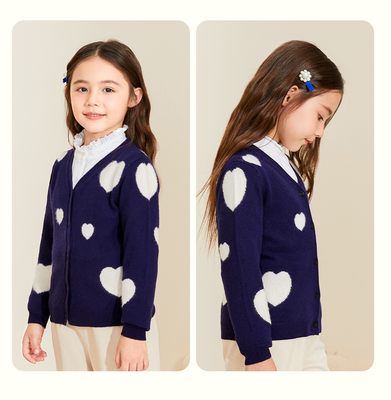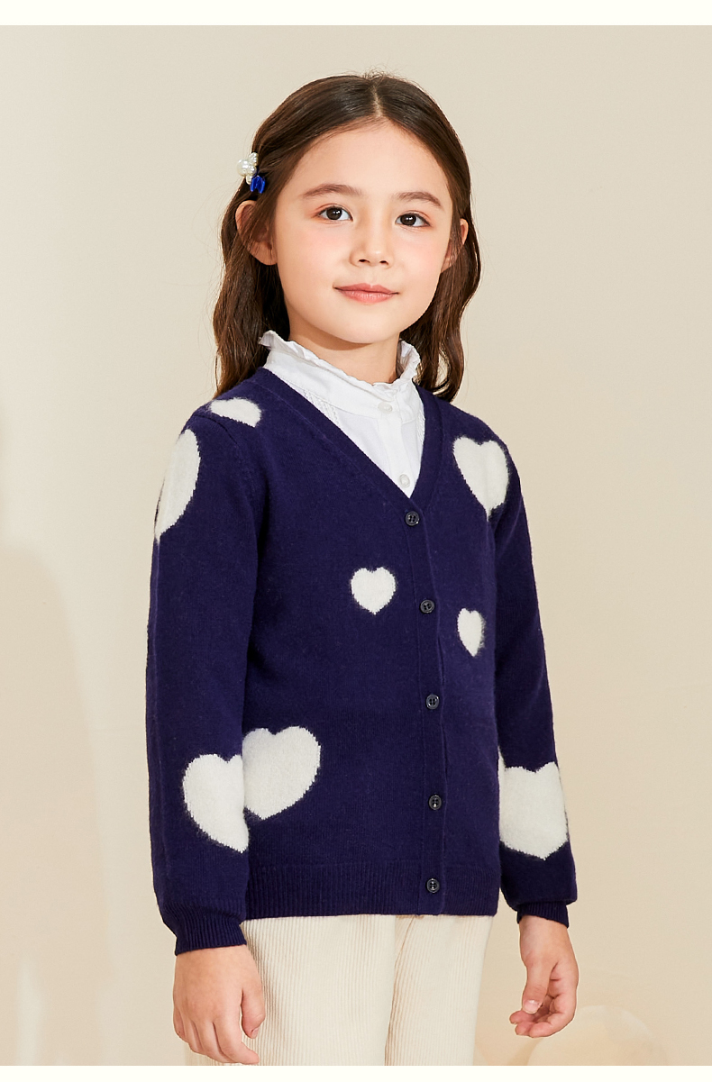 mettekids女童羊绒衫春秋新款v领儿童毛衣长袖爱心童装针织开衫